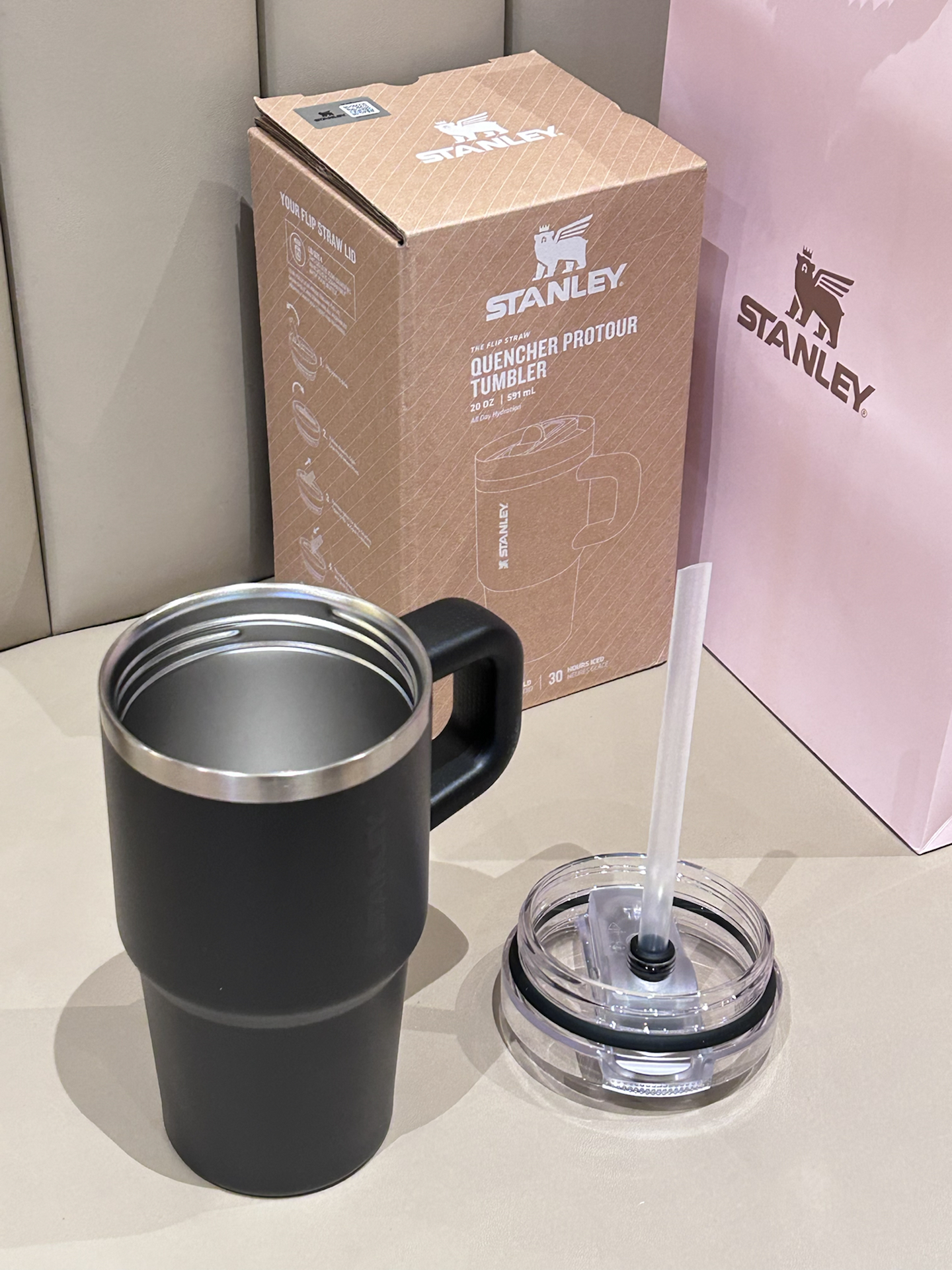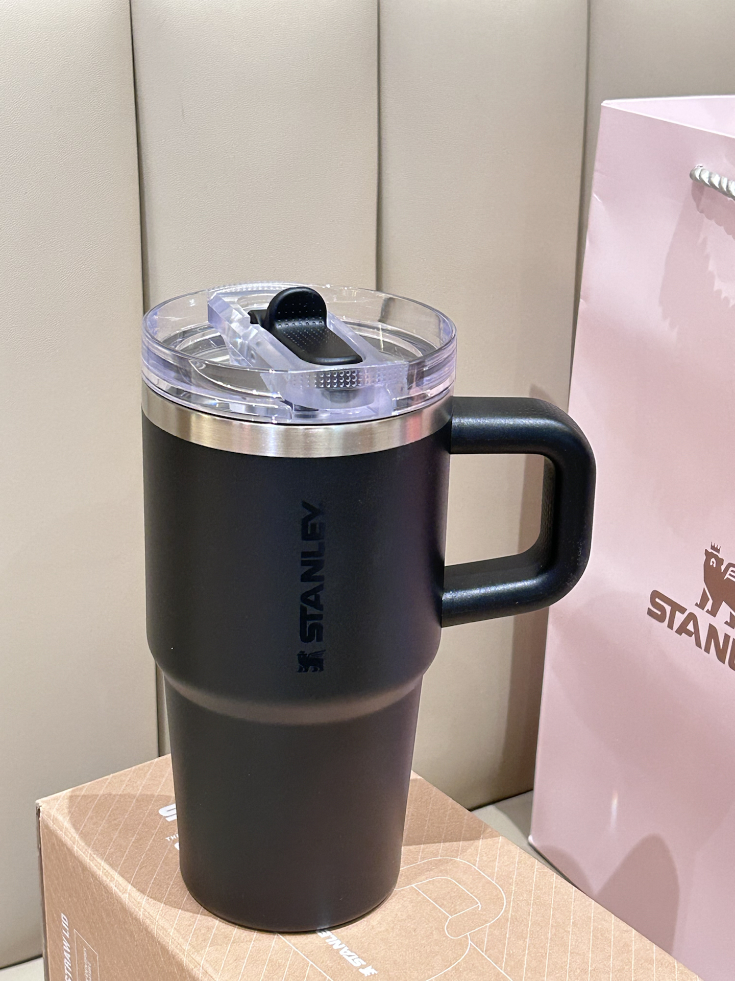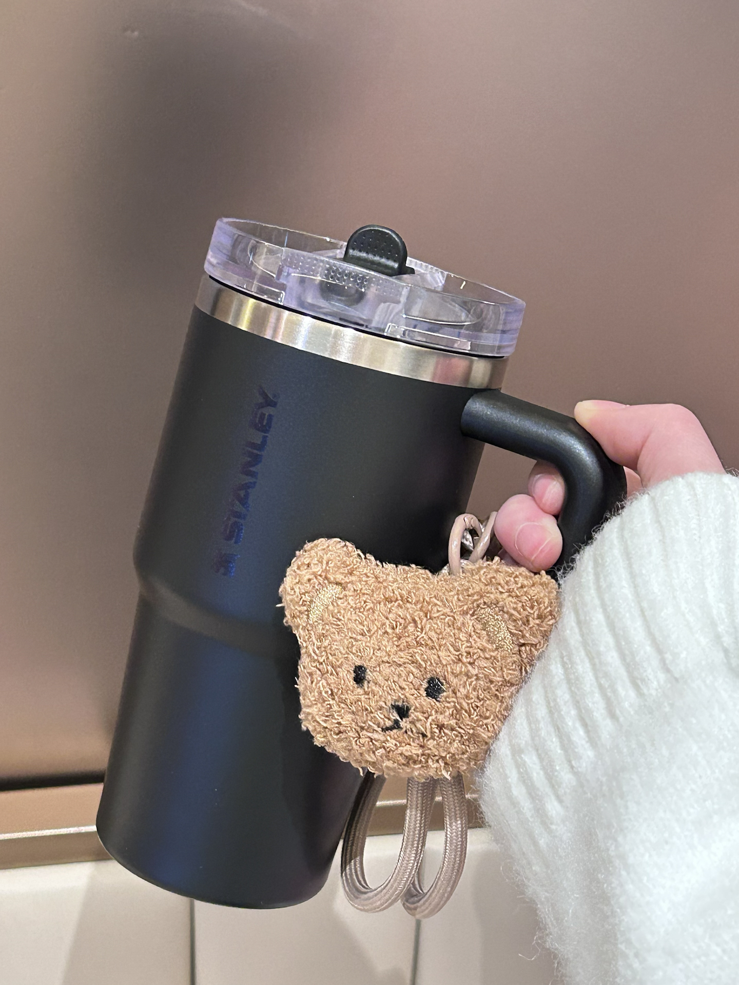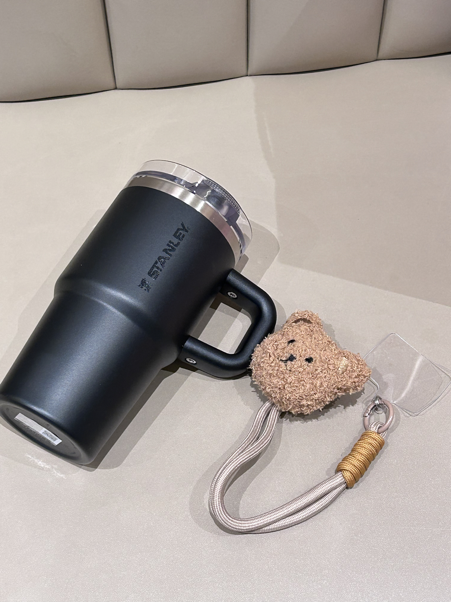 是我挖到的这只STANLEY保温杯 我选的黑色 磨砂黑的外观简约又耐看 带手柄的设计 日常握着还挺顺手的 而且还是吸管口设计很方便捏 搭配的小熊挂饰也很可爱 放在我的桌子用刚好 已经成了我的桌面标配 搭配了礼盒礼袋 拿来送好朋友也蛮不错滴 #stanley保温杯 #我的新年新水杯 #按头安利这个水杯 #打工人的通勤劳水杯 #送ta新年第一份礼物
