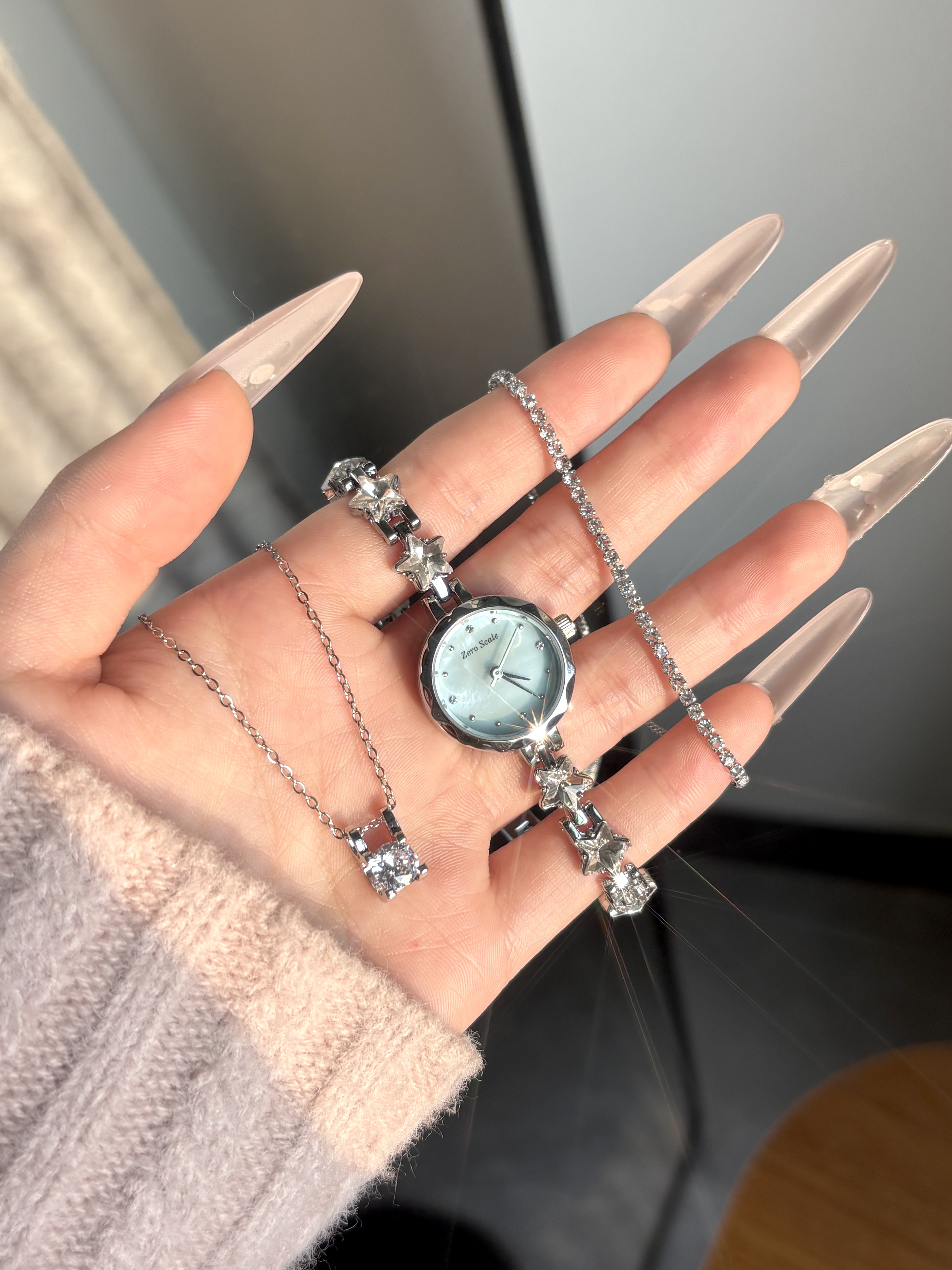 手表叠戴的魅力真的好惊艳 手表➕手链一起戴好吸睛! 碎冰蓝的手表尊滴好清透啊 表盘是那种淡淡的奶蓝色 表链是星星的设计✨ blingbling的 又不会太浮夸 上手清冷又灵动 手链项链都蛮有质感的 还是礼盒包装的仪式感满满 戴出门拍照也很出片啦~🥰 #仪式感满分的情人节礼物 #春节手表推荐 #生日礼物女生礼盒装 #明星配饰百搭法则 #送ta新年第一份礼物