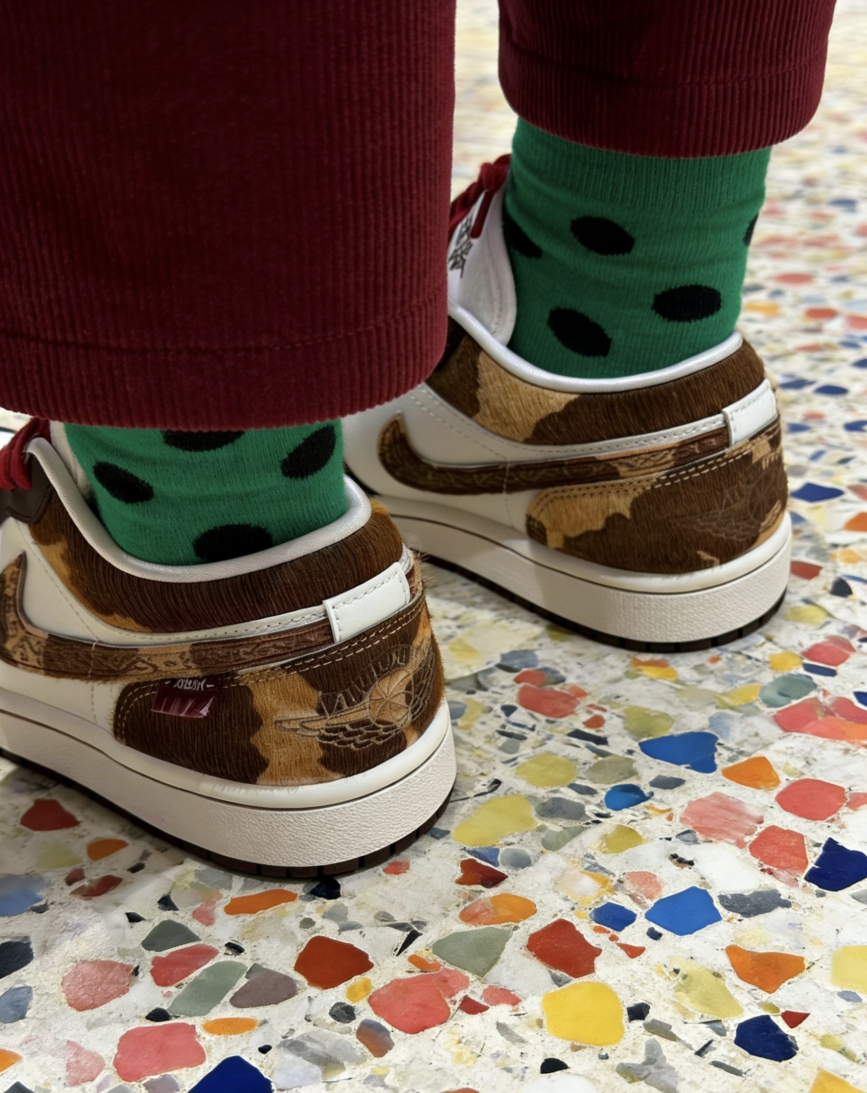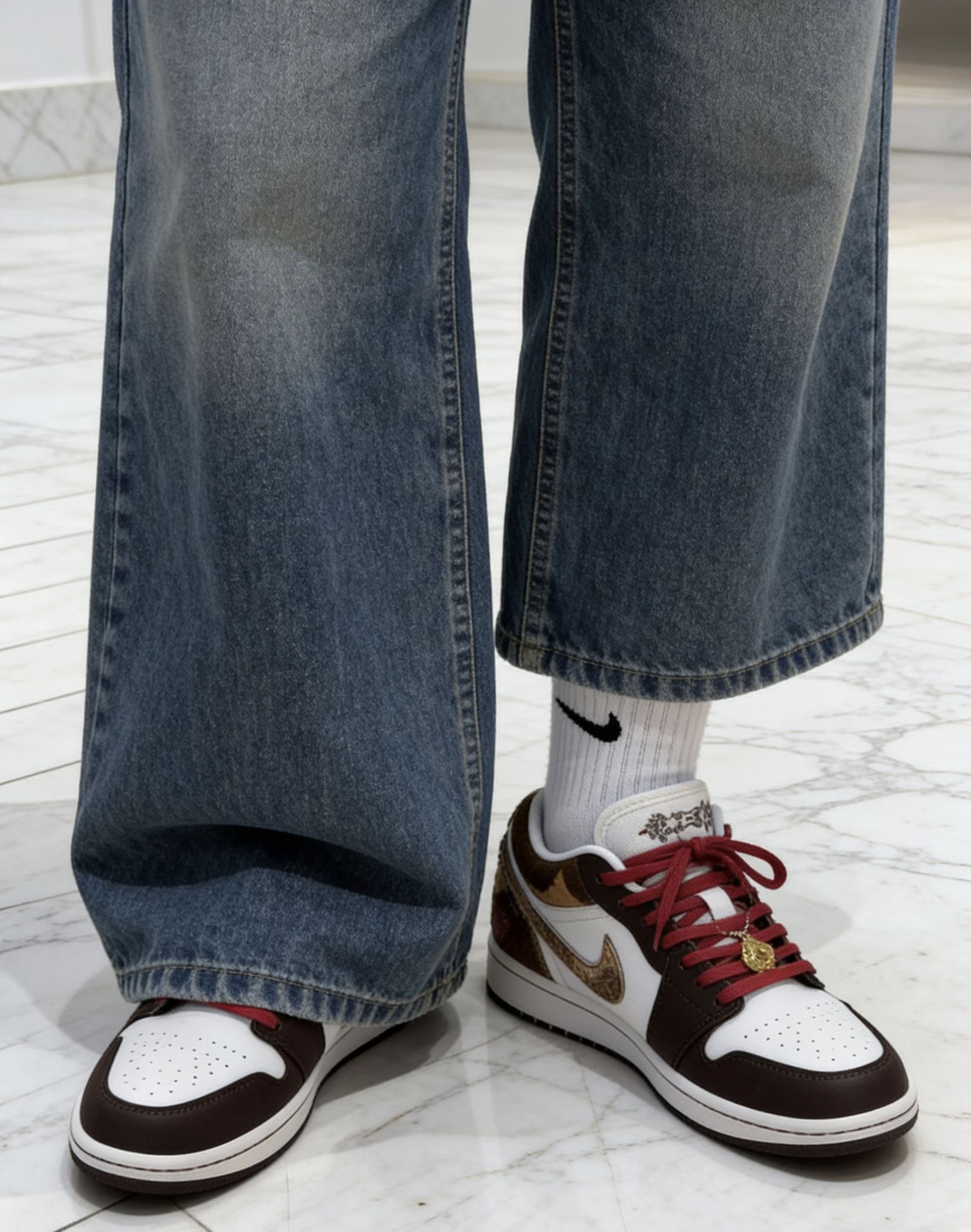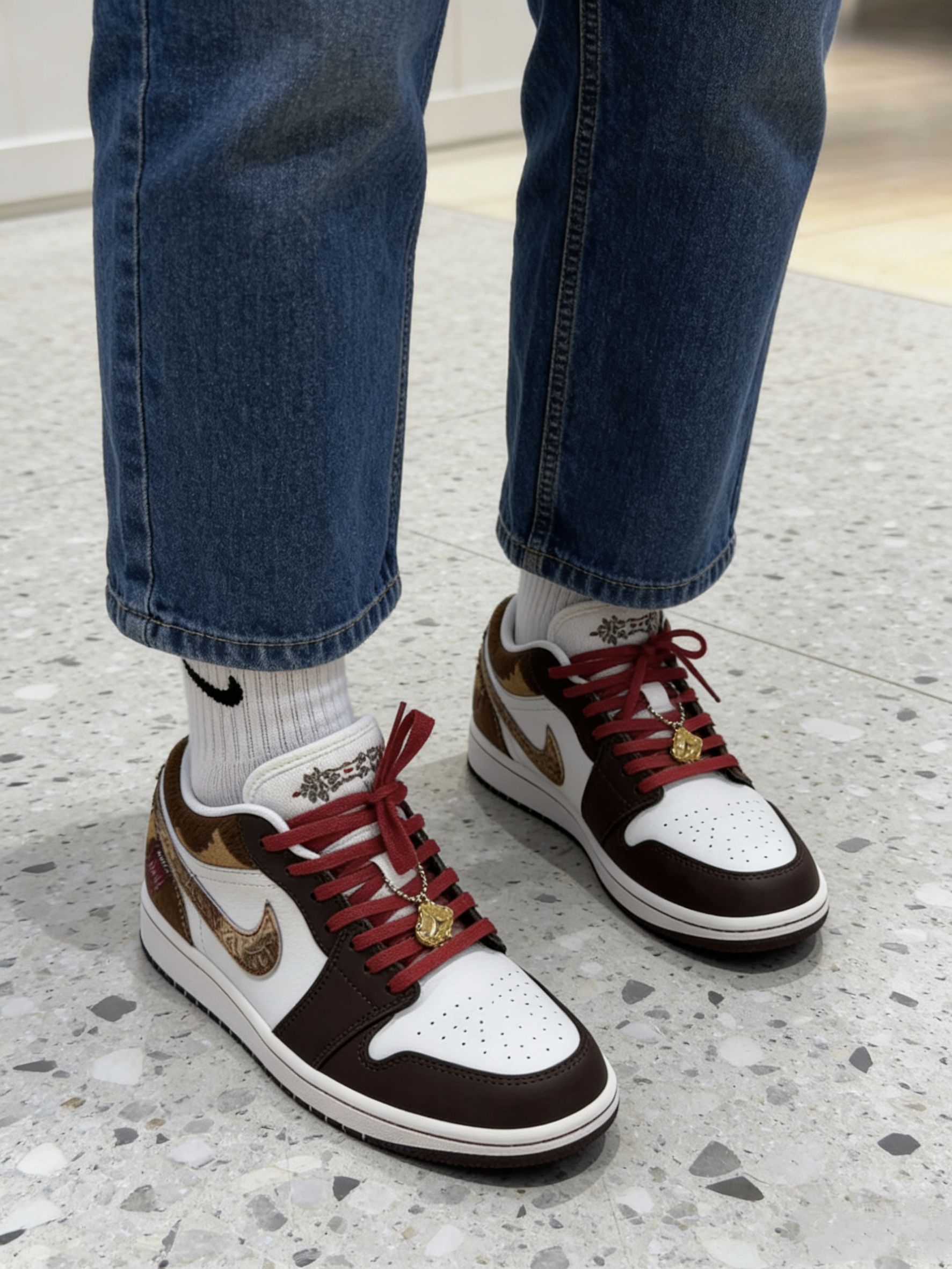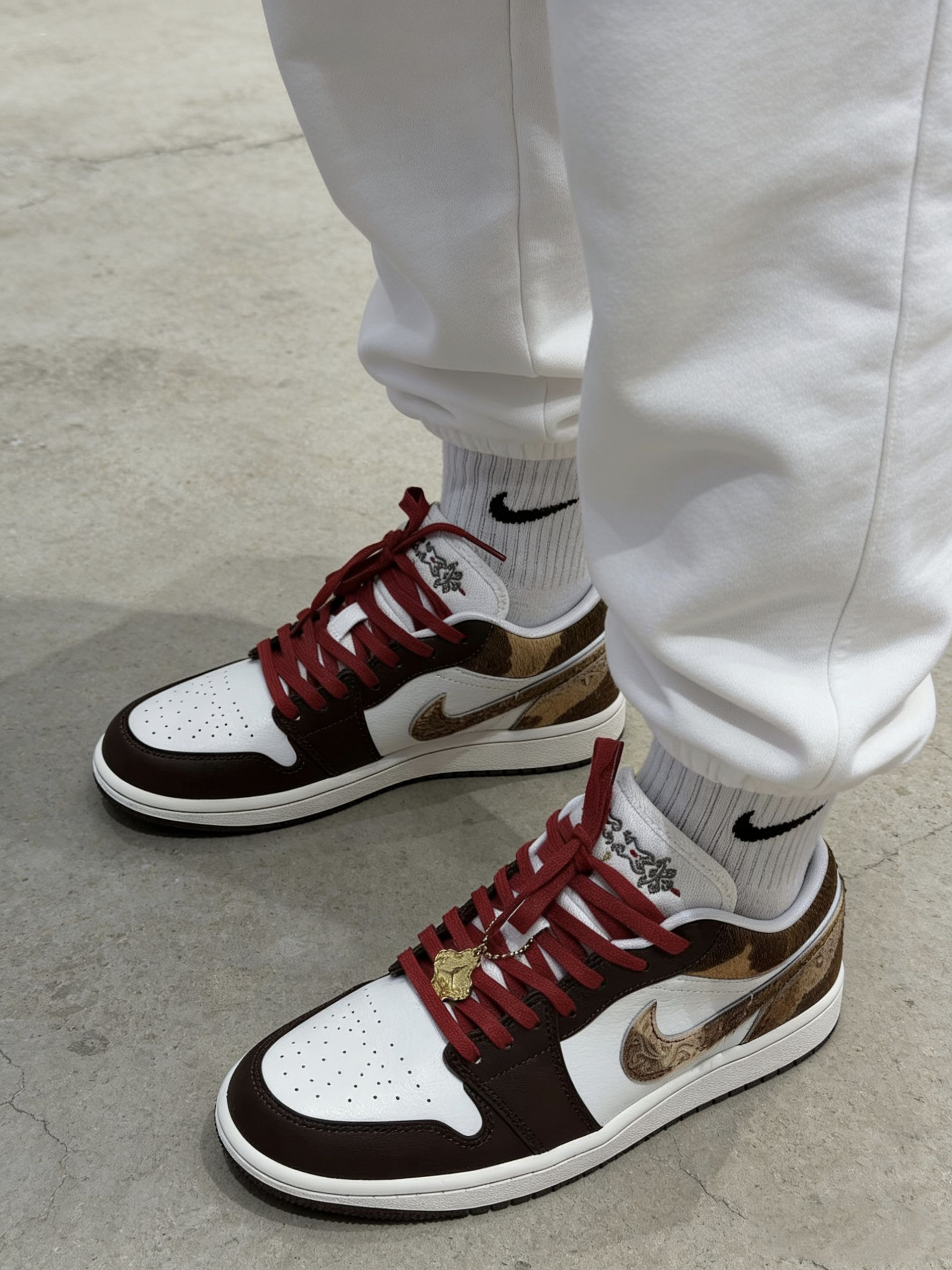 🎇 新年氛围感拉满!这双AJ1直接封神 是谁还没入手这双自带年味的宝藏鞋款?我先冲为敬!✨ - 🍫 配色细节:深棕+奶白的基底,搭配红棕渐变的马毛Swoosh,复古又高级,金色吊坠和刺绣细节直接把富贵年味拉满。 - 🧧 穿搭适配:红棕配色完美适配新年战袍,搭牛仔裤是美式复古风,配卫裤就是街头潮人,露袜穿还能突出红棕鞋带的小心机。 - 🎁 心动理由:马年穿马毛AJ1,自带「马上有钱」的好彩头...