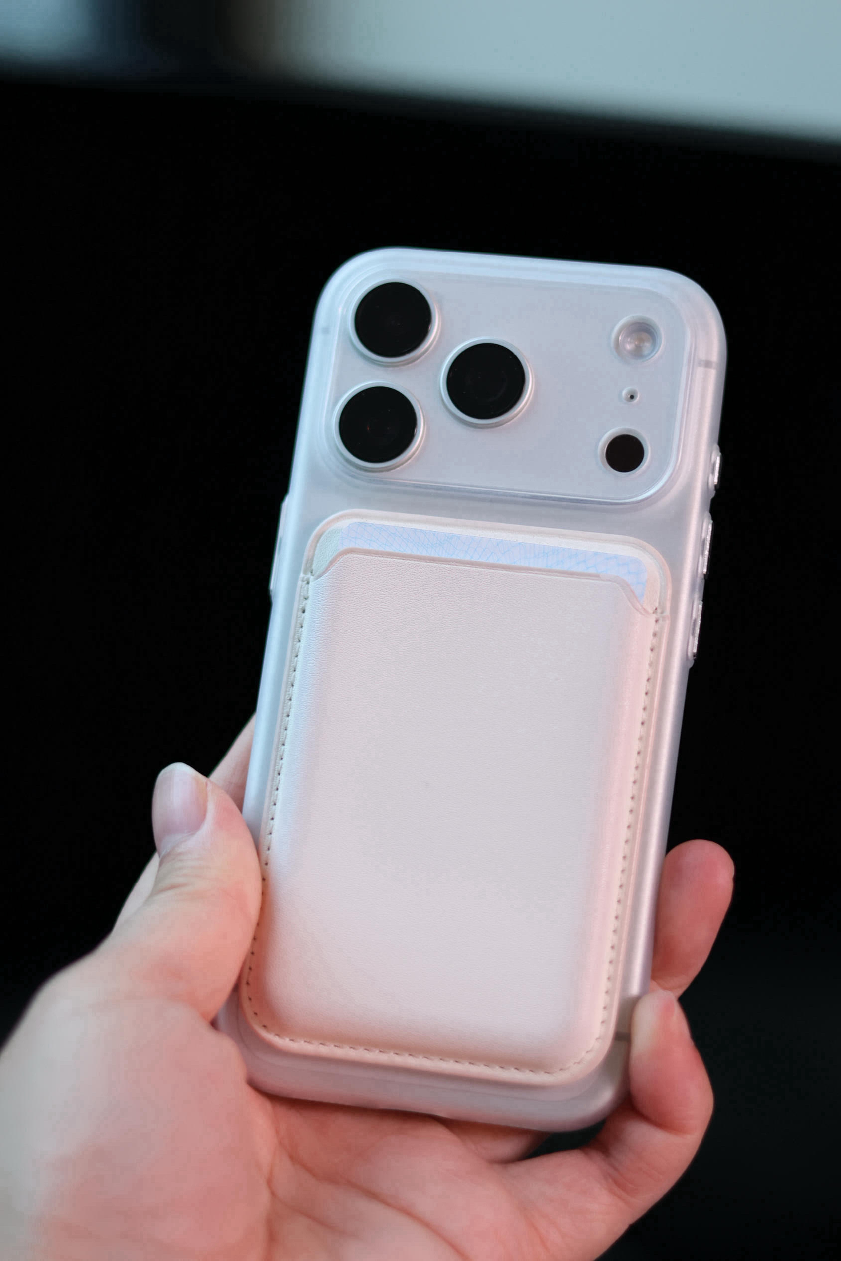 第一眼看它觉得挺普通的🧐 没想到磨砂材质的手机壳 手感摸上去还挺舒服,也不容易滑手 普通的外观也不耽误我苹果🍎17pro的磁吸功能 你看我的磁吸卡包也能妥妥的磁吸在手机背面 这样出门不用担心忘记带卡啦‼️ 平时磁吸充电的也很方便 手机壳背面可以直接充电🔋 白色透明的手机壳搭配我白色的手机📱刚刚好呀~