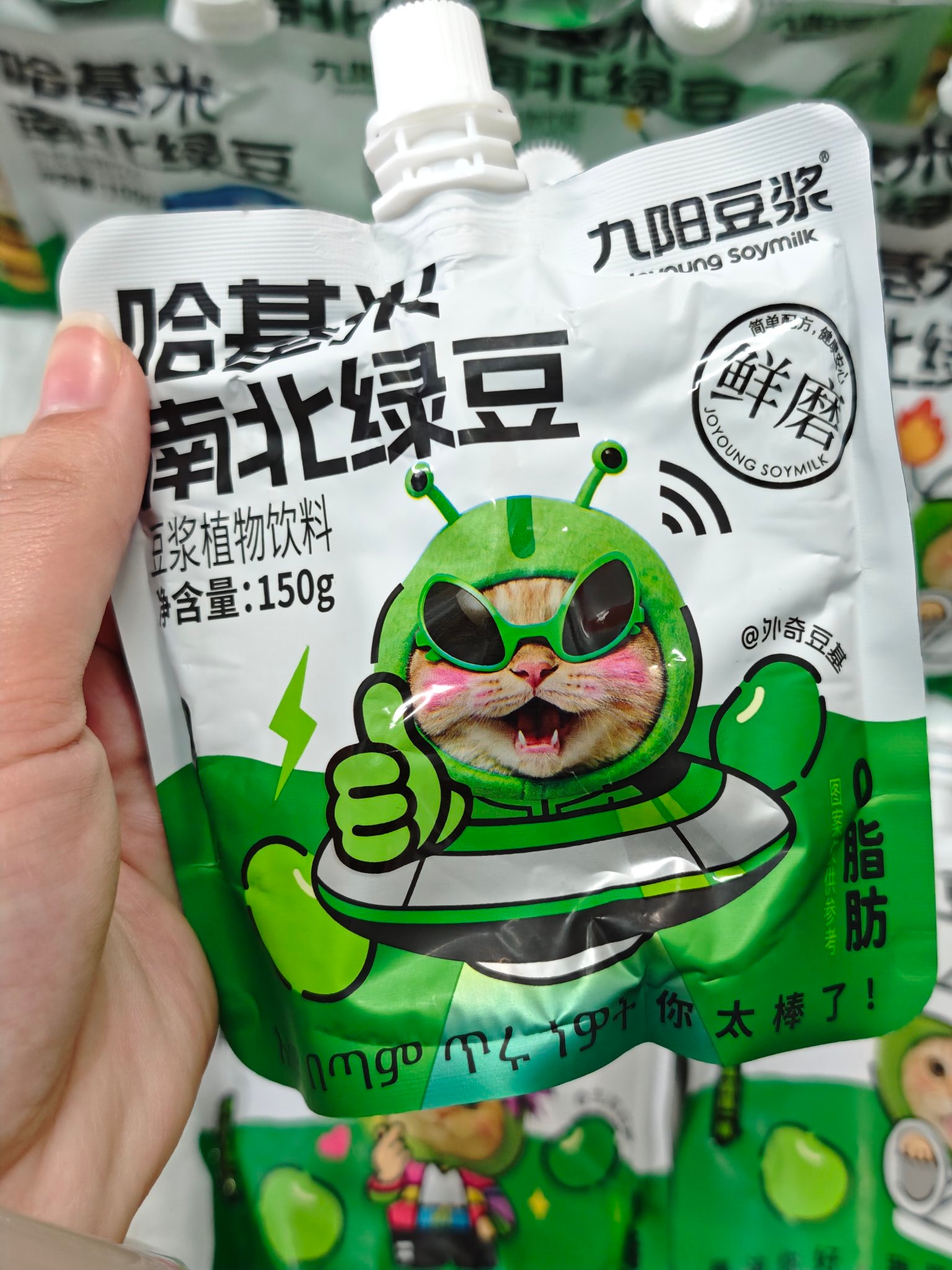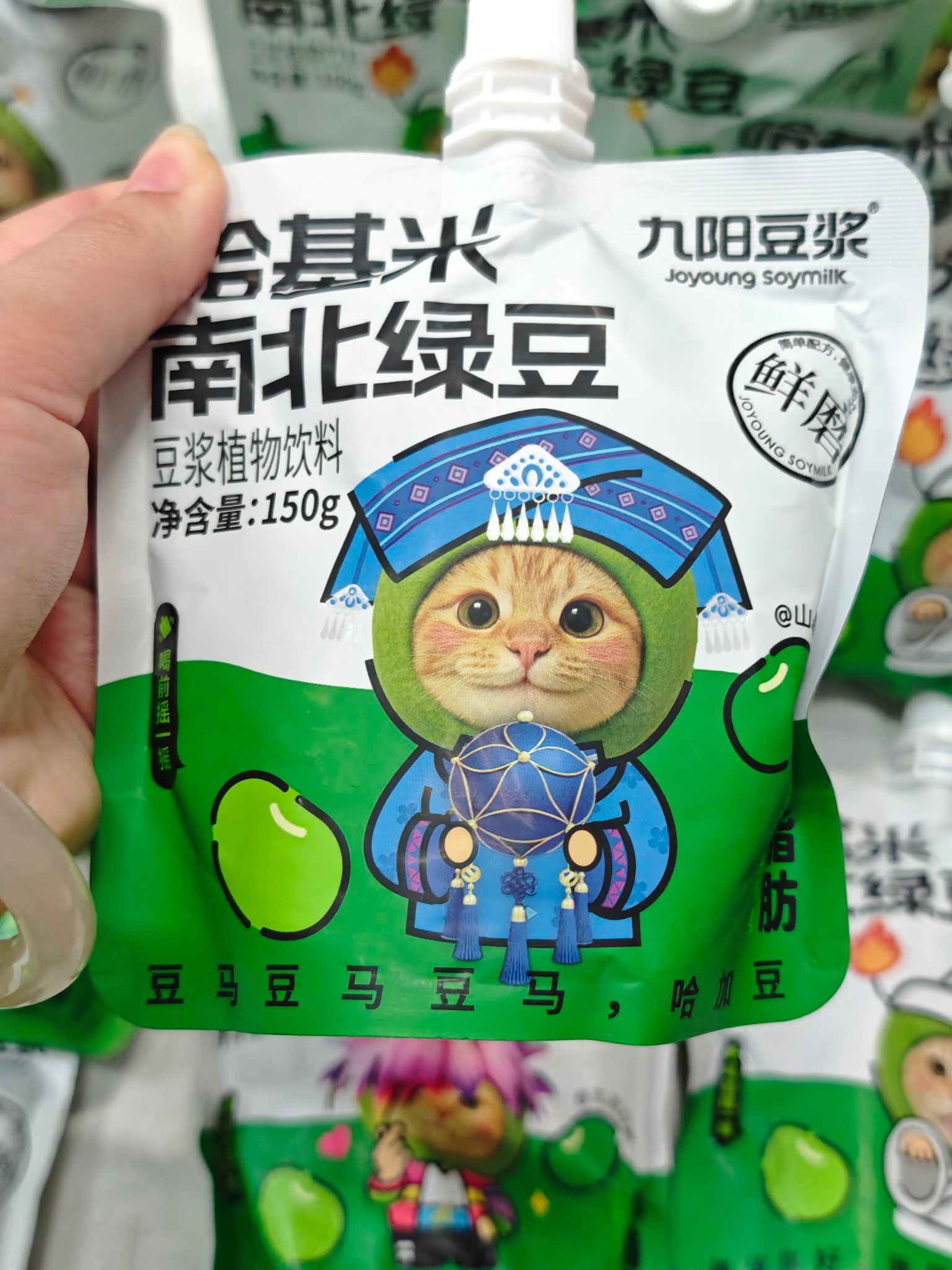 我发现这款豆浆包装上的哈基米图案好有意思,不同造型风格各异,拿在手上很吸睛~配料表也干净,喝着放心,妈妈都不再唠叨我乱喝不健康饮品啦😆。不过它是袋装设计,外出携带时要注意别挤压漏液。双旦送朋友或者自己囤货都挺合适,喜欢哈基米和健康饮品的宝子可以试试~