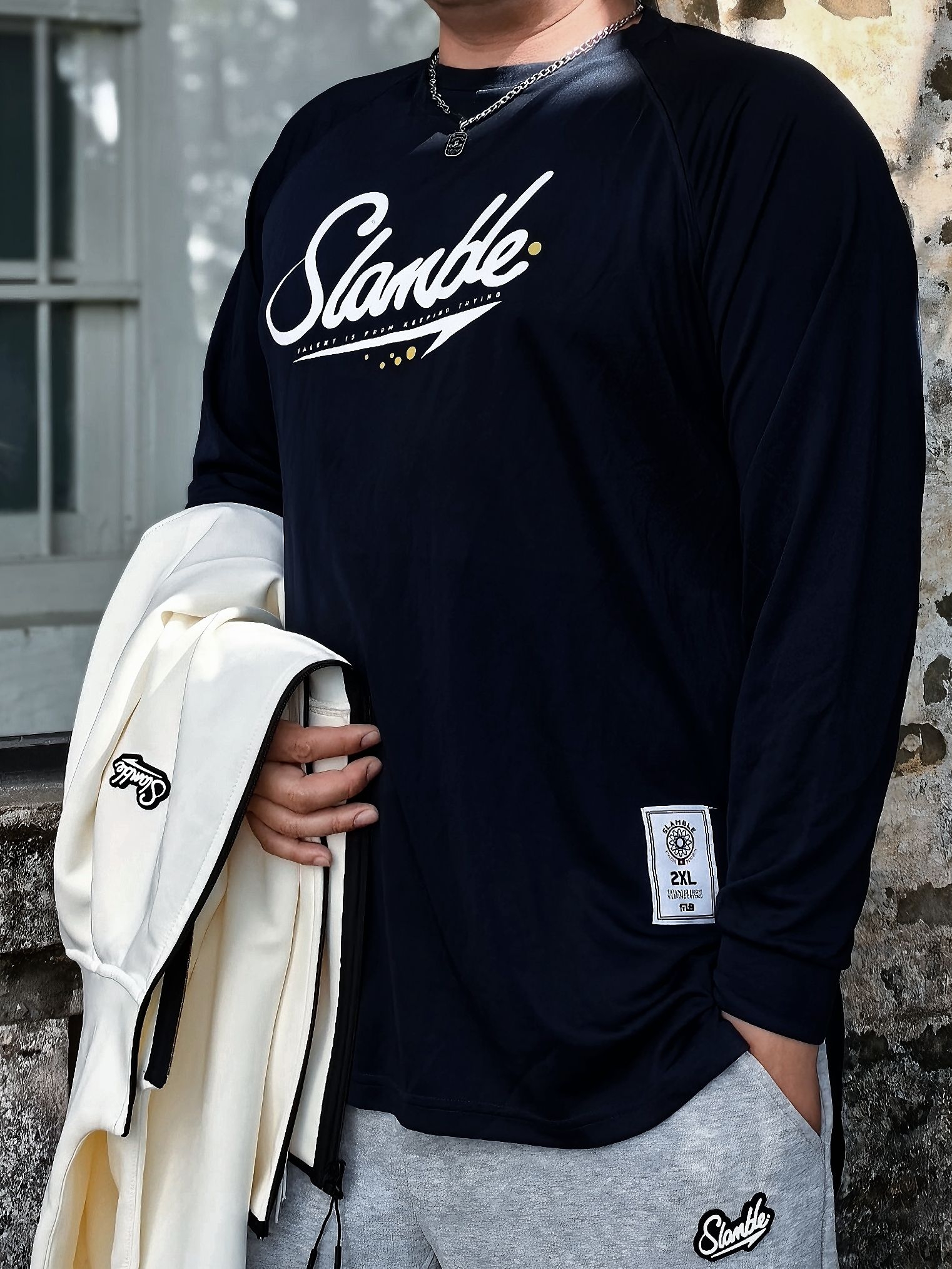 运动休闲风,不挑男女✅不挑身材✅包容度非常高,都能轻松驾驭! 又很舒服又时髦🌟还很百搭 我今天出门穿搭: 上身开衫连帽卫衣,内搭投篮服 下身宽松弯刀卫裤,上脚运动板鞋 重点分享内搭的这件#slamble 运动长袖 速干面料手感超柔软细腻,穿上身🈶点冰凉感,巨舒服🌿 宽松版型加下摆超大开叉设计,就算是运动时做大幅度动作⛹️♂️,也不会有拉扯感✨ 简约的胸前大Logo图案和下摇处标签,呈现了品牌...