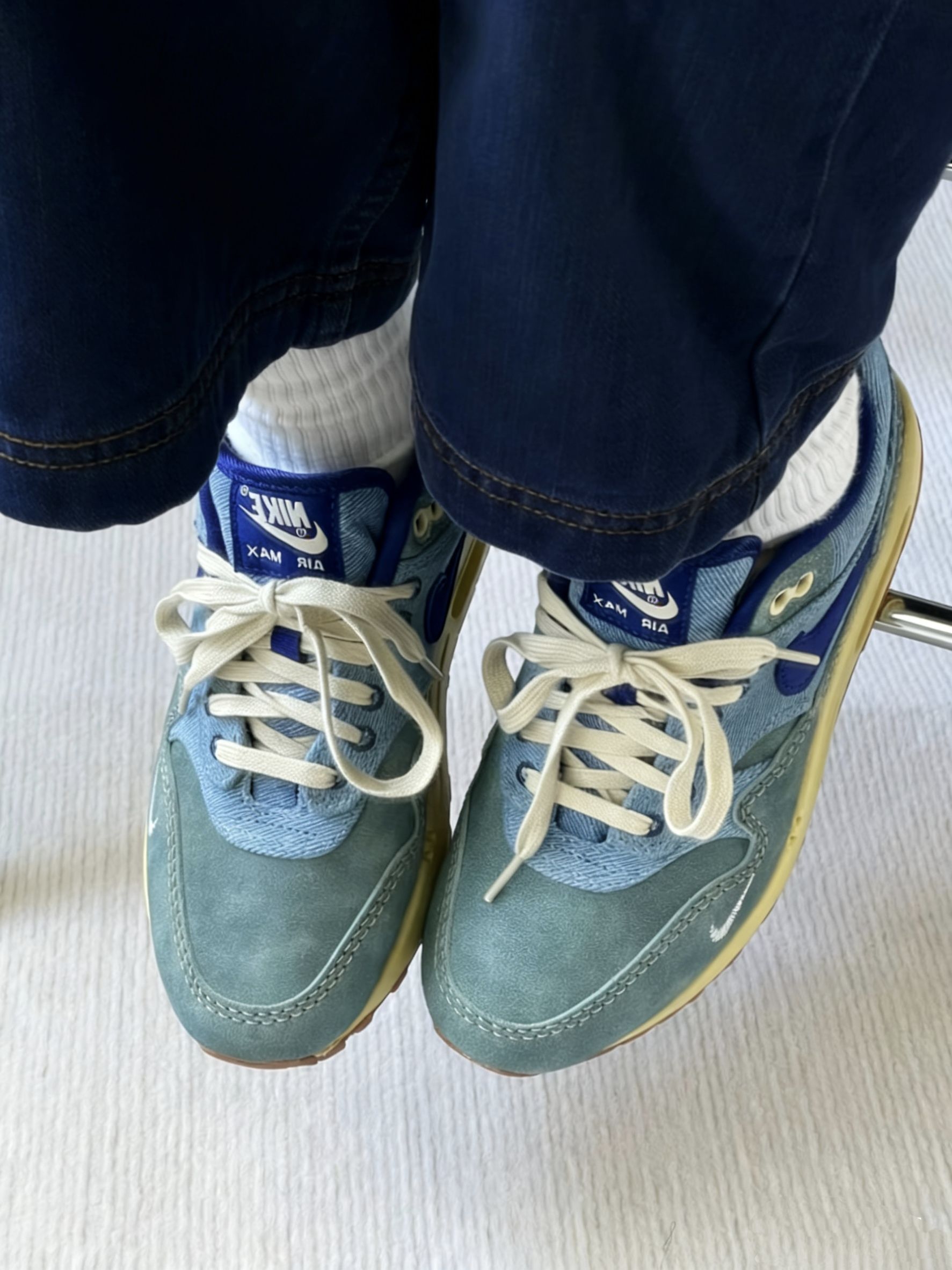 今天分享一双让我一眼心动的Nike Air Max,这个雾蓝绿色真的太戳我了!💖✨ ·雾蓝绿色的鞋面,质感细腻,低饱和度很耐看 ·深蓝色鞋舌和后跟的撞色设计,层次感十足 实测上脚很舒服,日常逛街、轻度运动都很合适。麂皮材质虽然需要小心保养,但带来的高级感值得! 不是什么限量款,就是一双实穿好看的日常鞋。如果你也喜欢这种清新复古风,可以考虑入手!