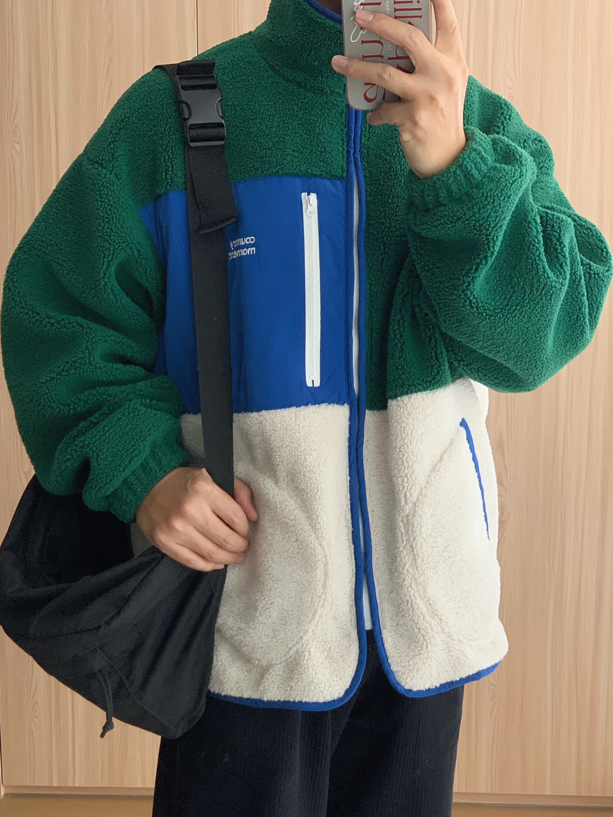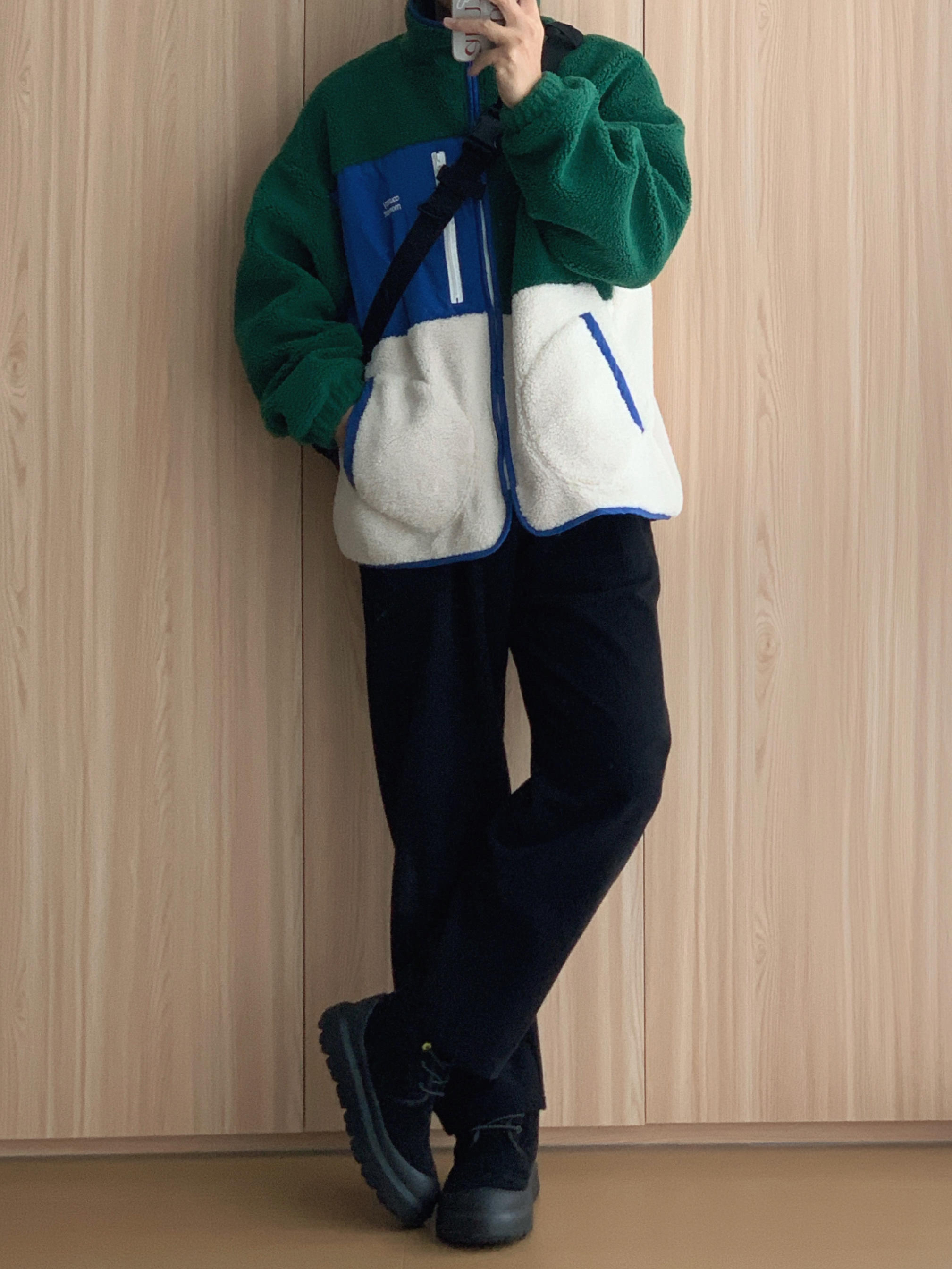 假期的心情跟衣服一样明亮💙💚🤍 🤳🏻OOTD 👨🏻💻175cm|70kg|42码 ▪️撞色羊羔绒外套 ▪️黑色灯芯绒休闲裤 ▪️#ugg 黑色雪地靴 ▪️#nike 黑色斜挎包 🙅🏻♂️个人观点,不喜勿喷,欢迎指点🙏🏻