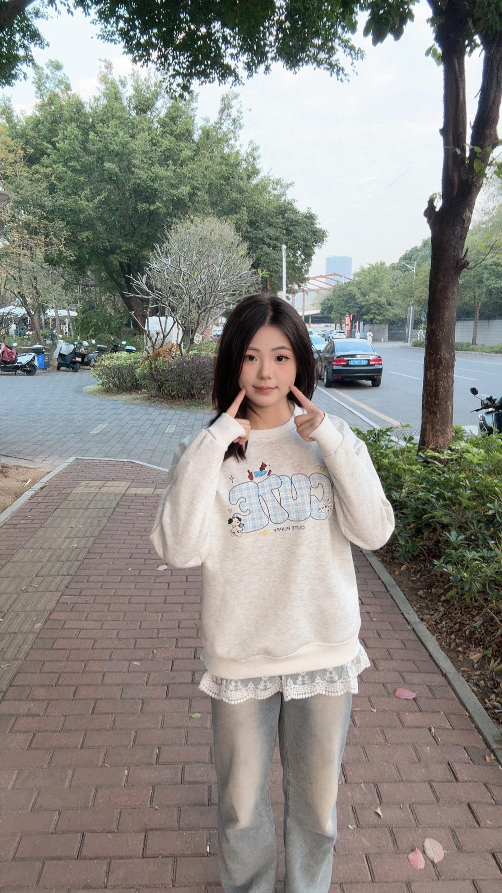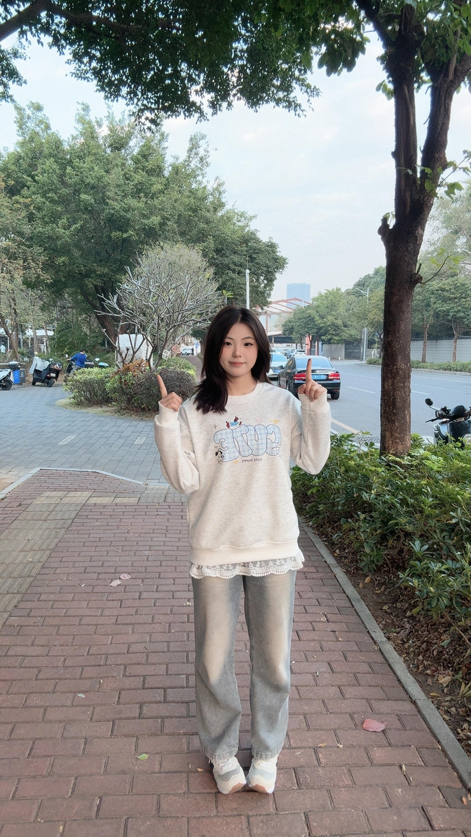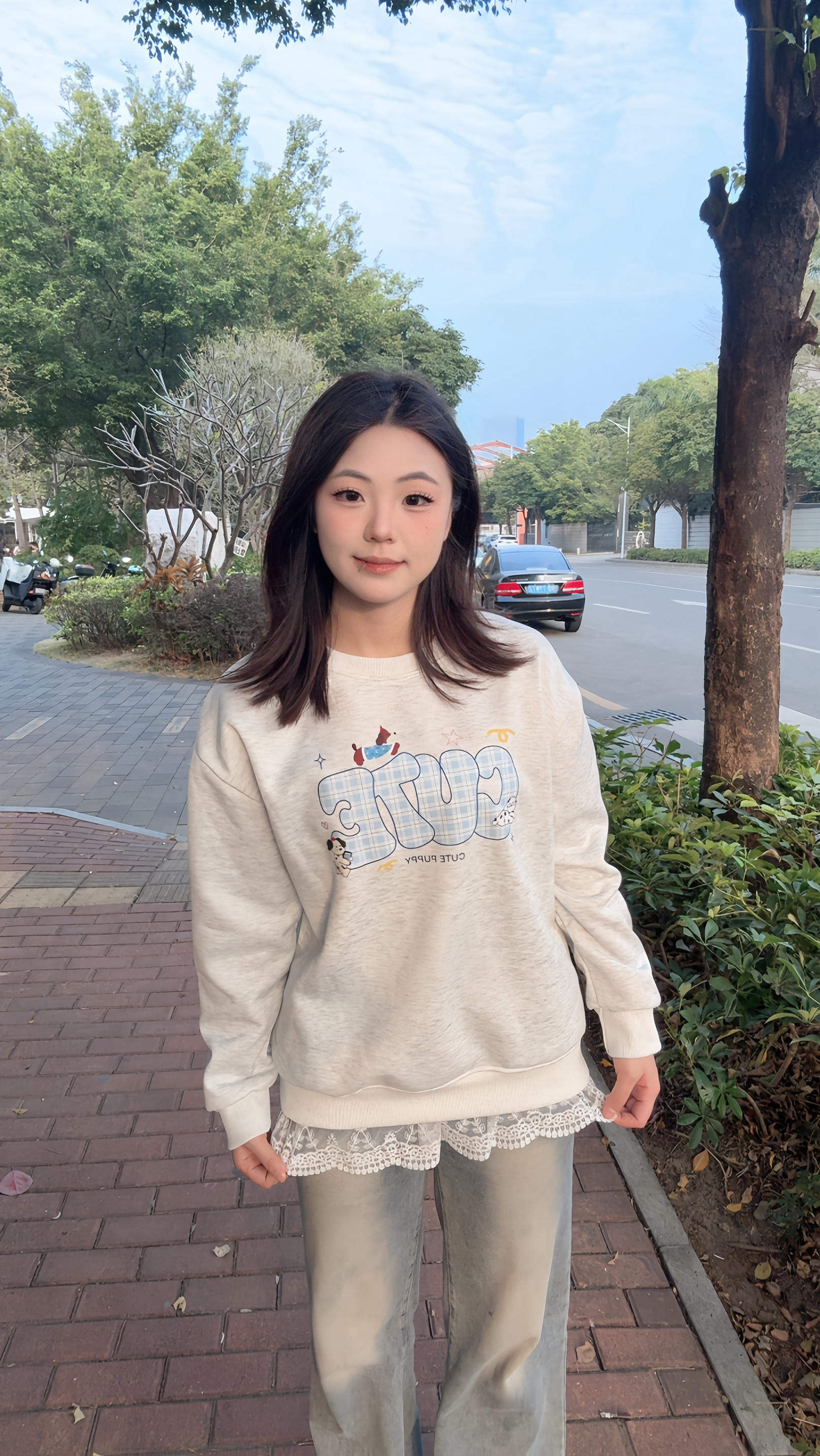 今天是甜妹出街✨ 这件奶呼呼的浅灰卫衣太会了! 软fufu的面料贴身穿超舒服,下摆的蕾丝边直接戳中少女心~ 搭配浅色系牛仔裤,整个人温柔又松弛,是春天的感觉呀! 这件卫衣是我的早春本命!宽松版型藏肉显瘦,搭配蕾丝下摆细节感拉满,单穿叠穿都好看~