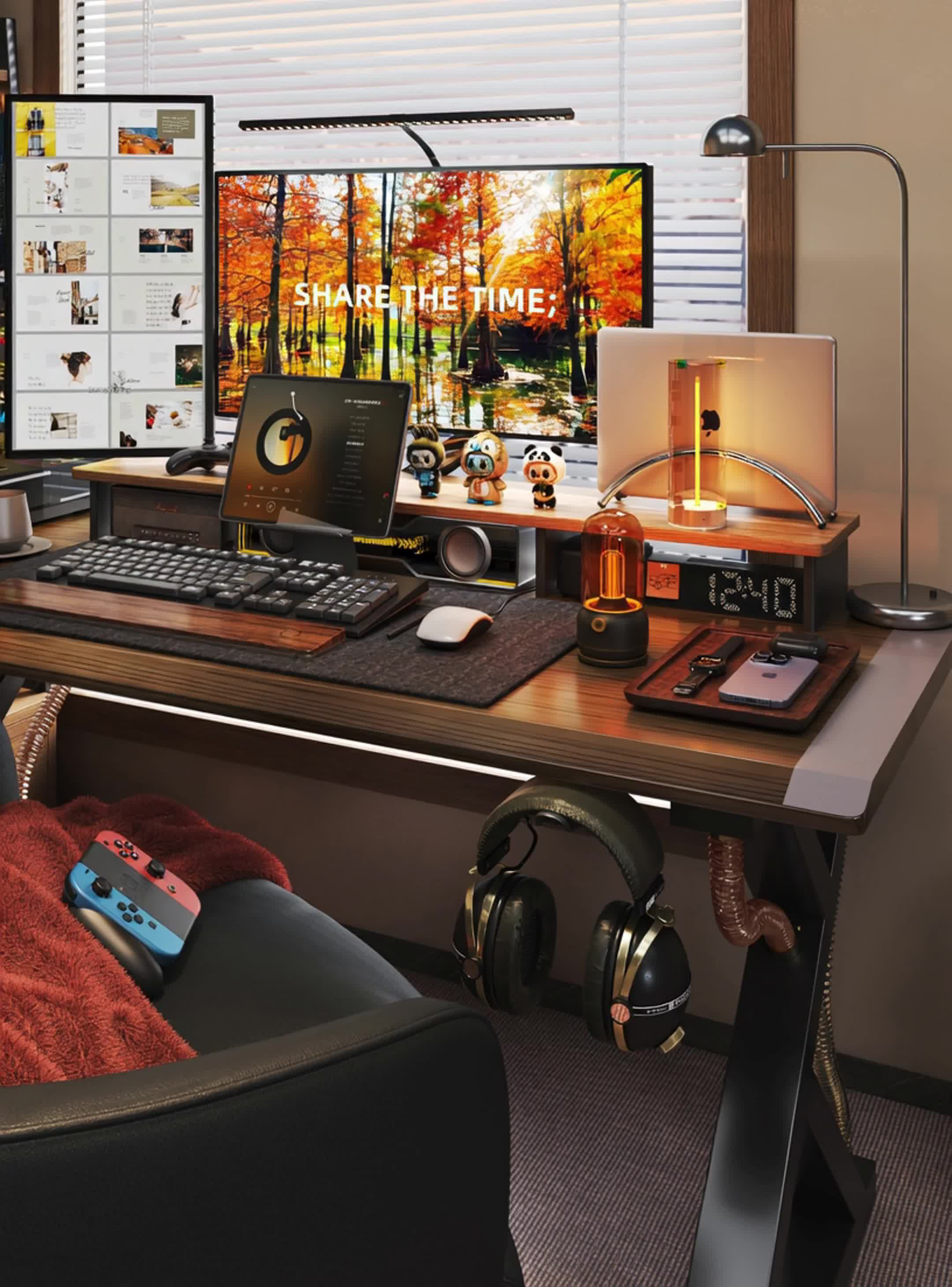 谁懂呀! 全网电竞房设计翻了一遍 怎么摆出高级感也没有弄清楚 原来原木风高级感根本不用靠设备堆叠 看似简约的布局里 一张好桌子就镇压全场了 高级感瞬间就出来了 首先你得有一张足够大气的电竞桌 我的电竞房: 70cm*140cm的加宽松木电竞桌~最低要有70cm宽哦 桌面加厚到25mm全实木 桌脚为40*60加宽方管~市面很多都是30以内,实在有点小气 这样的电竞桌就足够大气 再大的空间也能撑得...
