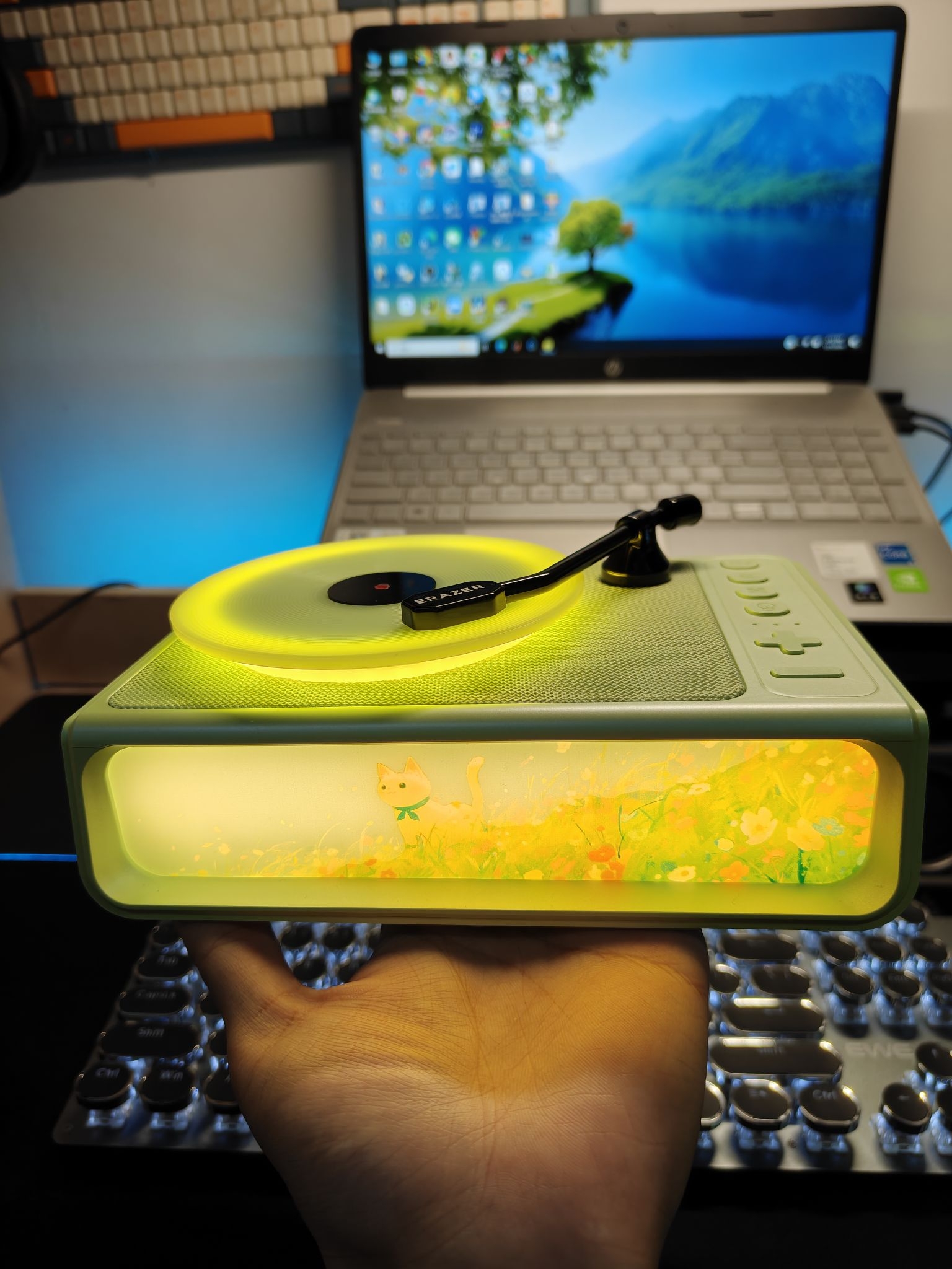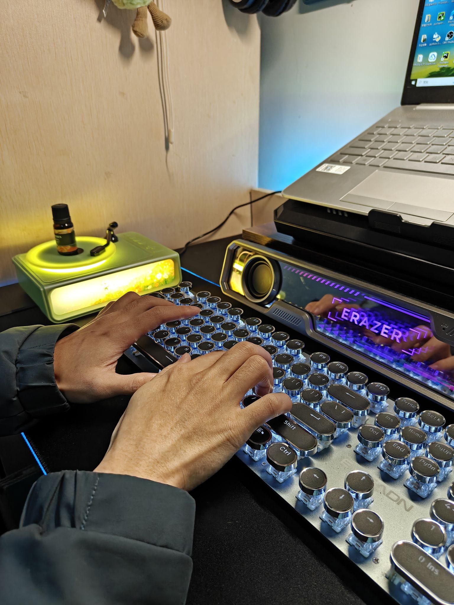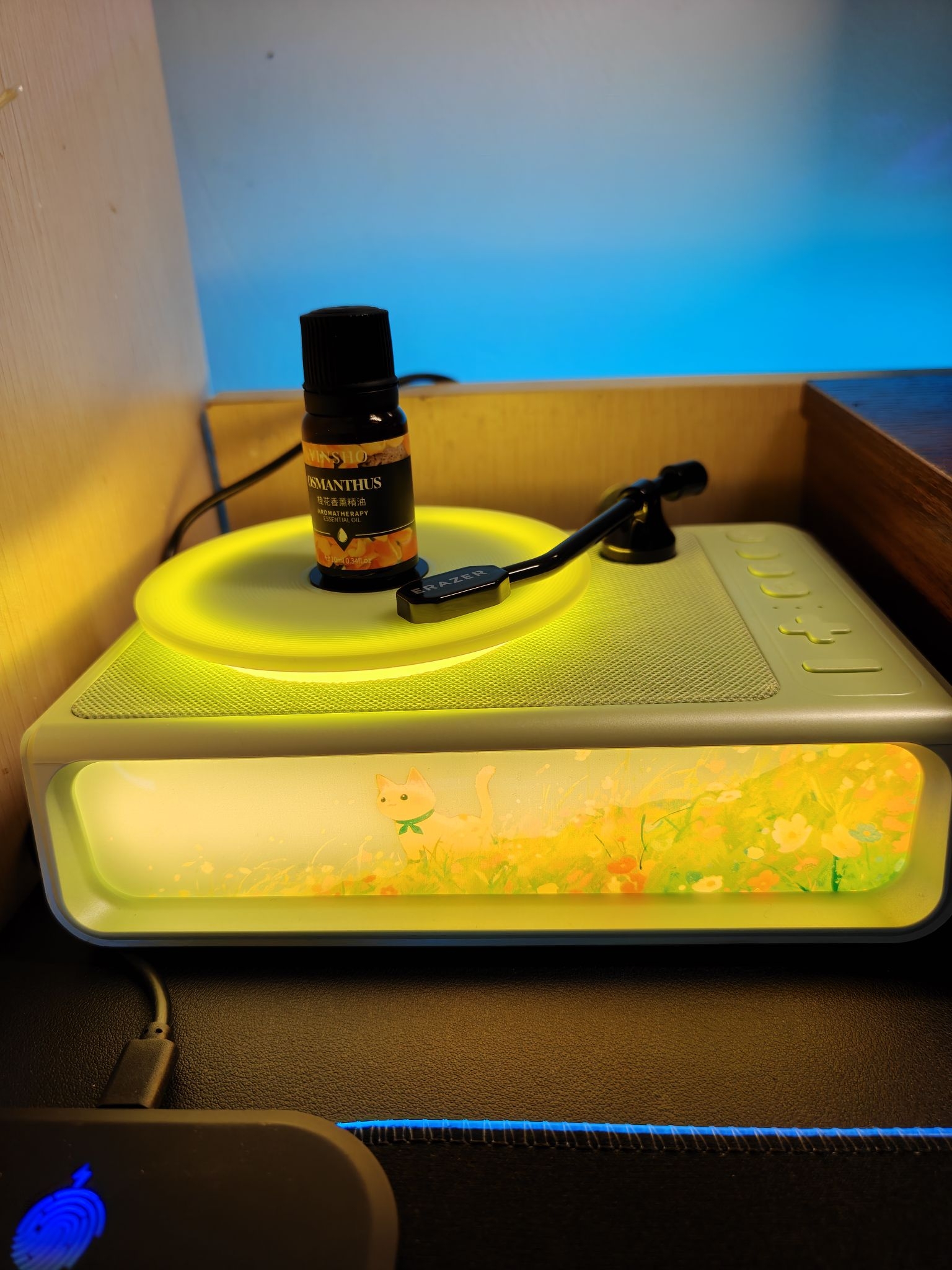 ⭐家人们,我给桌面搭配了一个联想家的氛围感香薰音箱🥰,放桌面真的太舒服啦☺️☺️ ✅它的氛围灯是暖色的,给人一种很温馨的感觉🛏️,感觉特别适合冬天放寝室或者家里🧣 ✅而且它送香薰精油,我的是桂花香的🌸,搭配它的扩香盘使用,让我感觉音乐都是有香味的😍😍😍 ✅音质也挺不错的,听起来很舒服,放我桌面左边刚好合适😀😀 ⭕你们觉得我桌面放这个音箱咋样呀❓