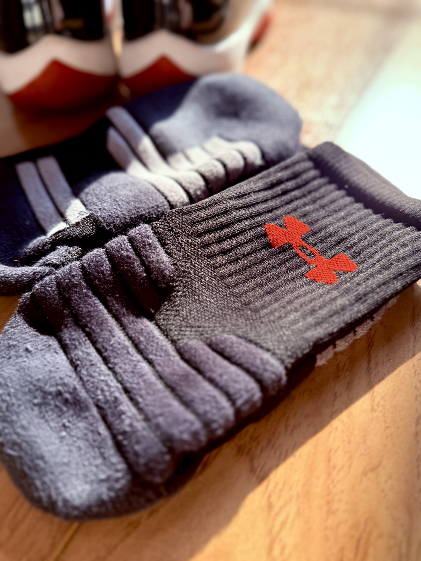 学生党穿什么合适?这样一套搭配其实不错。 AJ11黑红,我认为它是最经典且最好搭配和打理的一款,每年都会找机会拿出来穿一阵,脚感和包裹都在线哦! 这双UA袜子可是穿了一段时间亲测不错的,罗纹袜口非常贴合但不会过于紧,穿了将近两个月了袜口没有松动走形,大面积的网眼透气性也不错,高强度运动也没有闷脚,也没有严重起球的现象,确实值得推荐。@Lil_XTang #学生党有自己的鞋修 ...