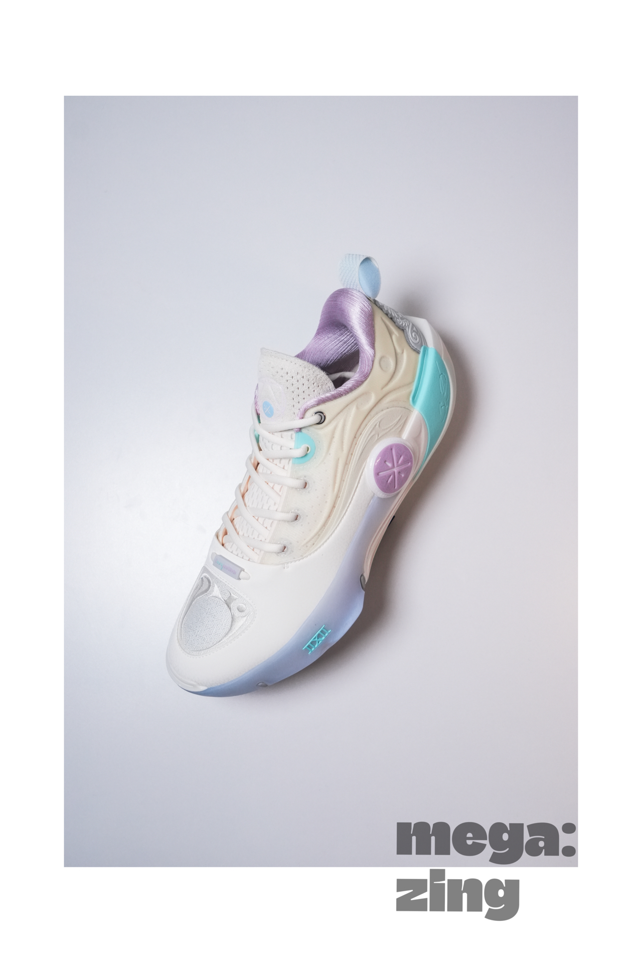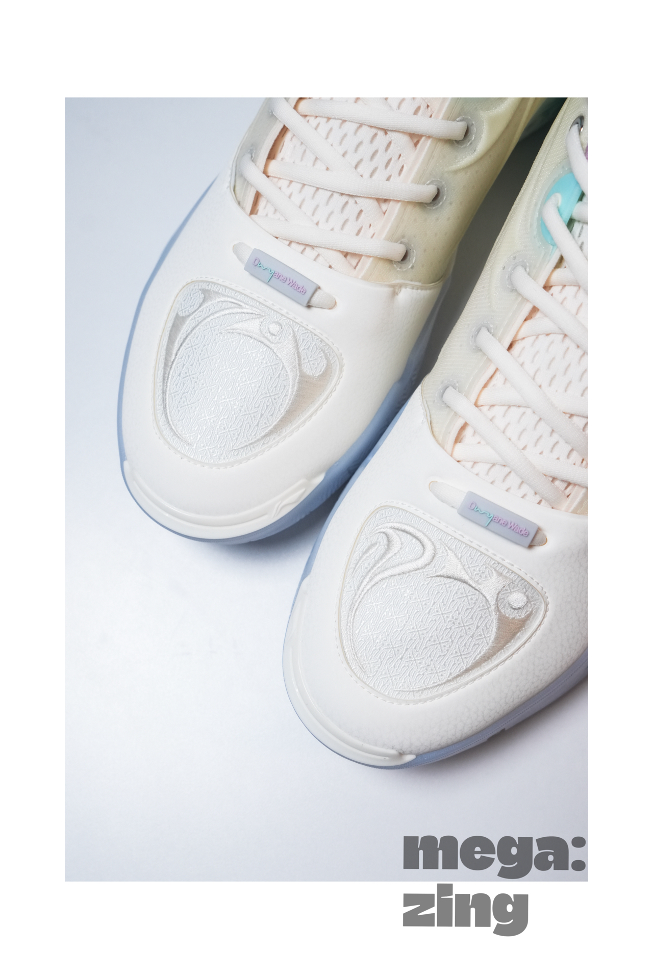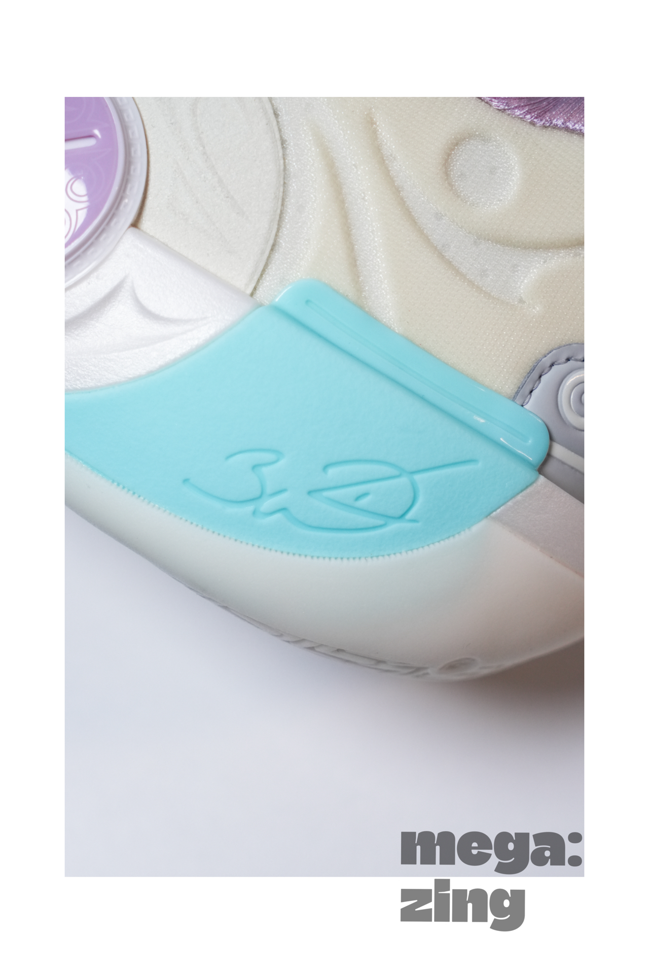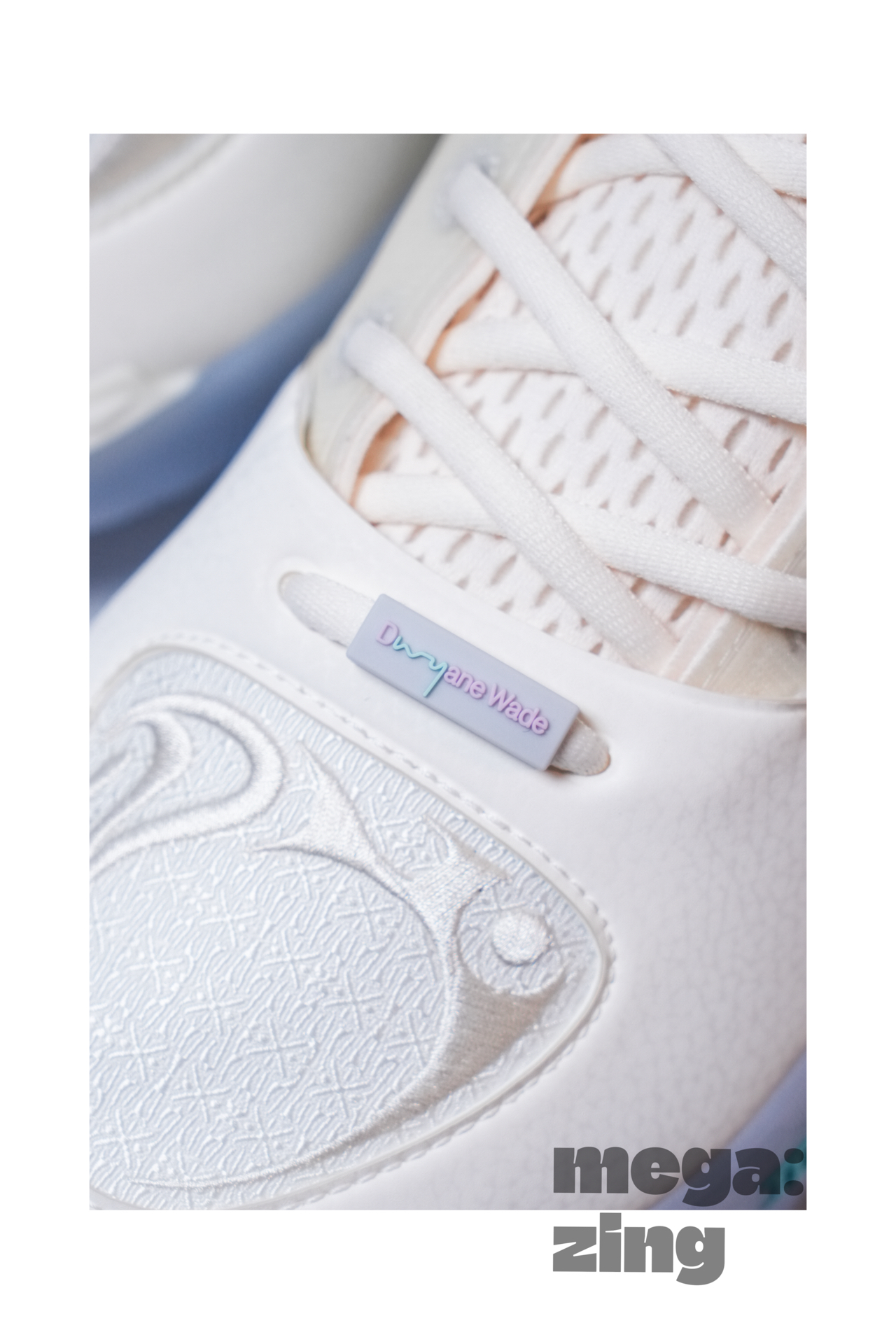 话题回到这双棉花糖身上,依旧是系列最受欢迎的配色方案之一,打开鞋盒那清新甜蜜的味道仿佛扑面而来,我发现每次设计师在这个配色上都能很快找到大家最喜欢的点,比如白色和米色搭配的鞋面,不同的质感划分,藕荷色与淡蓝色的组合直接扣题。这次中底后跟部分的TPU没有用到碳板花纹,我觉得这个改变很好,总感觉这个配色用碳板花纹会有些怪,这里换成了德哥的签名,恰到好处。最后GCU的外底搭配半透明的橡胶在前掌部分呈现的韦德之道Logo也是我非常喜欢的细节。