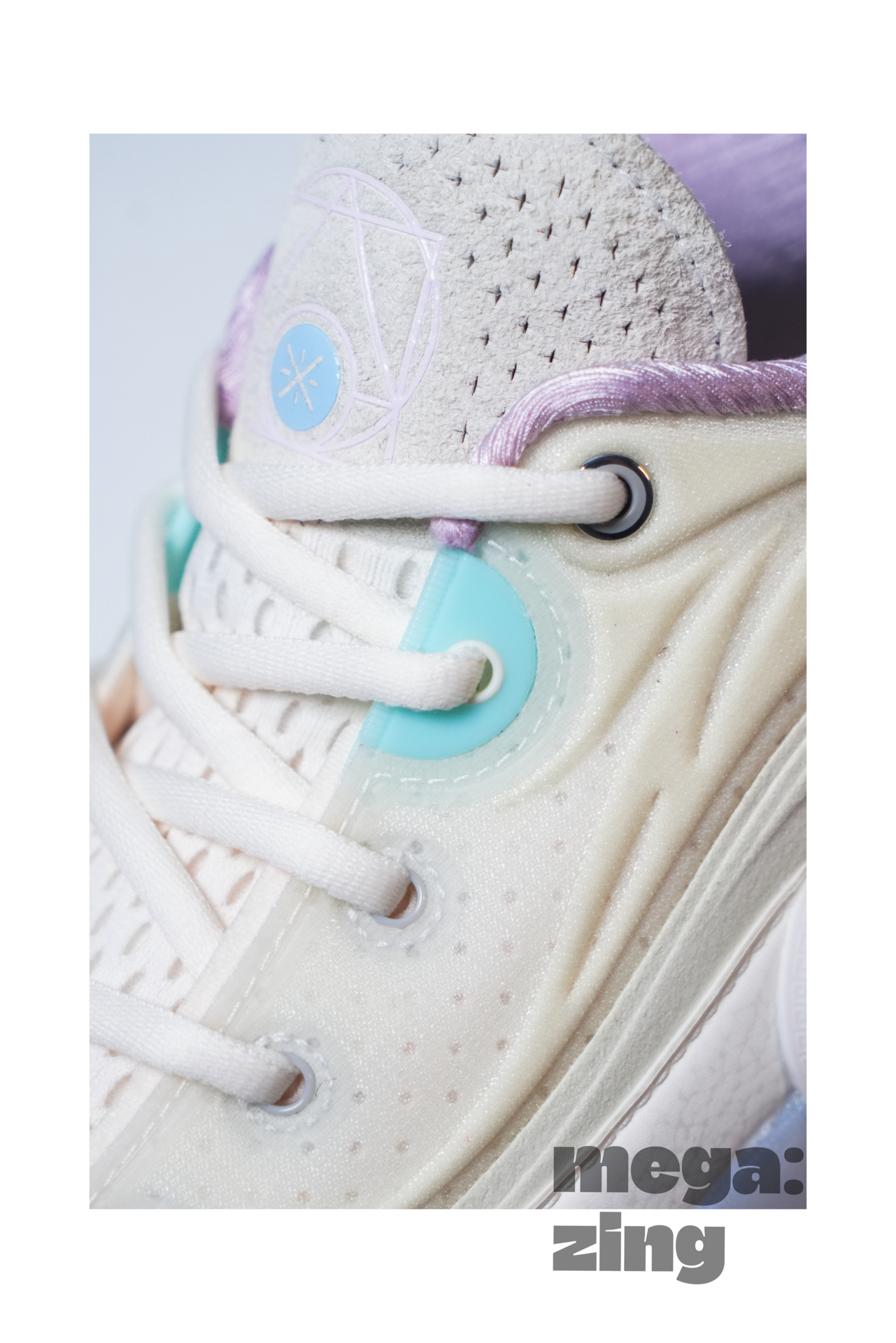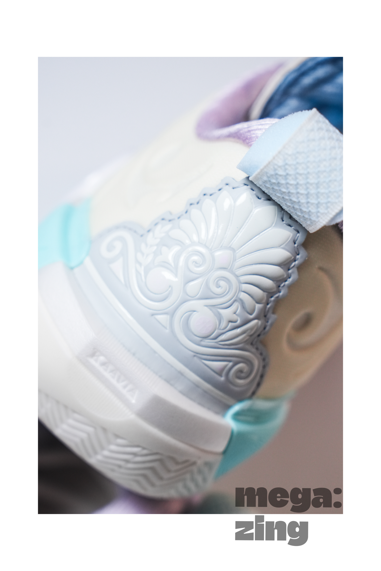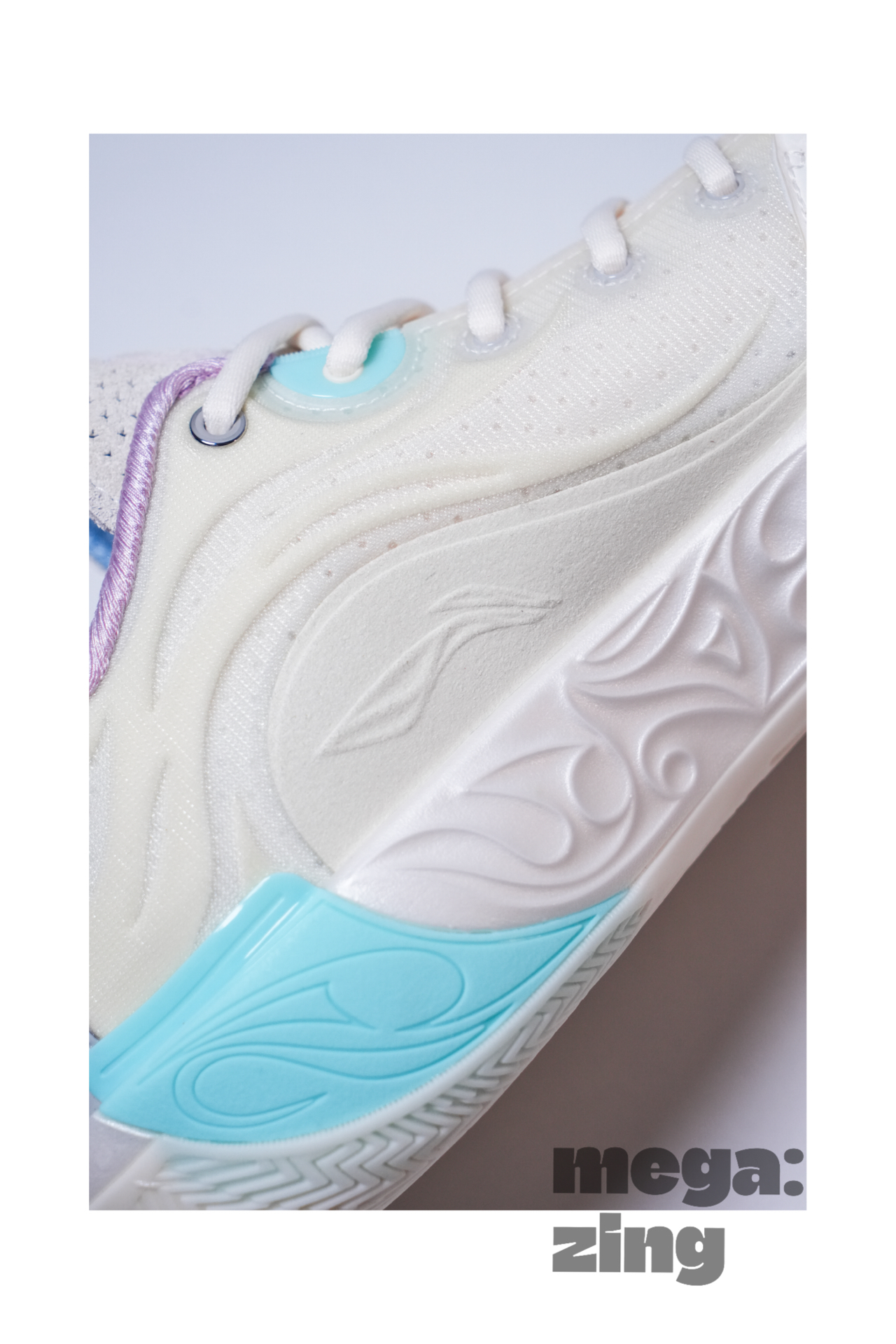 话题回到这双棉花糖身上,依旧是系列最受欢迎的配色方案之一,打开鞋盒那清新甜蜜的味道仿佛扑面而来,我发现每次设计师在这个配色上都能很快找到大家最喜欢的点,比如白色和米色搭配的鞋面,不同的质感划分,藕荷色与淡蓝色的组合直接扣题。这次中底后跟部分的TPU没有用到碳板花纹,我觉得这个改变很好,总感觉这个配色用碳板花纹会有些怪,这里换成了德哥的签名,恰到好处。最后GCU的外底搭配半透明的橡胶在前掌部分呈现的韦德之道Logo也是我非常喜欢的细节。