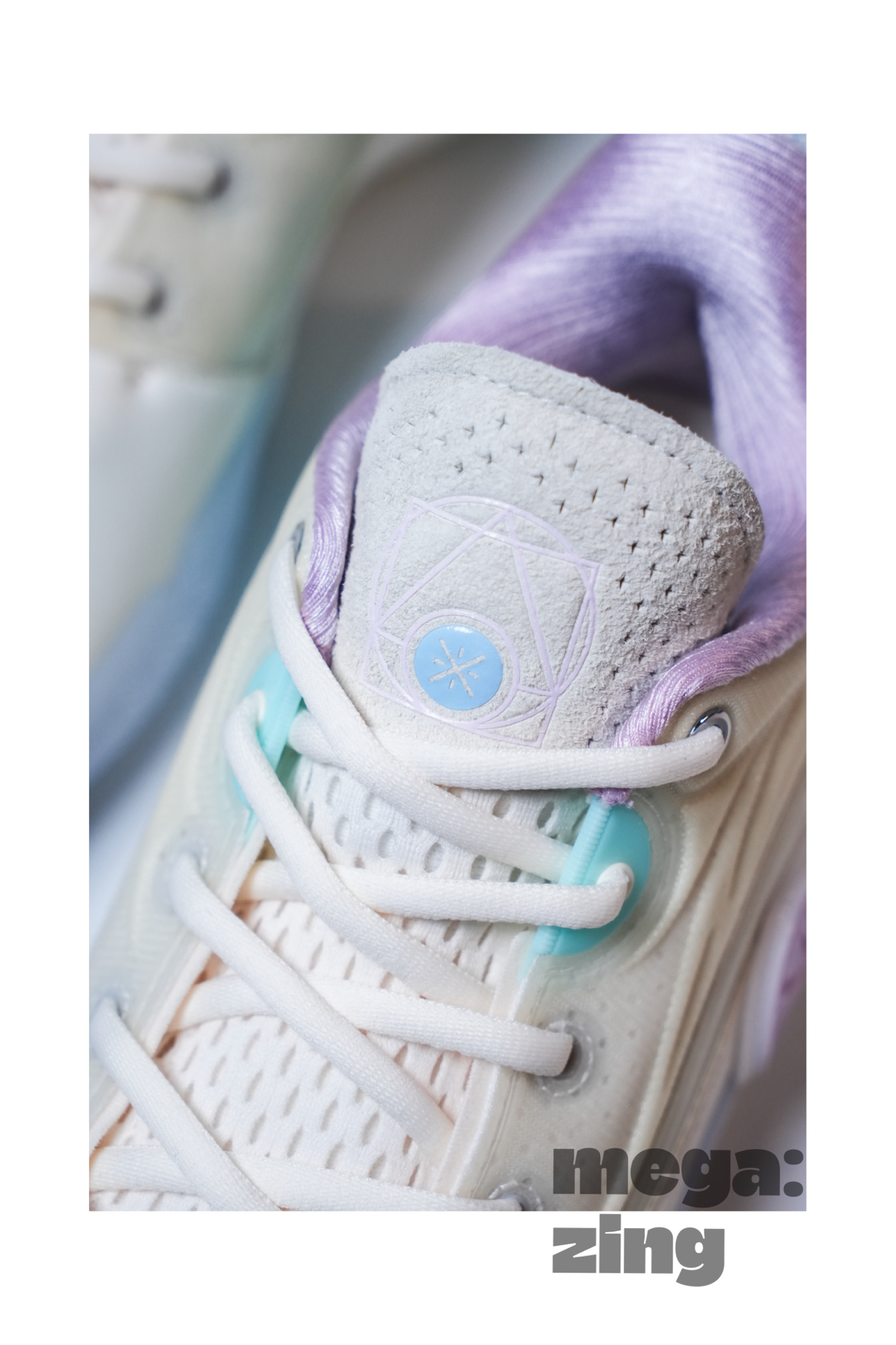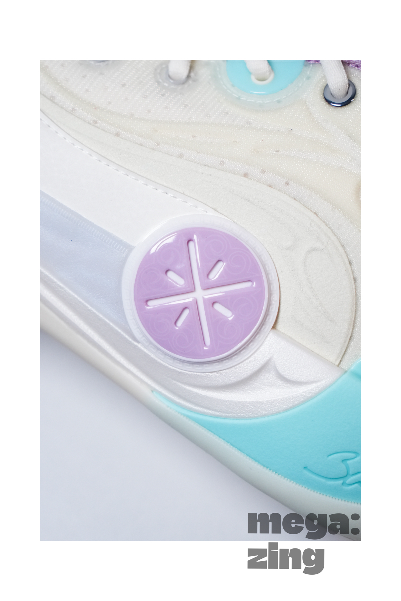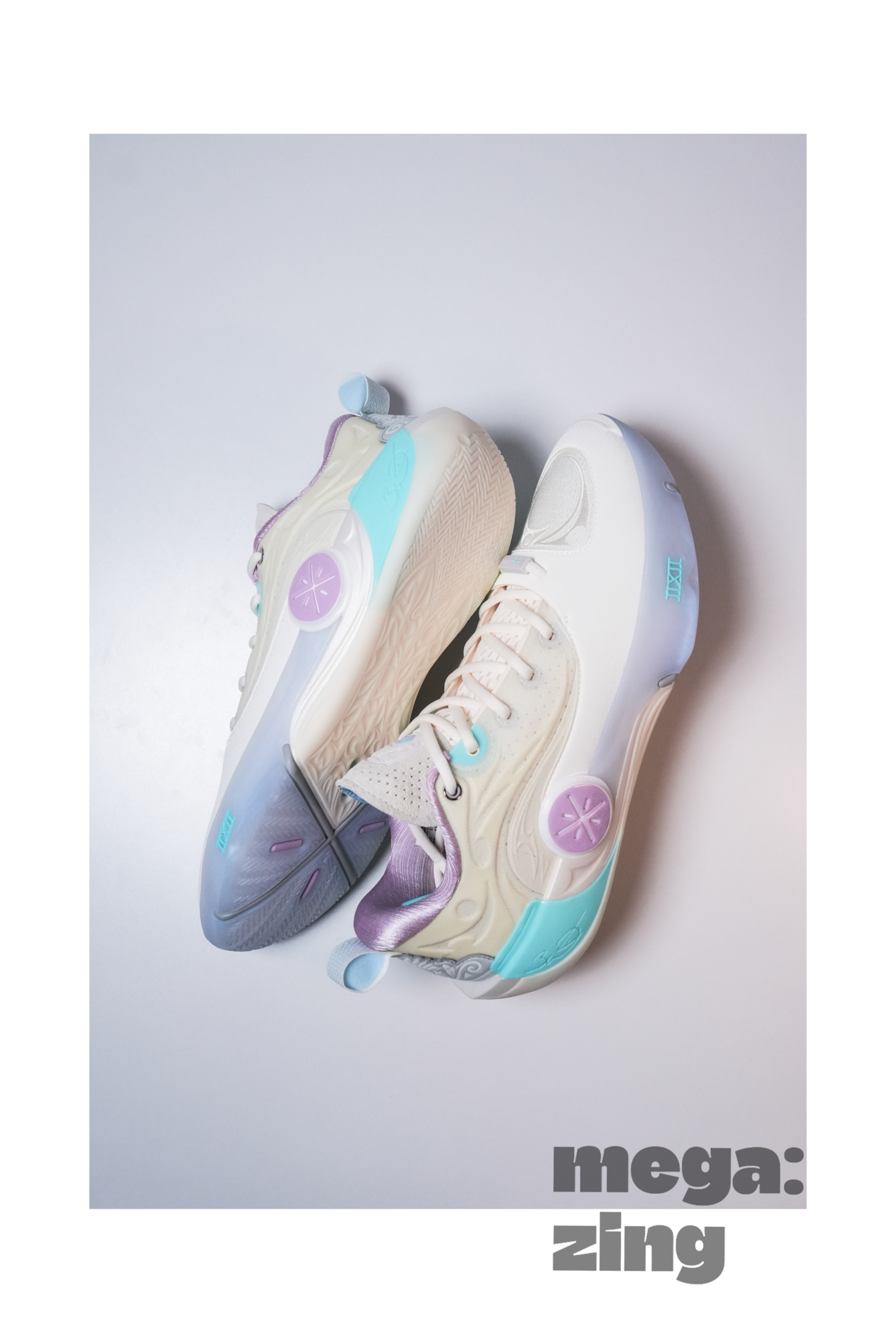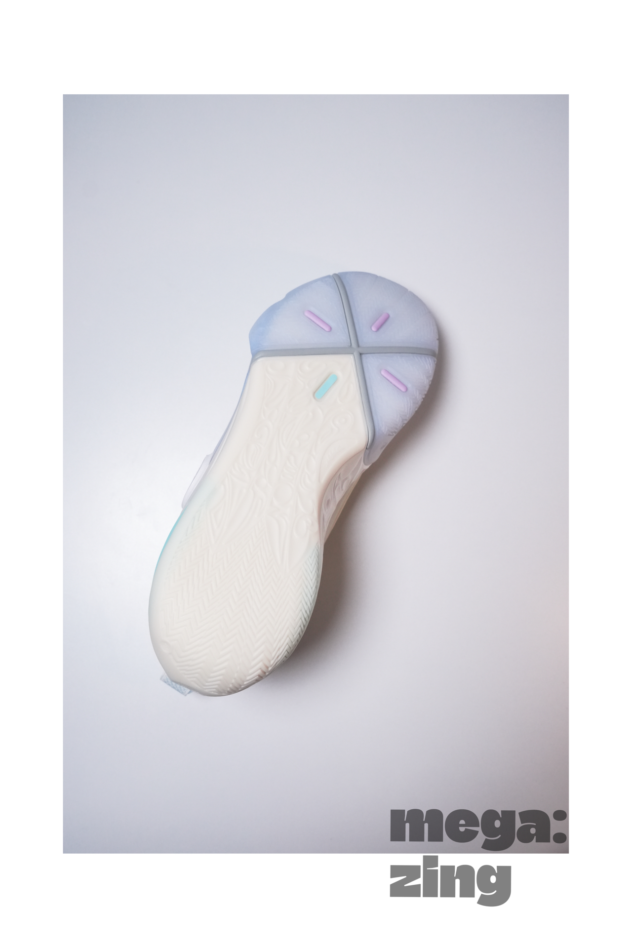 话题回到这双棉花糖身上,依旧是系列最受欢迎的配色方案之一,打开鞋盒那清新甜蜜的味道仿佛扑面而来,我发现每次设计师在这个配色上都能很快找到大家最喜欢的点,比如白色和米色搭配的鞋面,不同的质感划分,藕荷色与淡蓝色的组合直接扣题。这次中底后跟部分的TPU没有用到碳板花纹,我觉得这个改变很好,总感觉这个配色用碳板花纹会有些怪,这里换成了德哥的签名,恰到好处。最后GCU的外底搭配半透明的橡胶在前掌部分呈现的韦德之道Logo也是我非常喜欢的细节。