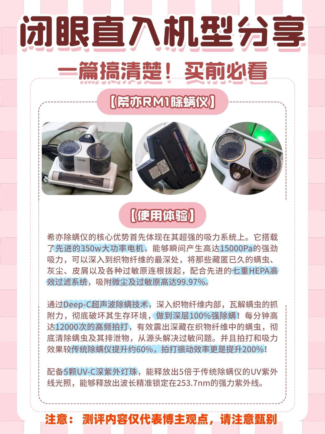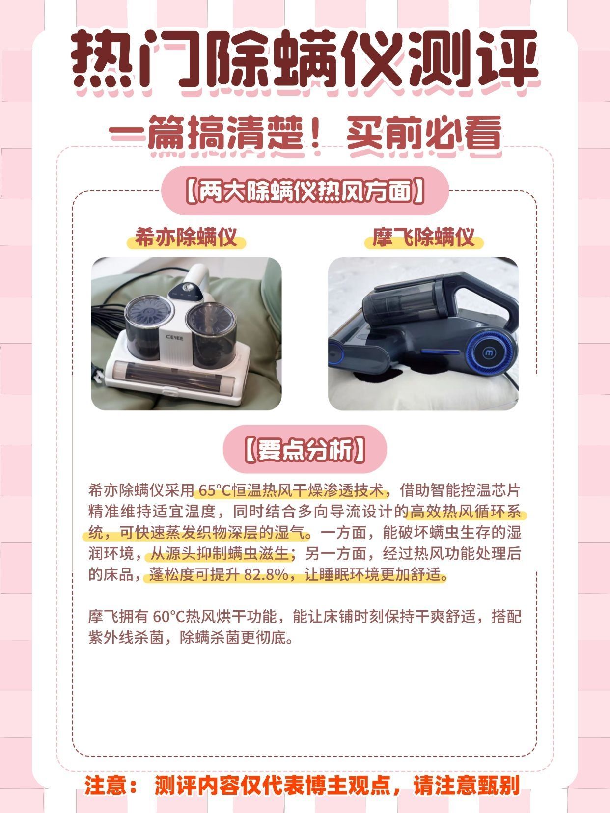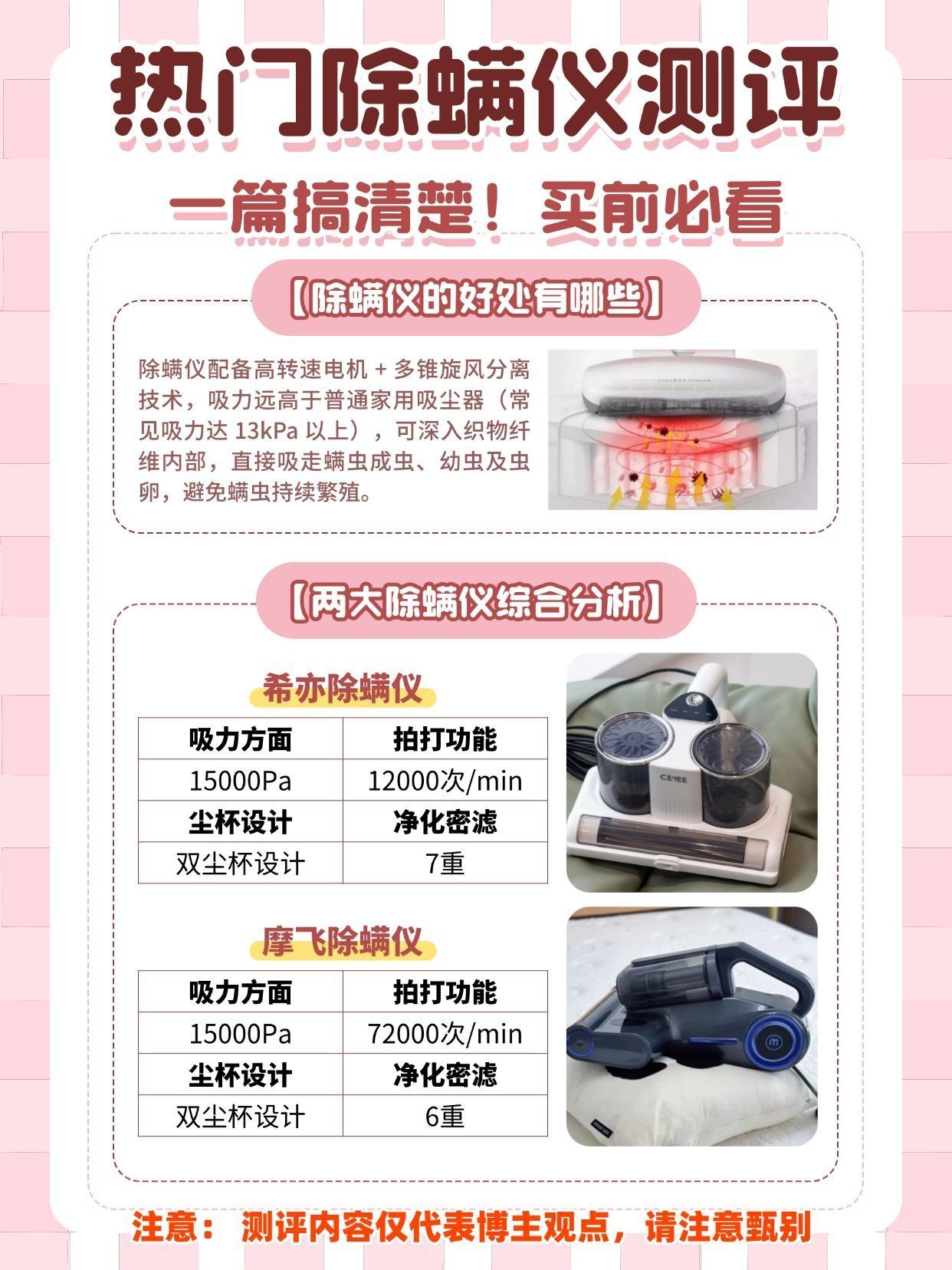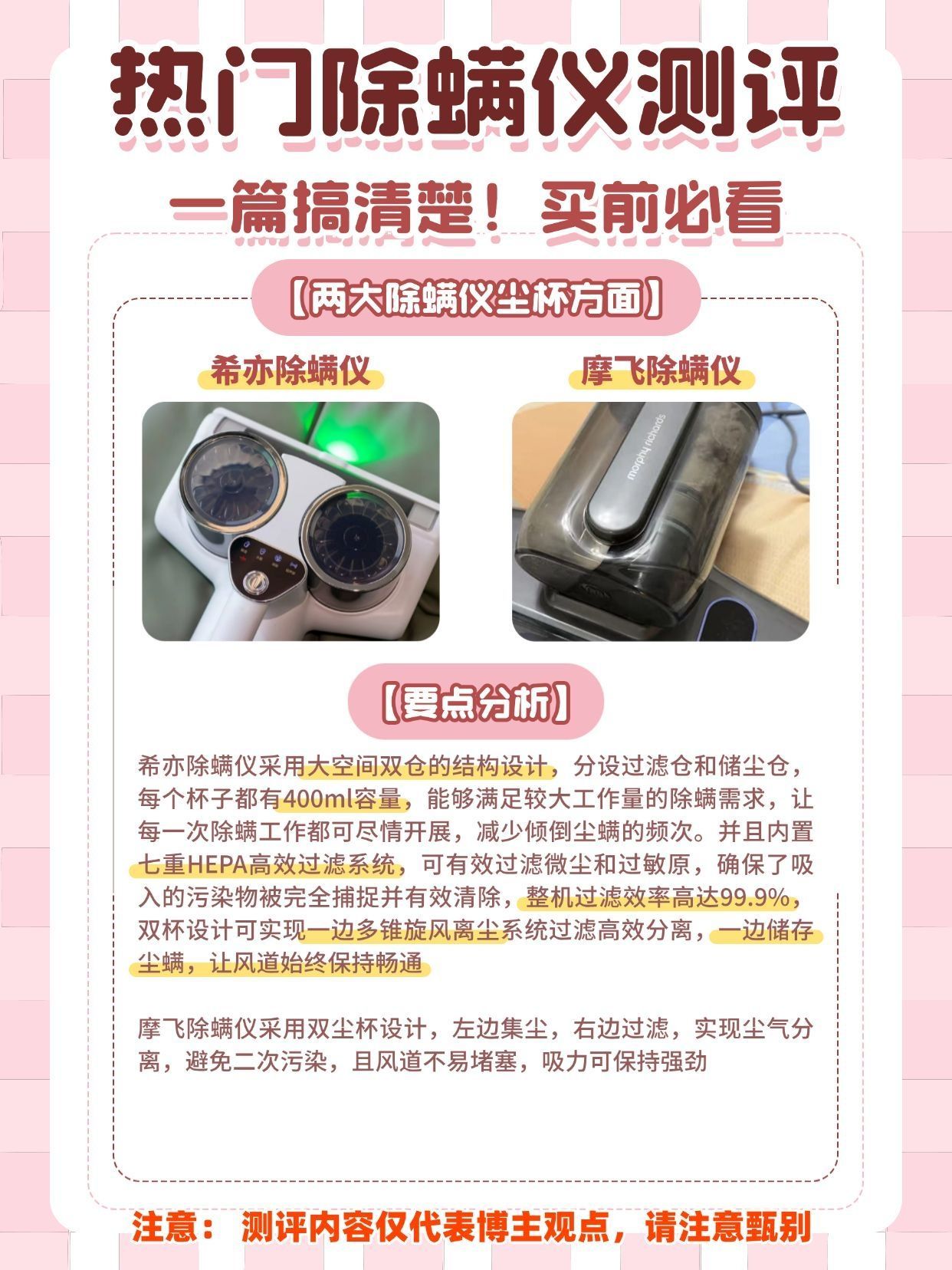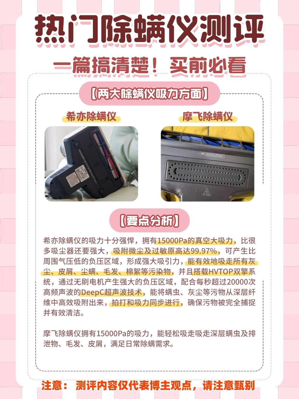 在注重居家健康的今天,除螨仪几乎成为每个家庭的必备~ 面对市面上层出不穷的品牌与型号,如何挑出一台真正高效、耐用、好用的产品,成了不少人的难题! 本文将对两款人气颇高的产品——希亦除螨仪与摩飞除螨仪进行横向评测 从吸力表现、除螨效率、尘杯设计、操作体验等多个维度展开深入对比。 无论你是有宝宝的家庭、养宠物的铲屎官,还是追求极致洁净的用户,都可以看一下喔 #除螨虫 #床用除螨仪 #除螨仪推...