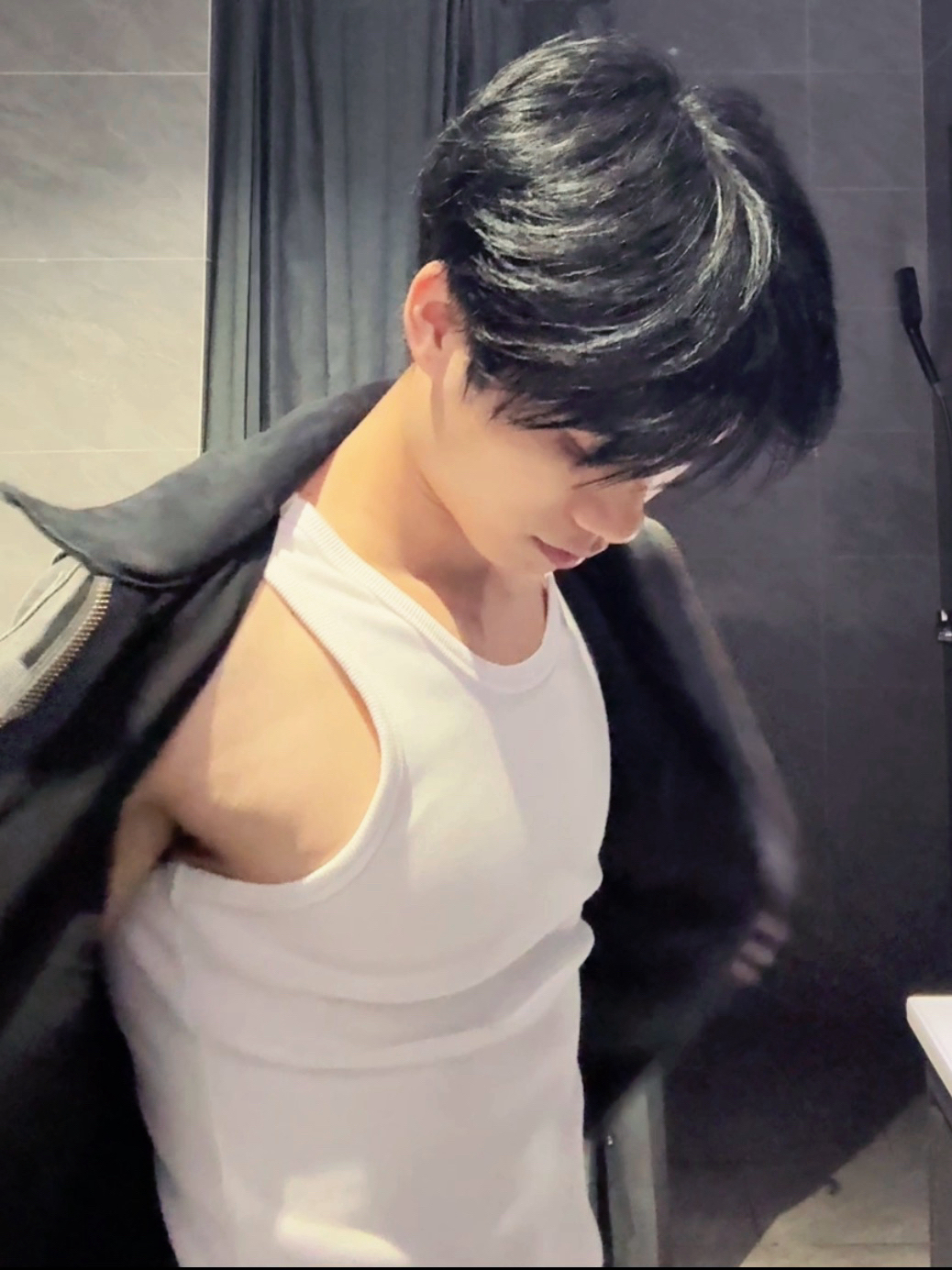 冬天就直接穿个背心在里面外面套一个厚一点的外套就直接出去健身房,懒人穿搭!