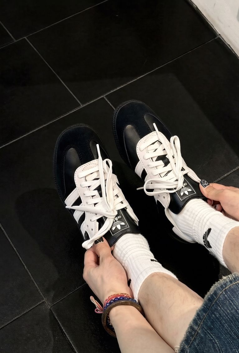 刚上脚这双阿迪复古鞋,第一感受是鞋面的网布+翻毛拼接挺有质感的🌿,网布部分夏天穿确实透气,不会闷脚。黑白配色很讨喜,搭牛仔裤👖、运动裤都很顺,日常出门不用费脑想搭配,这一点还挺戳我的✅。 但它的小毛病也很明显,翻毛材质特别容易沾灰🤨,走两步鞋头就沾一圈灰,清洁起来得用专用洗剂,有点麻烦。鞋型偏瘦,我脚略宽,选正码挤脚,换大半码才刚好,脚宽的朋友得注意。还有鞋底偏硬,短距离走路没问题,逛久了前掌...