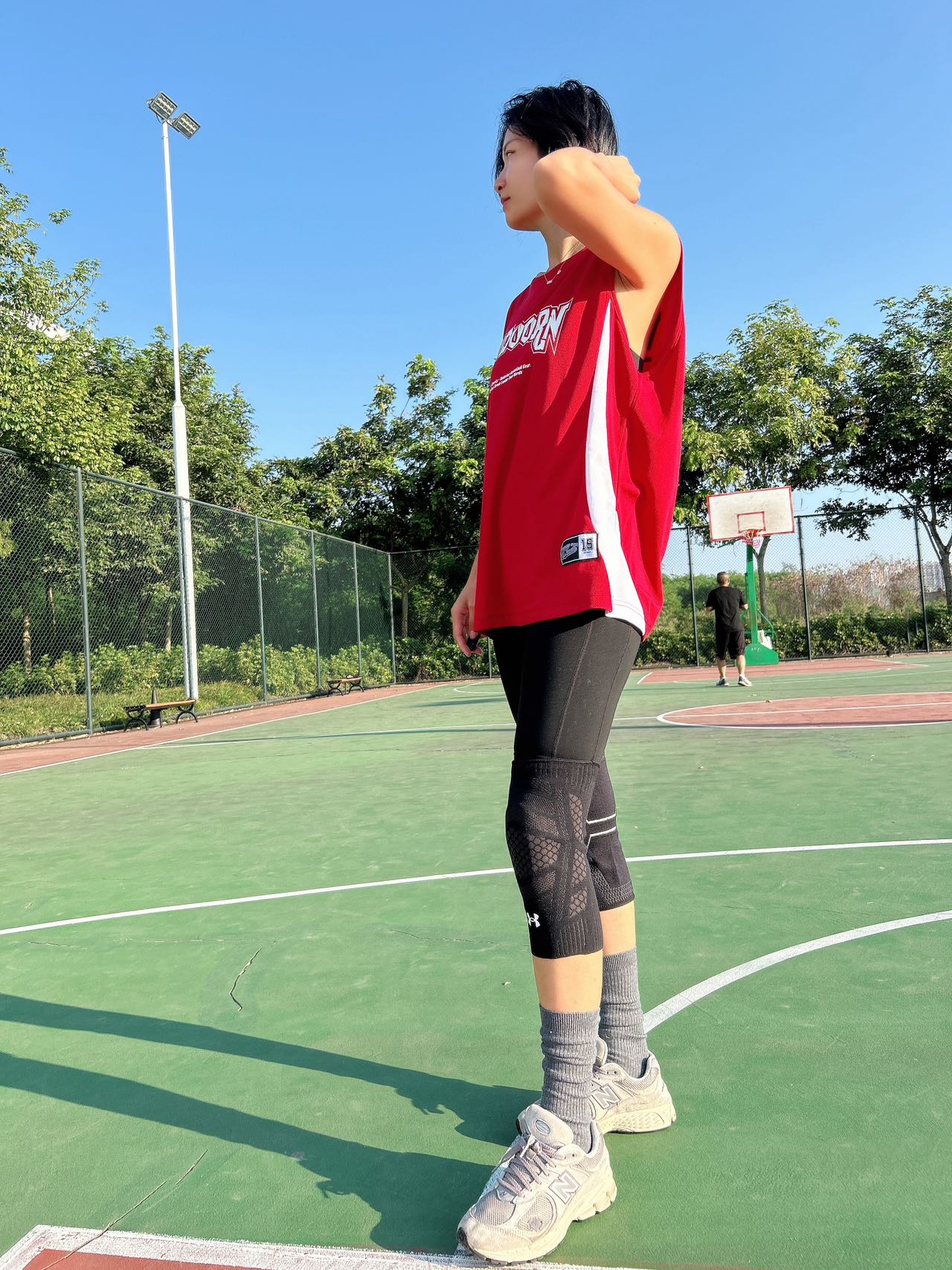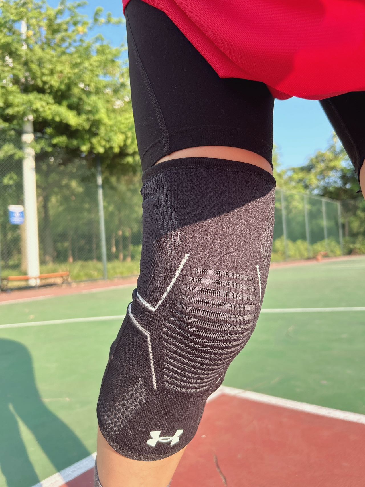 哈咯,老铁们 今天出门打酱油啦哈哈 秋天户外锻炼老舒适了 吹的风也是凉凉的 今天打球⛹🏻♀️分享一下安德玛的护膝 经常运动少不了辅助装备 这款护膝扎实 弹性紧而不勒 戴上也舒适不会勒肉 有防滑带 跑跳过程也不会滑落 面料也是吸汗透气的 整体戴上舒适度不错 经常运动的铁们可以试试看哈