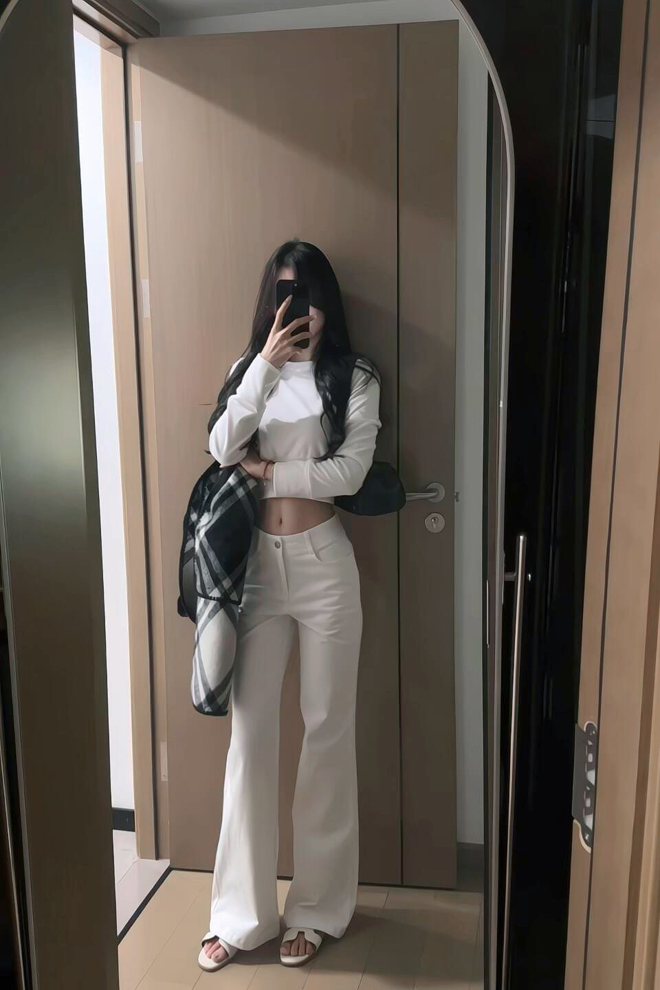 这几套是我最近的心头好,都是基础款组合,但穿出门被问了好几次链接,简单又耐看! ✨ 两套核心搭配思路 1. 纯白辣妹风 • 上衣:蕾丝/纽扣设计的白色长袖,修身版型刚好露出腰线,自带小性感。 • 下装:白色微喇长裤,垂坠感拉满,视觉上直接把腿长延伸到脚踝,梨形身材也能穿出笔直腿型。 • 搭配亮点:全白配色干净又显气质,外搭格纹衬衫就能增加层次感,通勤约会都适配。 2. 松弛复古风 •...
