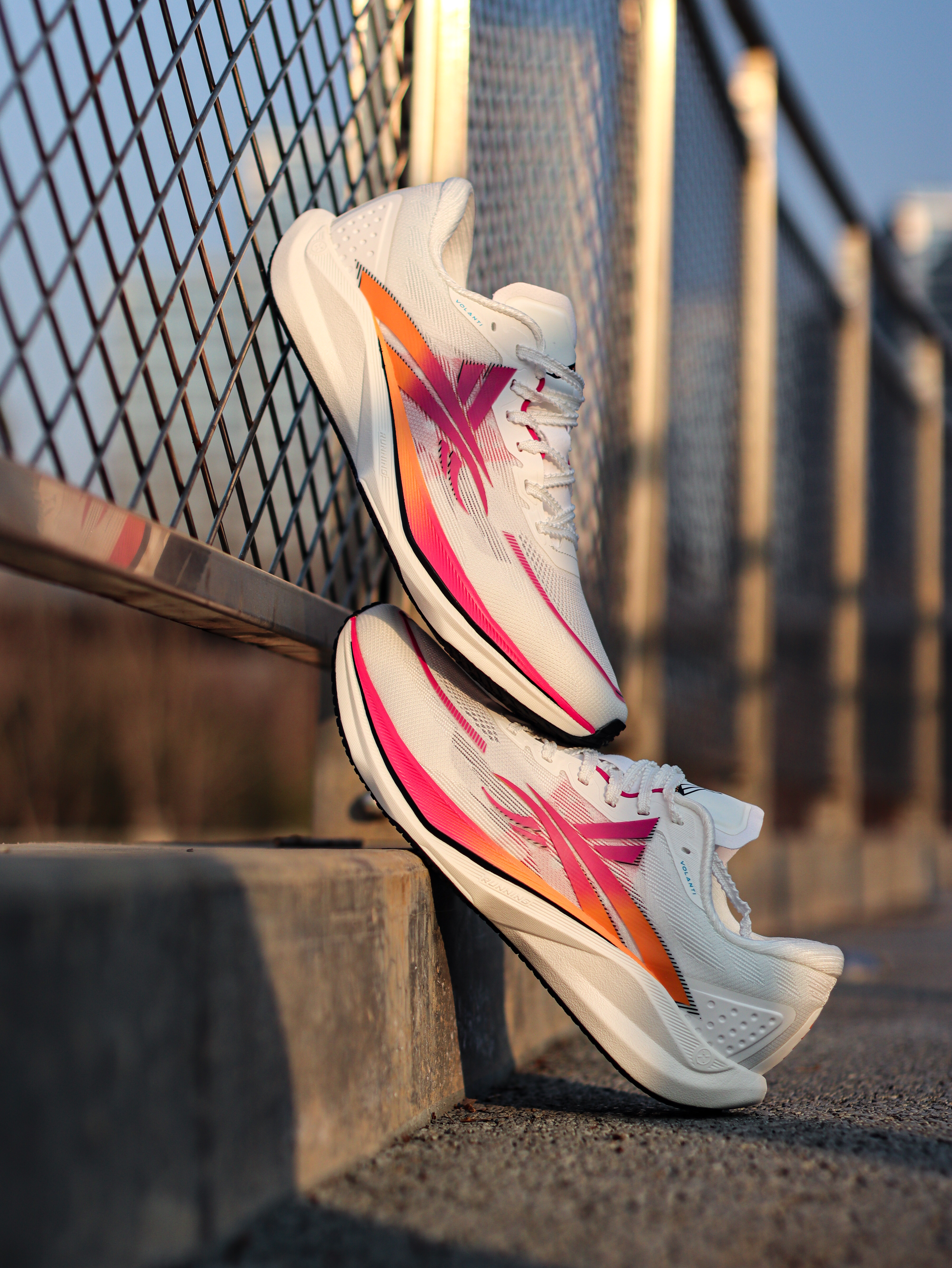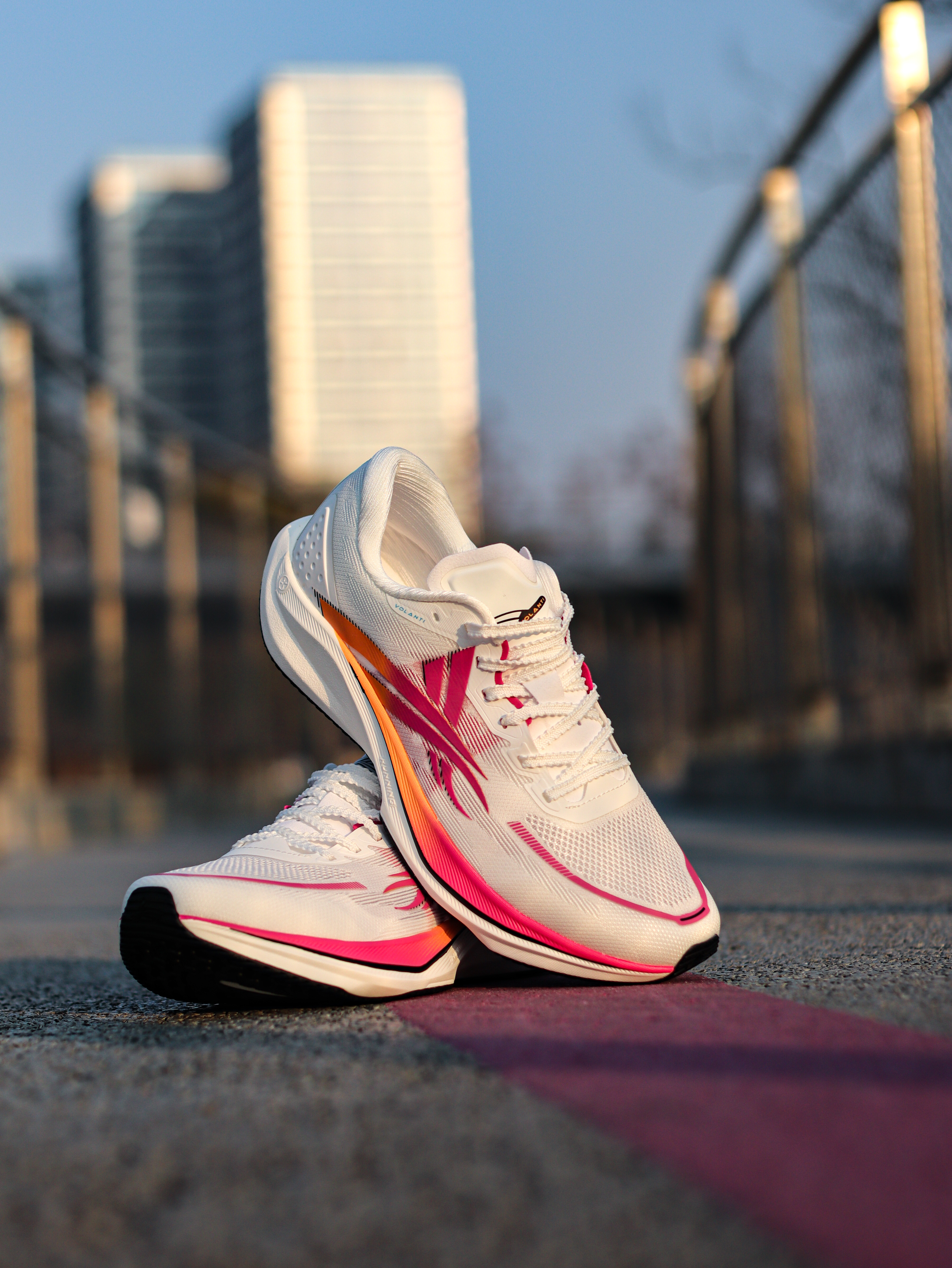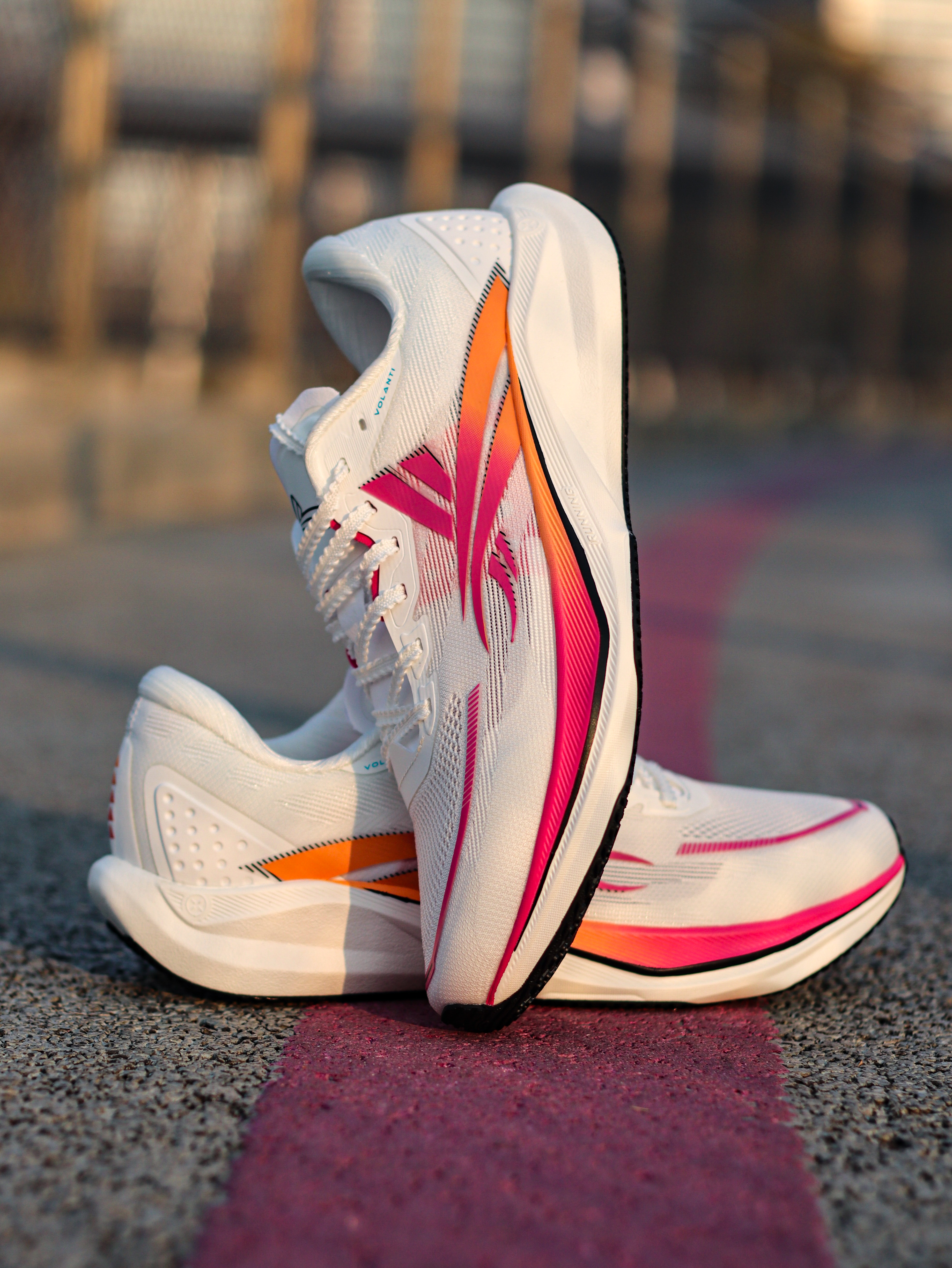 不得不说,沃兰迪“梦幻超氢”这个喜马拉雅配色颜值有点高啊!白色鞋身干净百搭,logo和中底一抹粉橘渐变色点缀,这氛围感你说梦幻不梦幻?!整体鞋型也是很干脆利落的感觉,很有速度感~ 这双鞋的厉害之处在于减重不减配,上脚第一感受就是轻!我这双40码单只才155克,跑起来跟没穿鞋似的,双脚完全没负担~ 中底是pebax超临界材质,回弹反馈特别快,再配上120D刚性的航天军工纯碳板,跑起来那种助推感真...