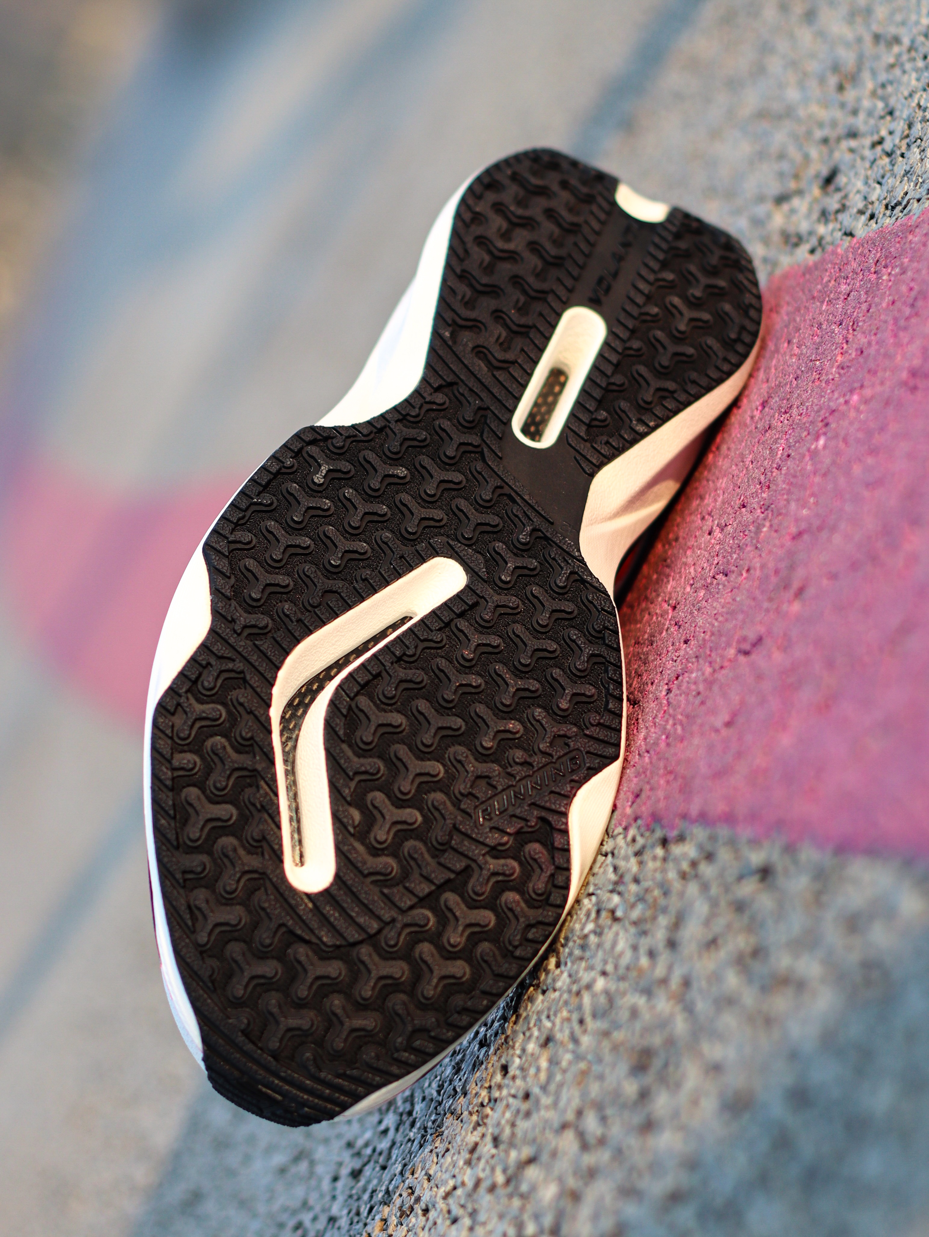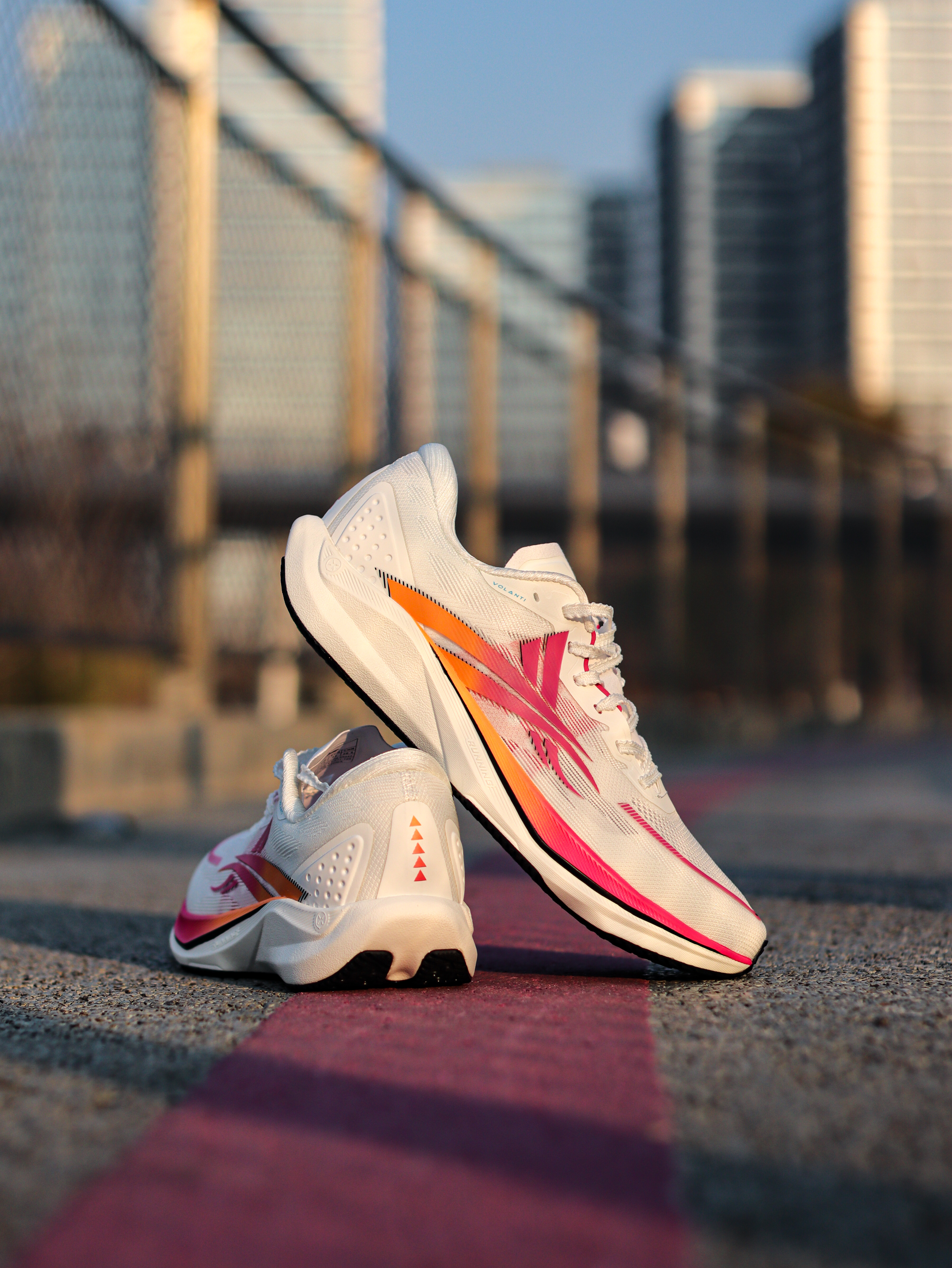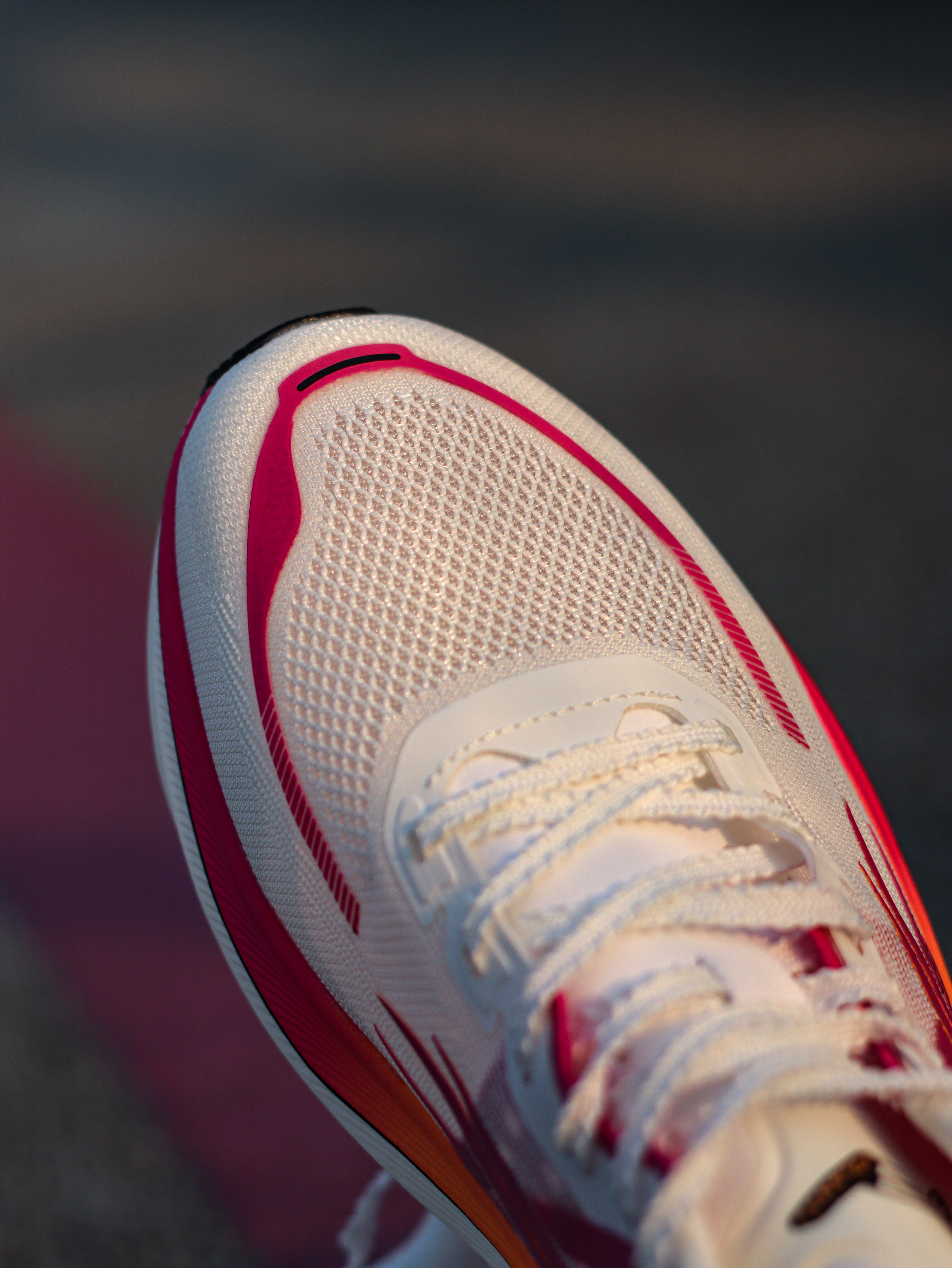 不得不说,沃兰迪“梦幻超氢”这个喜马拉雅配色颜值有点高啊!白色鞋身干净百搭,logo和中底一抹粉橘渐变色点缀,这氛围感你说梦幻不梦幻?!整体鞋型也是很干脆利落的感觉,很有速度感~ 这双鞋的厉害之处在于减重不减配,上脚第一感受就是轻!我这双40码单只才155克,跑起来跟没穿鞋似的,双脚完全没负担~ 中底是pebax超临界材质,回弹反馈特别快,再配上120D刚性的航天军工纯碳板,跑起来那种助推感真...