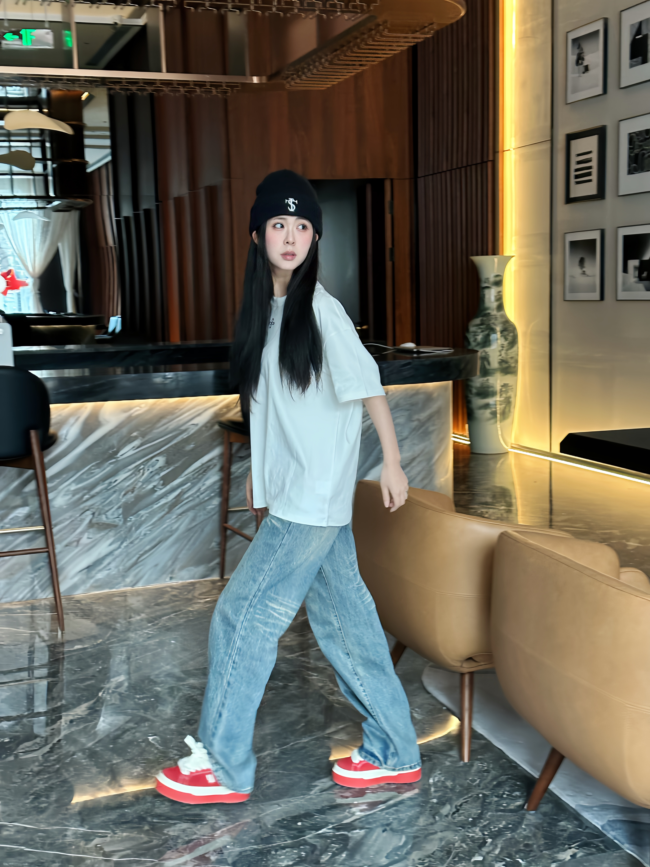 开春出门不知道穿什么? 直接套这套就对了! 重磅白T面料挺括不易皱,垂坠感拉满 阔腿牛仔裤做旧水洗质感软fufu的,对腿型超包容 脚上的红色威米板鞋是点睛之笔 搭配冷帽氛围感直接拉满 懒人也能穿出松弛时髦感~