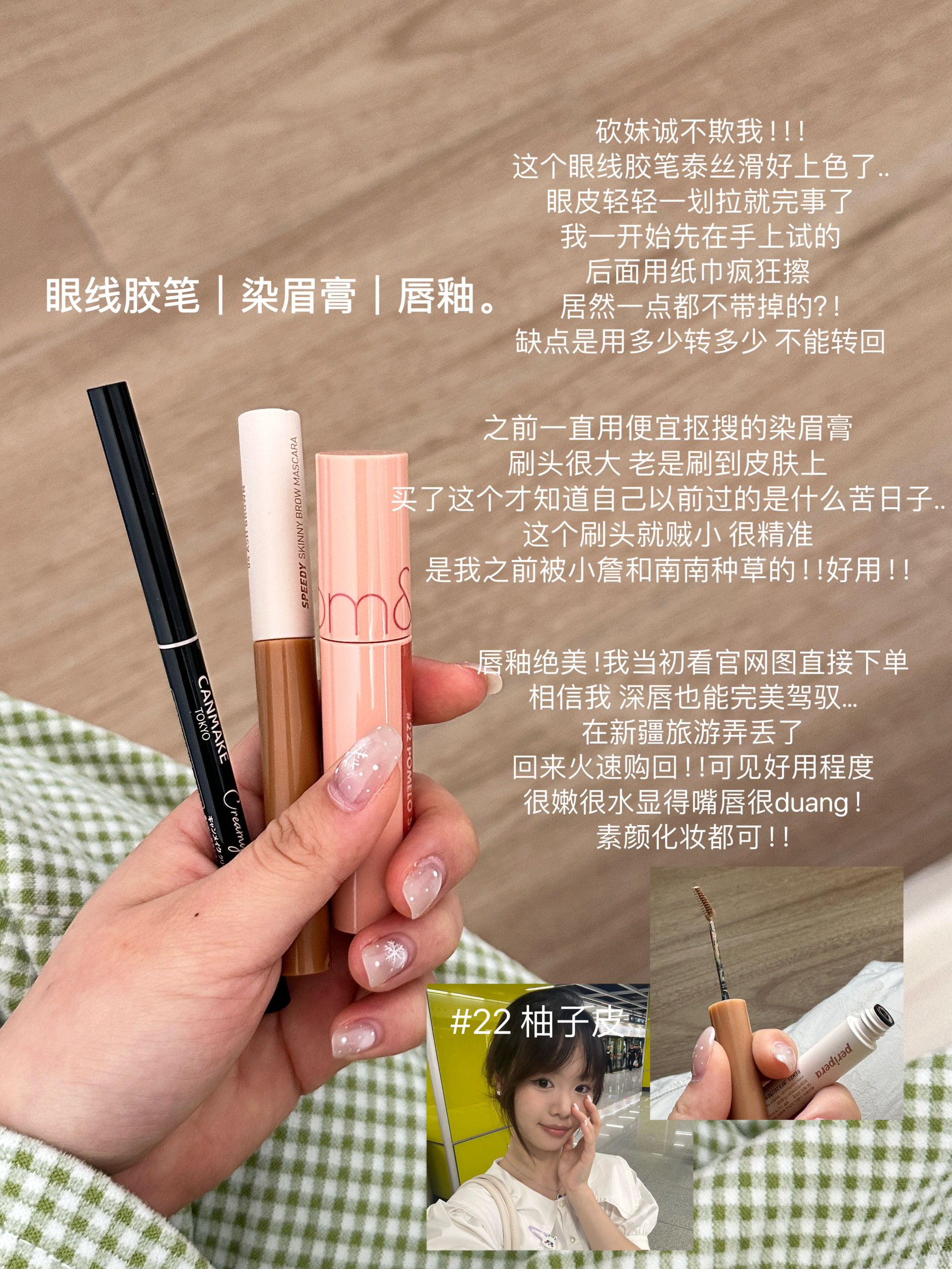 本篇笔记关联了CANMAKE/井田 极细防水眼线胶笔 #01黑色、Peripera/菲丽菲拉 墨水立体染眉液染眉膏 3g 04浅棕色等商品,为用户提供真实的使用体验和购买参考。
