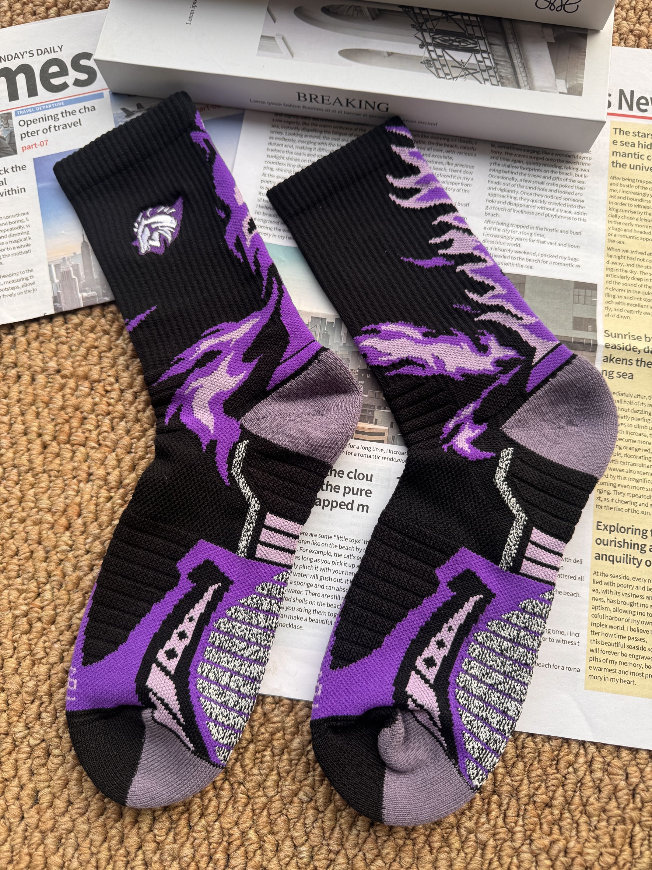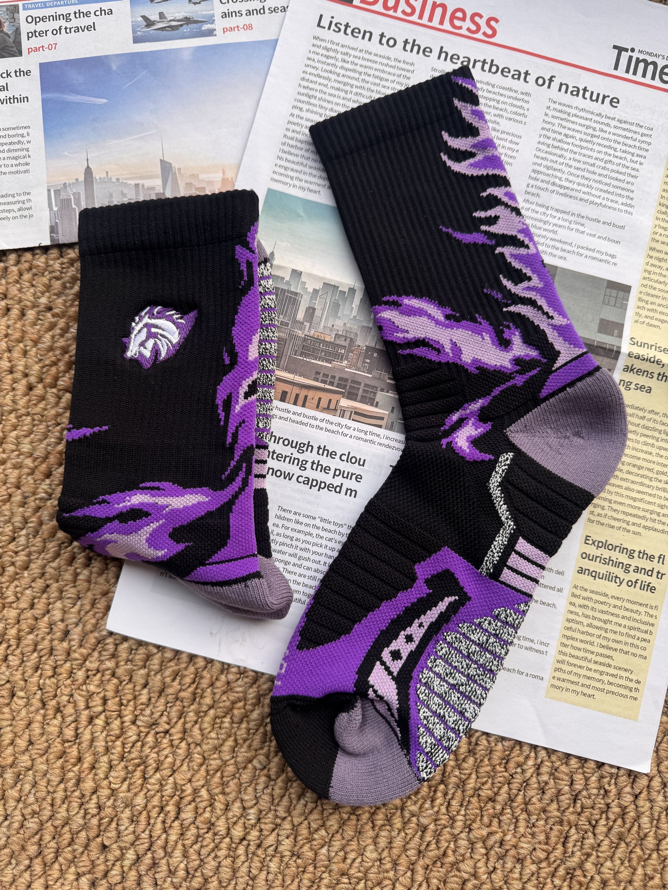 维动这双驹系列限定运动袜真的长在我心巴上! 黑紫配色超帅的,马纹刺绣细节拉满。 毛巾底缓震又吸汗,跑步打球都不滑, 日常搭老爹鞋也巨潮 本命年和运动党直接锁死, 穿上它,新的一年 “马” 上开挂