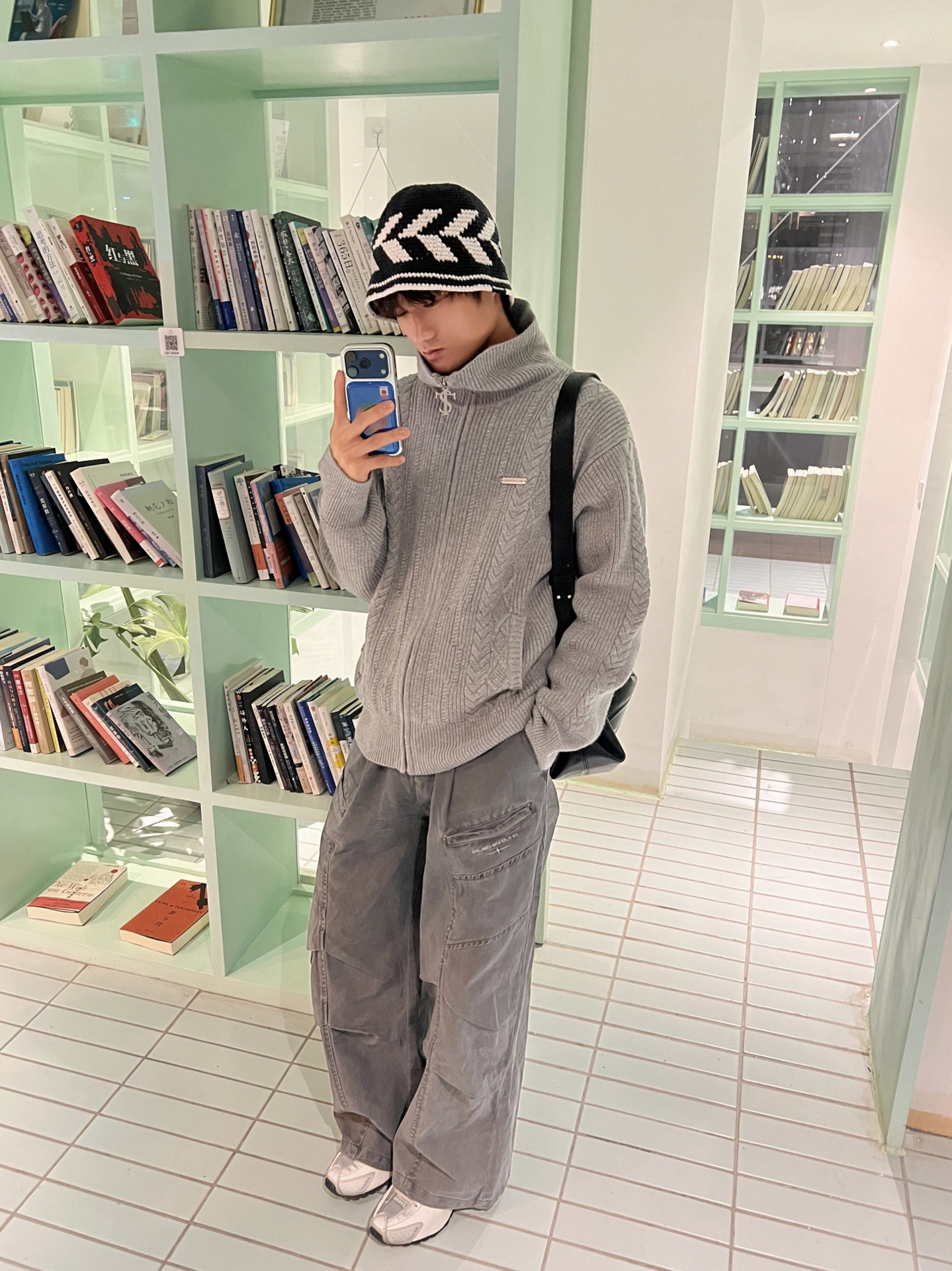 今日份OOTD是灰调松弛感~ 拉链毛衣真的太好穿了,暖和又能凹造型hhh 绞花纹理自带复古感,配阔腿裤慵懒感直接拉满 躲在合柴1912的一间书屋里 拍了些不用怎么p的照片📸 #基础款拿捏冬季穿搭 #松弛慵懒感穿搭毛衣 #秋冬的松弛感是毛衣给的