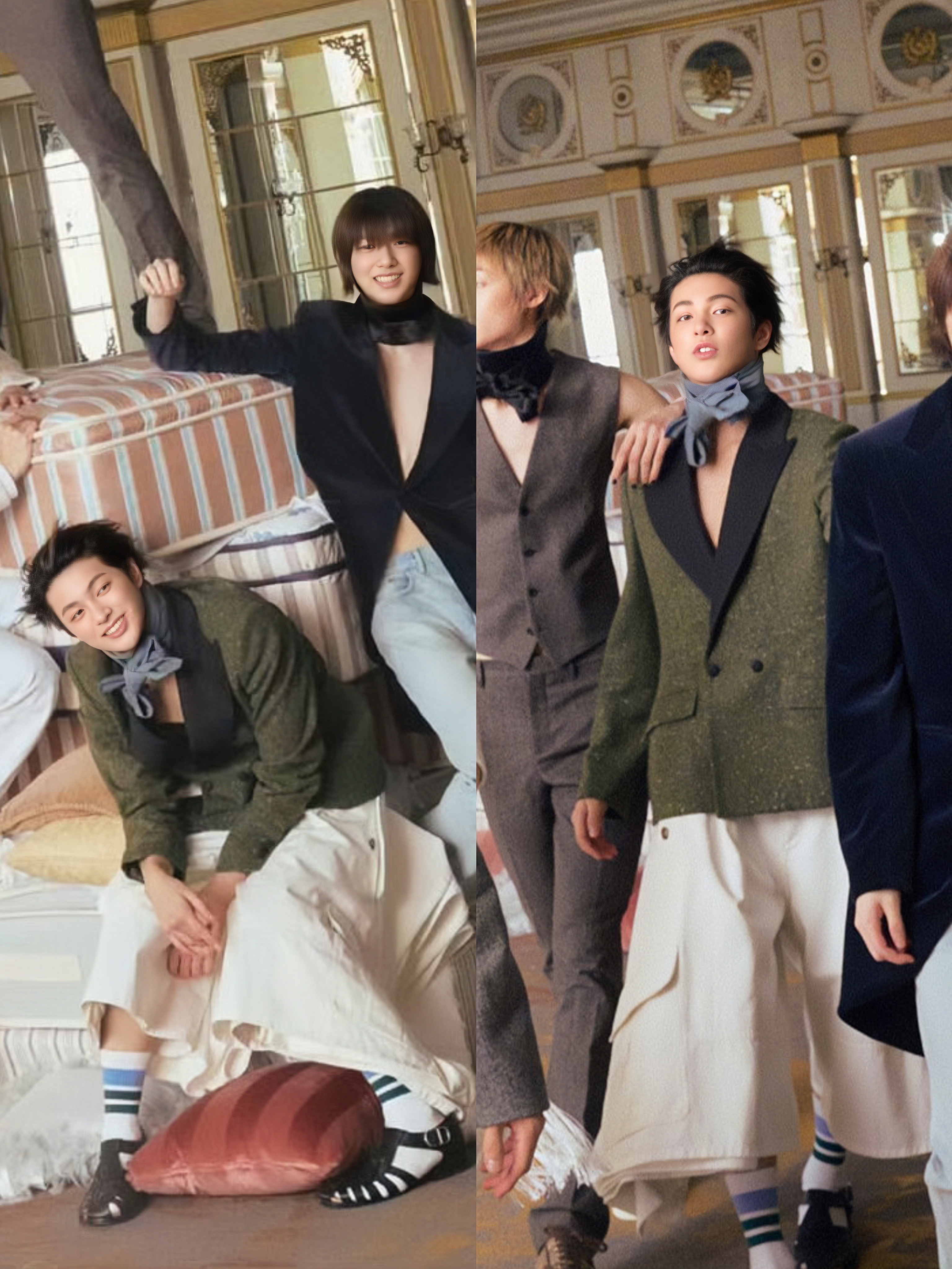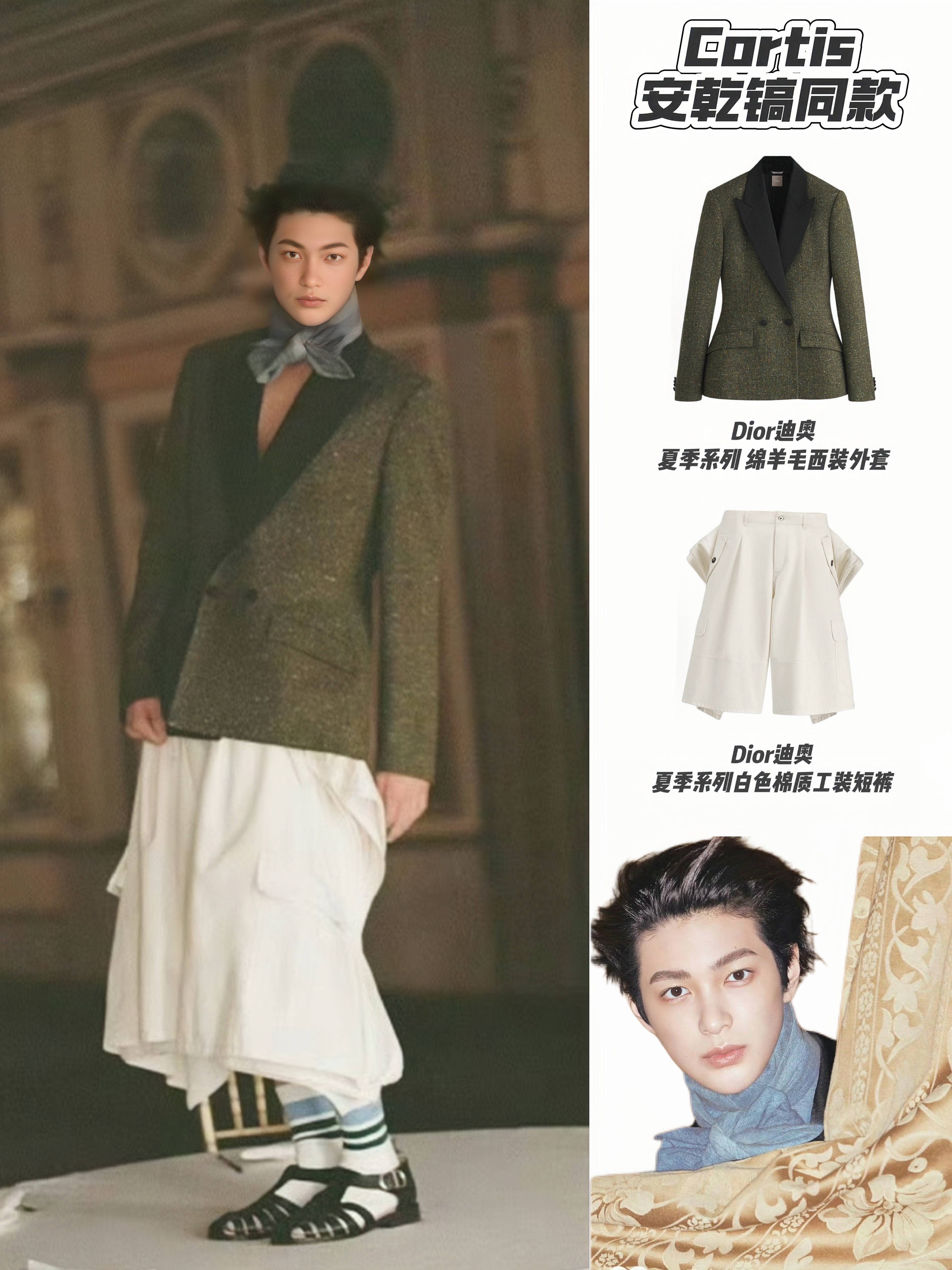 Cortis在GQ的这套造型真的非常具有先锋美学🤎 Dior深绿绵羊毛西装自带复古肌理,撞色缎面领增添贵气感,搭配白色棉质工装短裤,在精致中注入随性层次。整体造型既有画报般的复古氛围,又不失先锋时髦感。