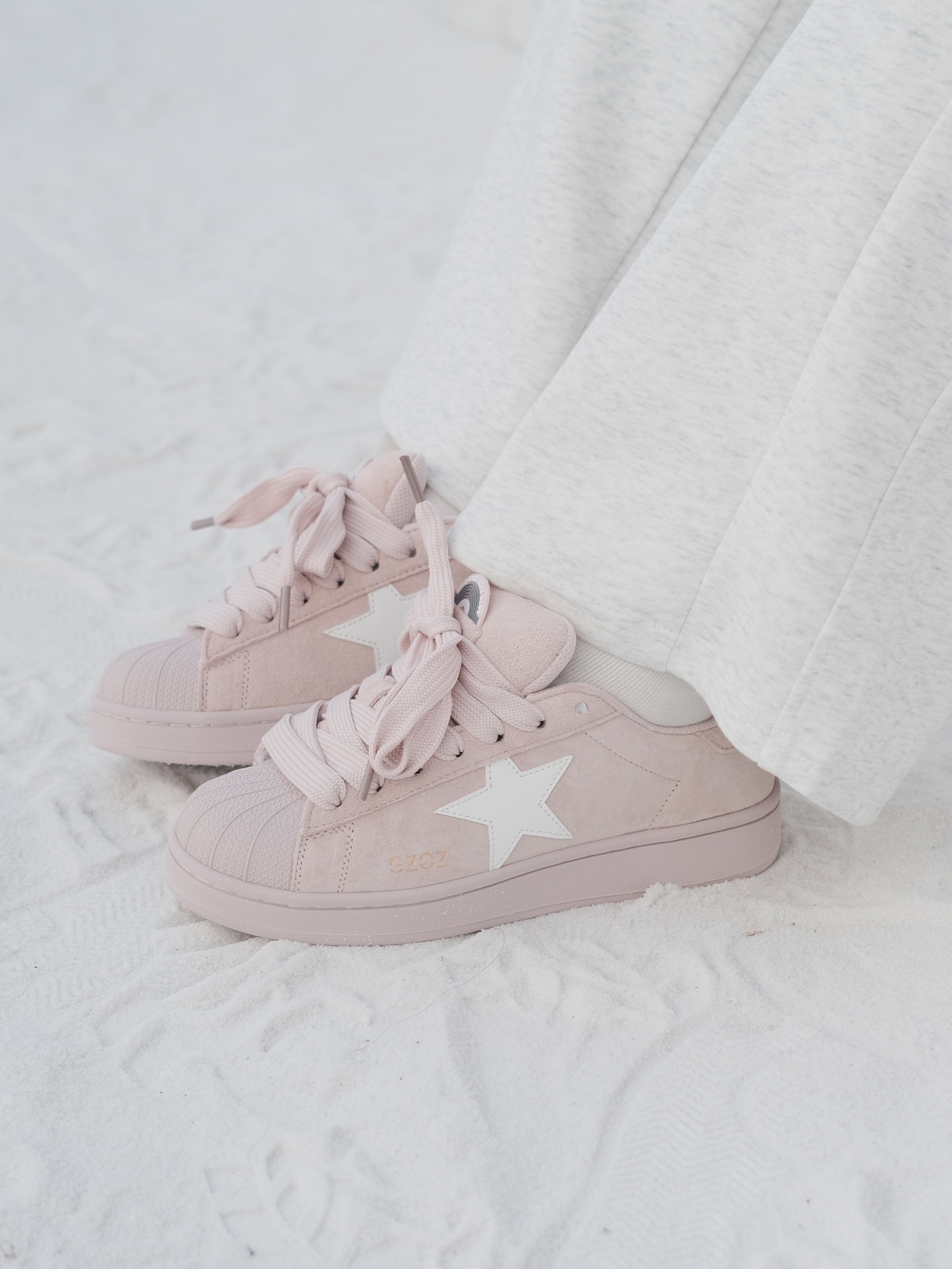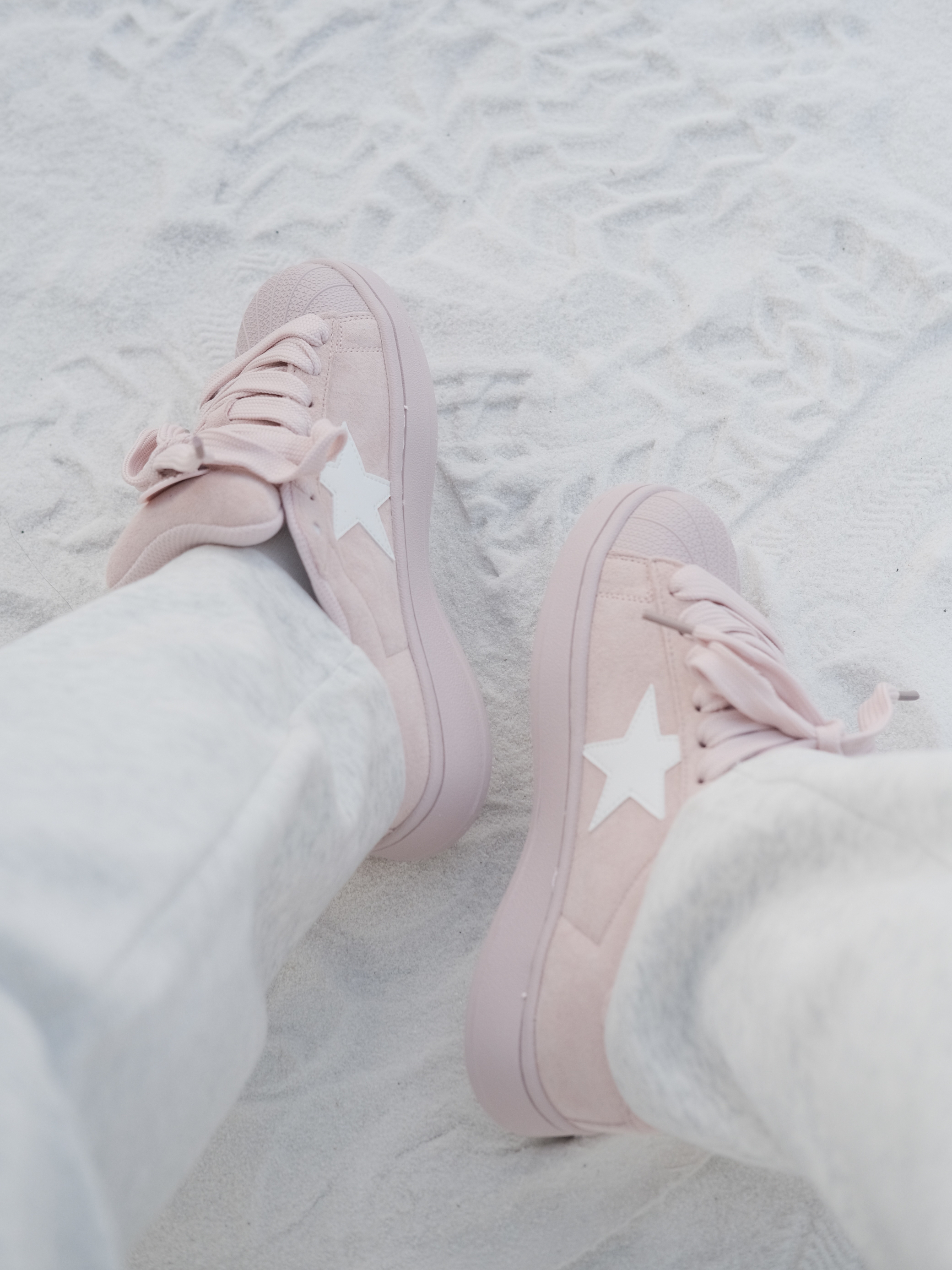 给冬天来点粉色吧 今天穿的毛衣搭配小粉鞋 是淡粉色感觉奶呼呼的 星星图案搭配加粗鞋带 有种日常休闲的可爱感 走路轻便又舒服