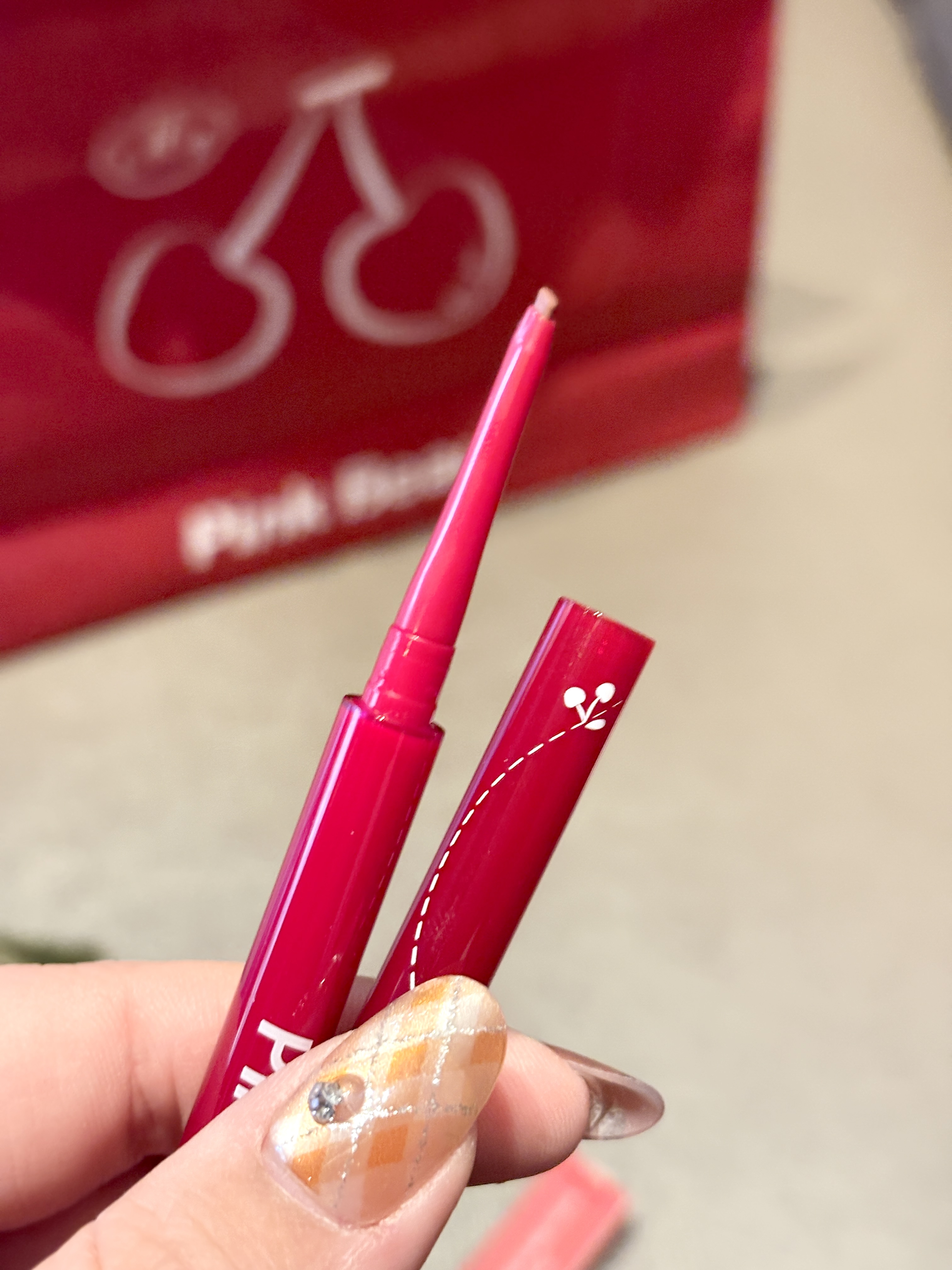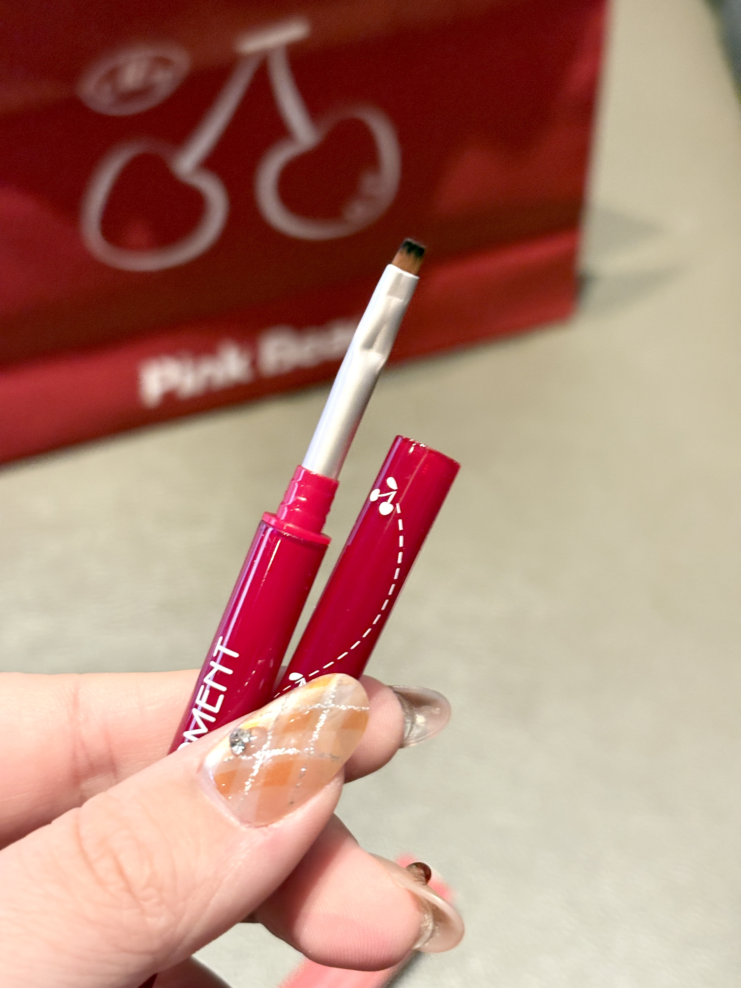 Pink Bear樱桃限定这支双头眼线胶笔我直接锁死 一头是极细笔尖,另一头是刀锋刷 一笔就能画出妈生感眼线 胶笔质地丝滑到像在皮肤上滑行 完全不拉扯眼皮 新手也能轻松画出流畅的眼尾 显色度拉满还不晕染 带妆一天都没变成熊猫眼 刀锋刷用来晕染卧蚕也超自然 伪素颜和浓妆都能搭