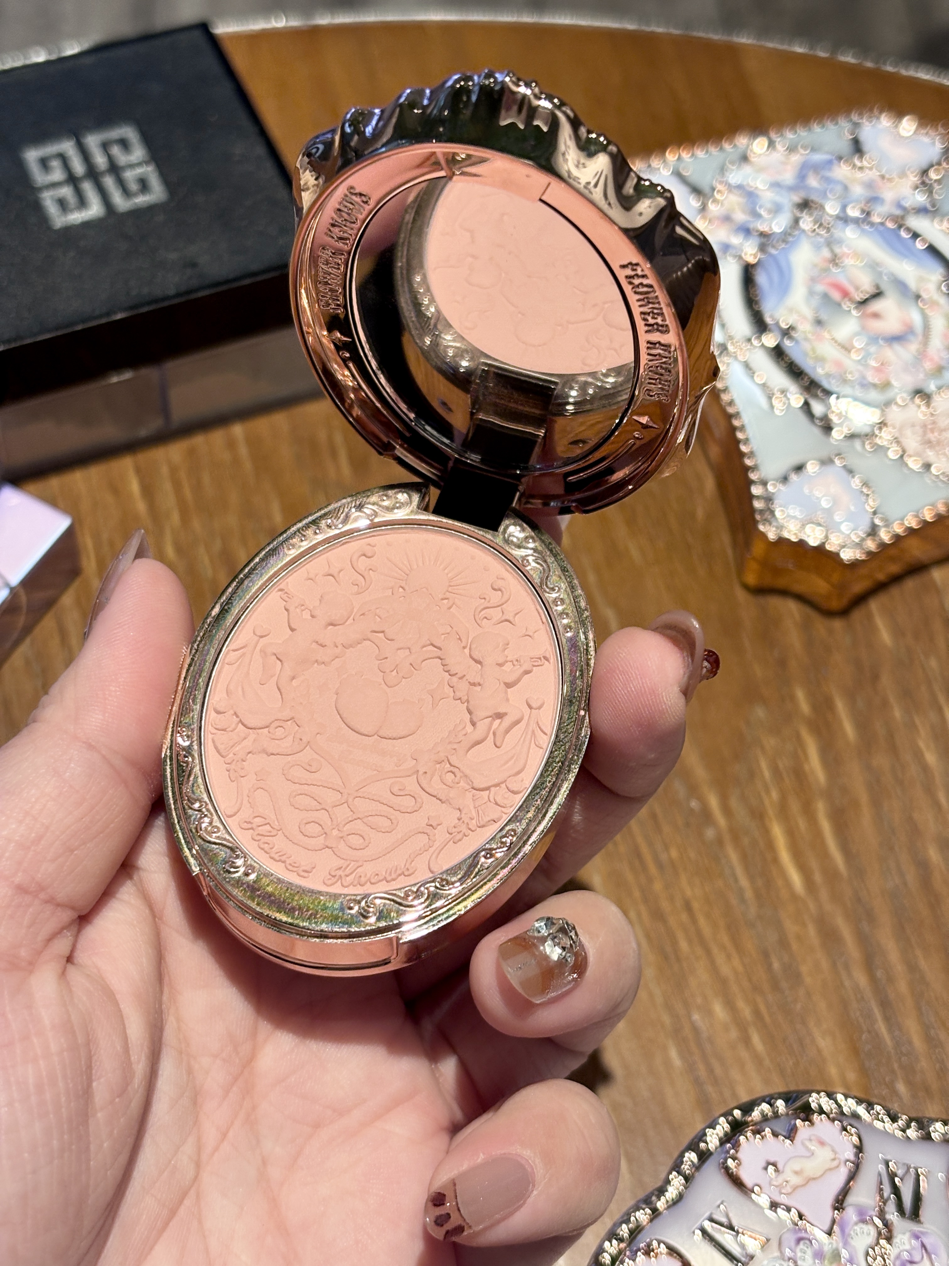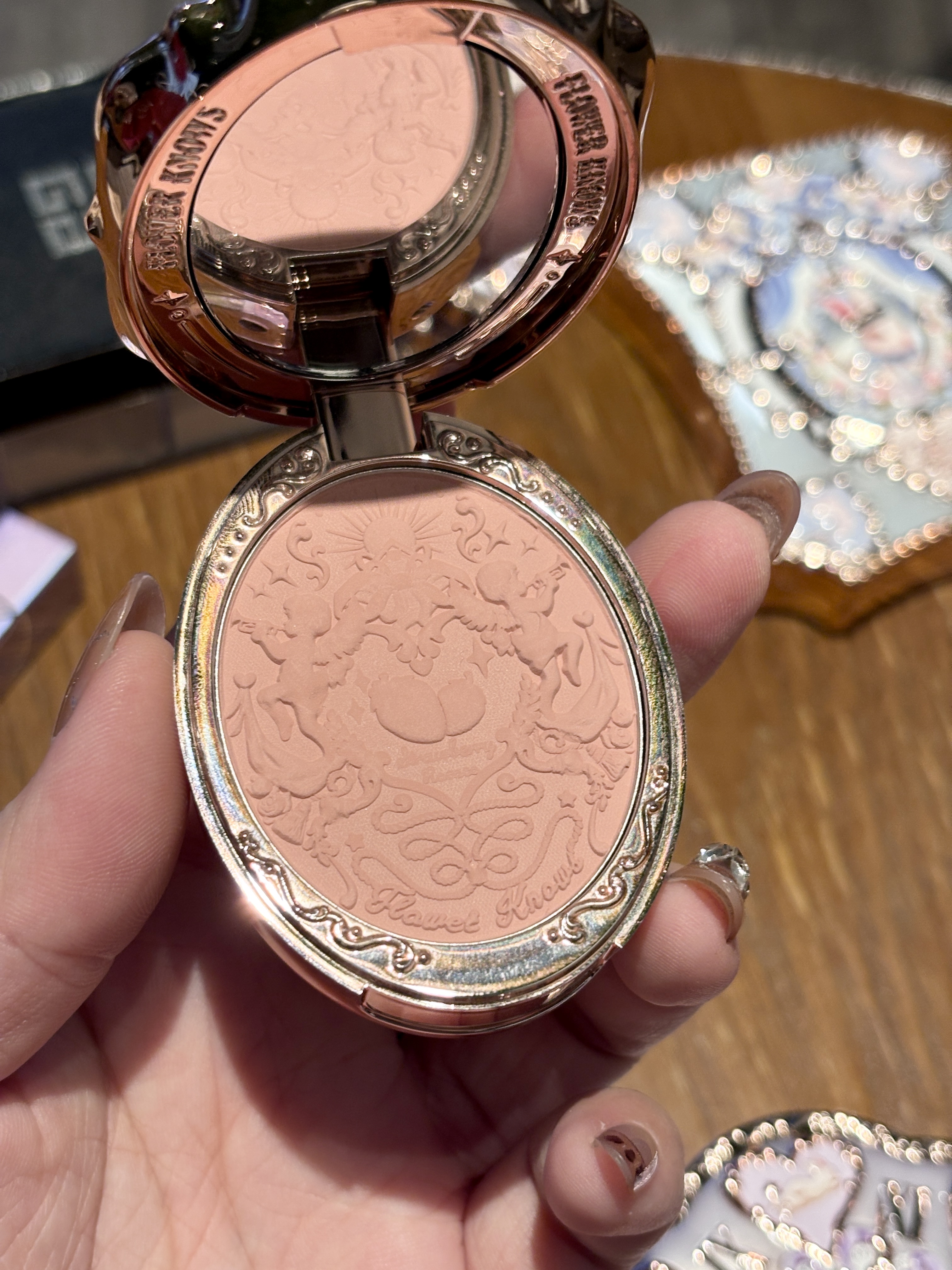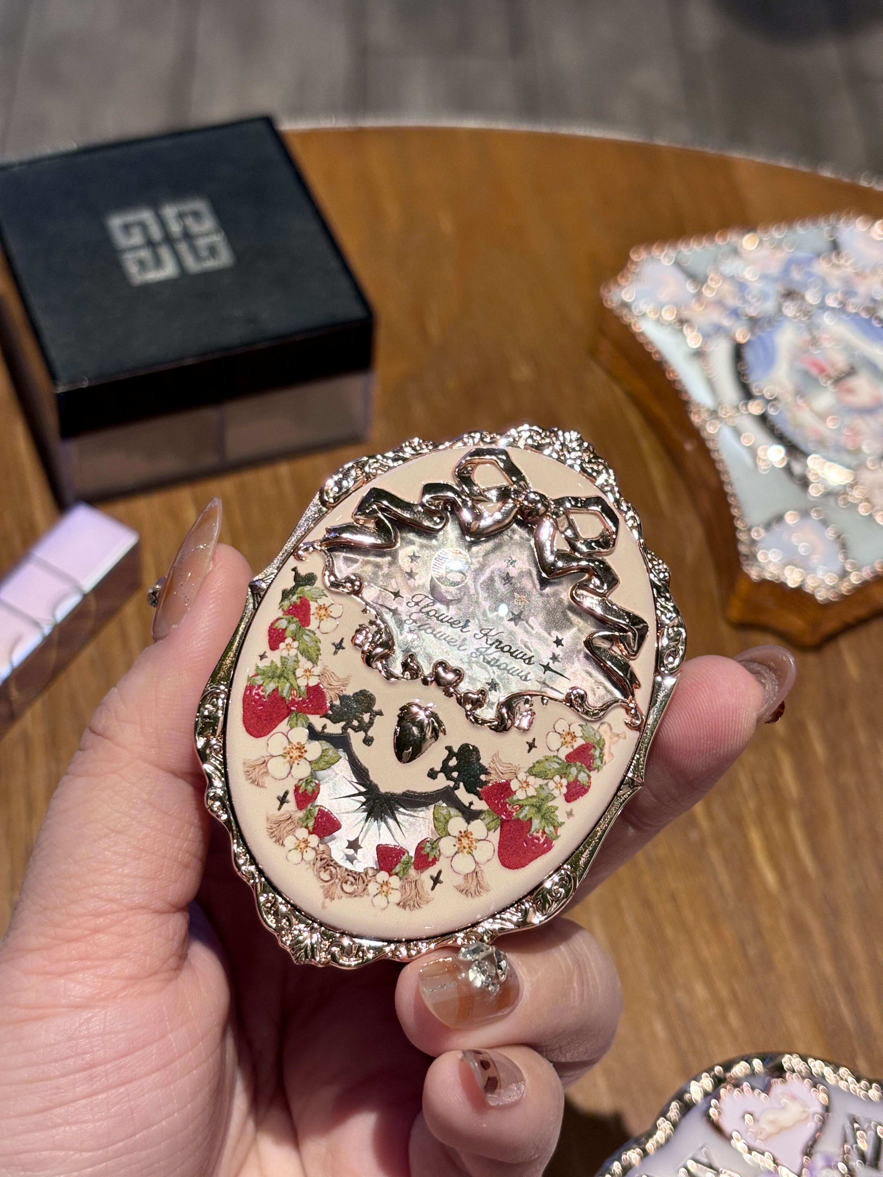 这个草莓系列腮红的外壳直接美到我心巴上 浮雕花纹+草莓印花 拿在手上像艺术品 这块是低饱和的杏粉色 上脸巨温柔 像皮肤里透出来的好气色 黄皮涂也完全不踩雷 粉质细腻到像云朵 轻轻扫一层就很显色 叠涂也不会显脏 日常妆容就靠它提气色啦