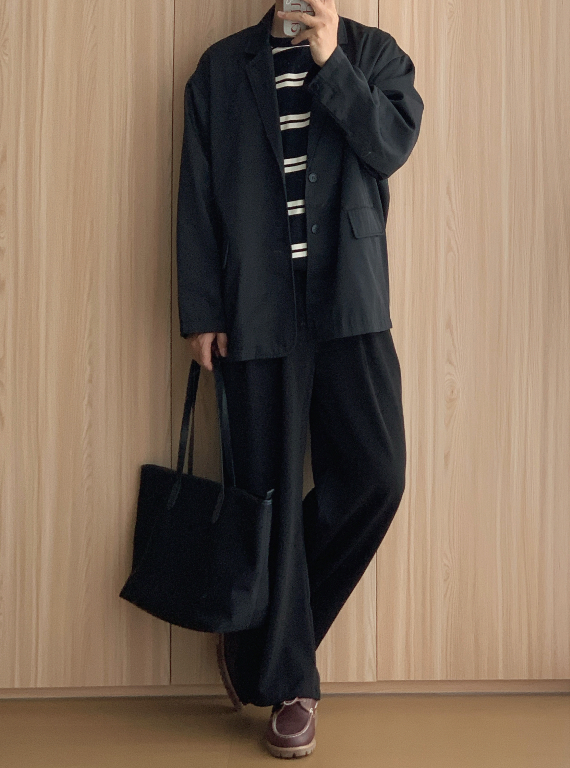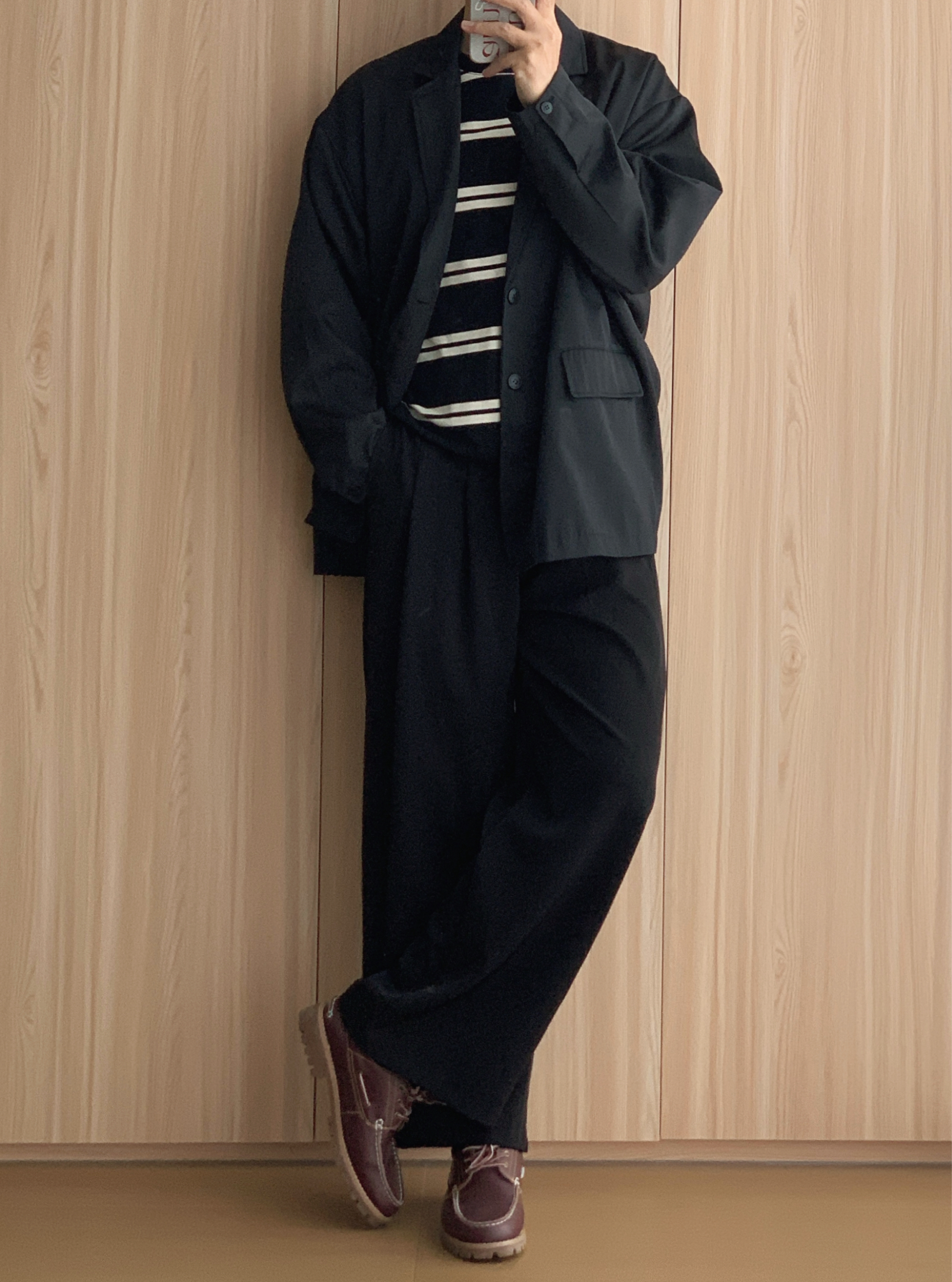 🤳🏻OOTD 👨🏻💻175cm | 70kg | 42码 ▪️酒红色鸭舌帽 ▪️条纹卫衣内搭 ▪️黑色廓形西装 ▪️黑色阔腿西裤 ▪️#timberland 帆船鞋 ▪️黑色托特包 🙅🏻♂️个人观点,不喜勿喷,欢迎指点🙏🏻