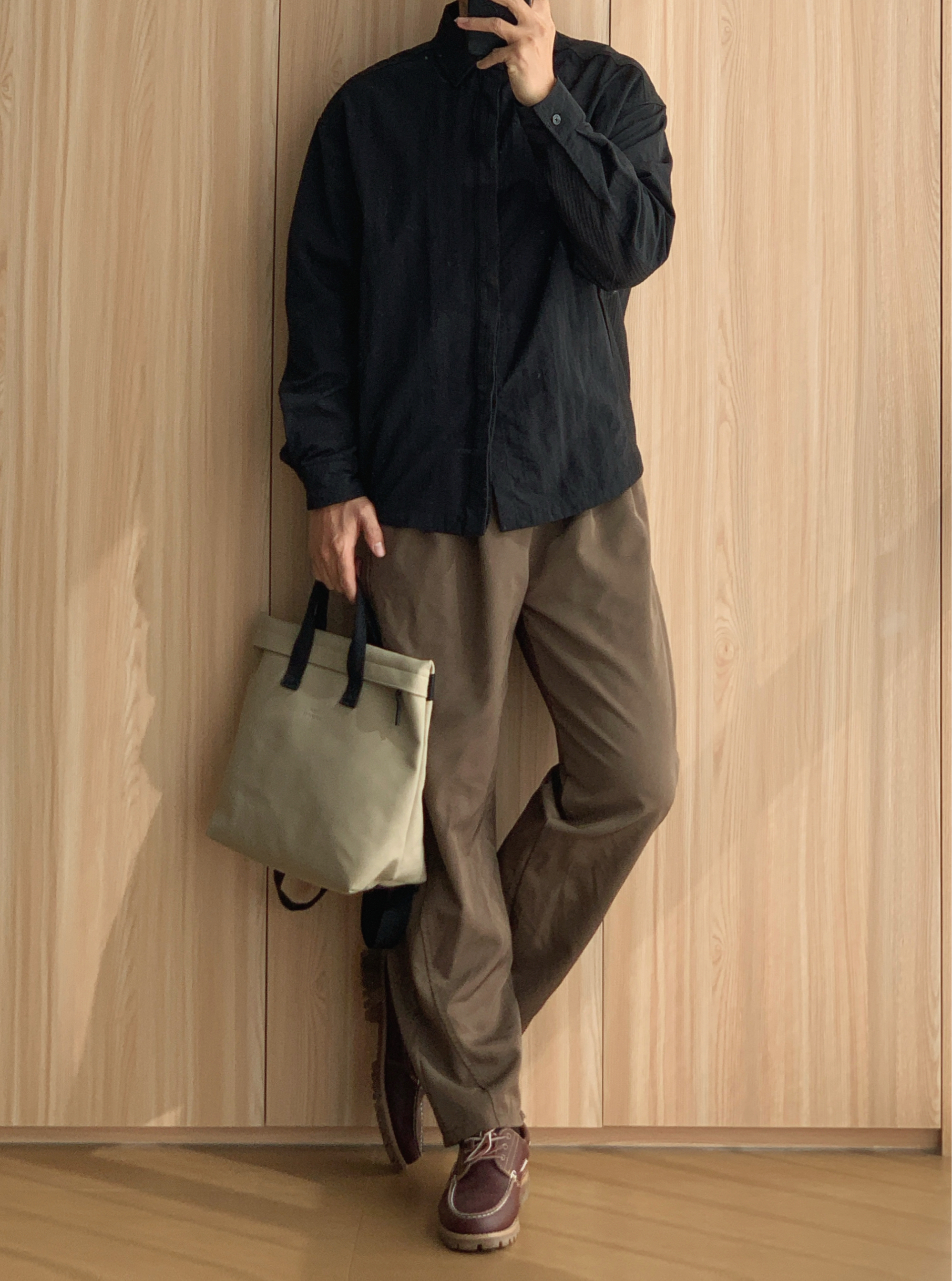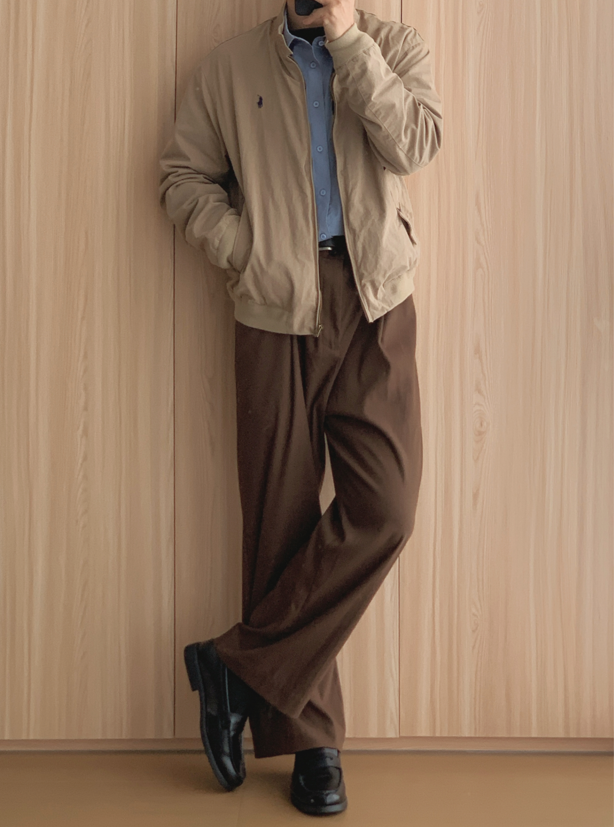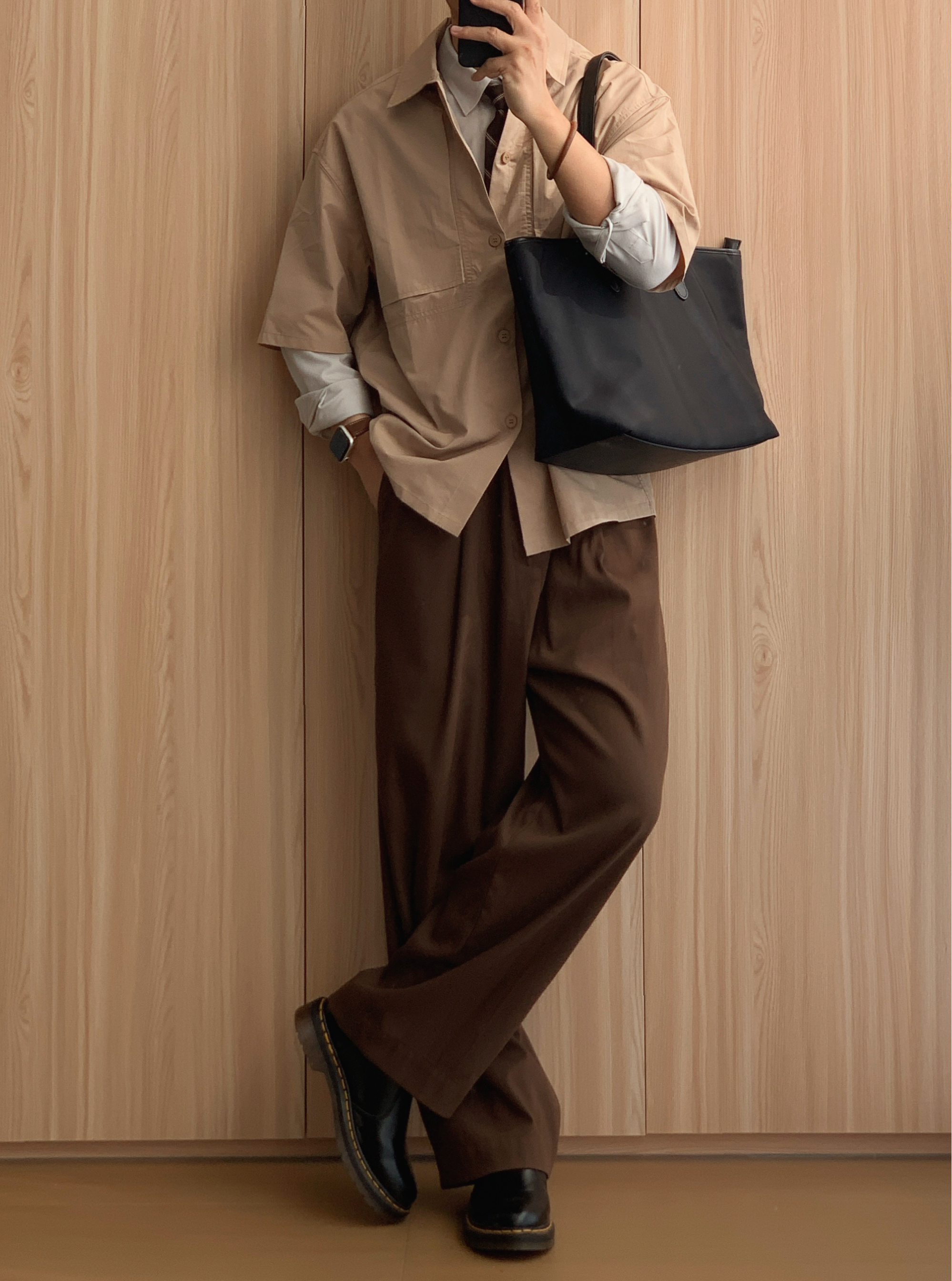 🫘今天就浅浅交个美拉德作业吧✏️ ▪️LOOK1 老钱风 浅蓝衬衫叠穿卡其夹克 咖色阔腿西裤➕黑色乐福鞋 ▪️LOOK2 工装风 黑色工装衬衫 咖色直筒西裤➕帆船鞋 ▪️LOOK3 日系风 米色条纹衬衫叠穿牛仔外套 咖色阔腿西裤➕德训鞋 ▪️LOOK4 学院风 米色衬衫叠穿卡其衬衫 咖色阔腿西裤➕黑色切尔西靴