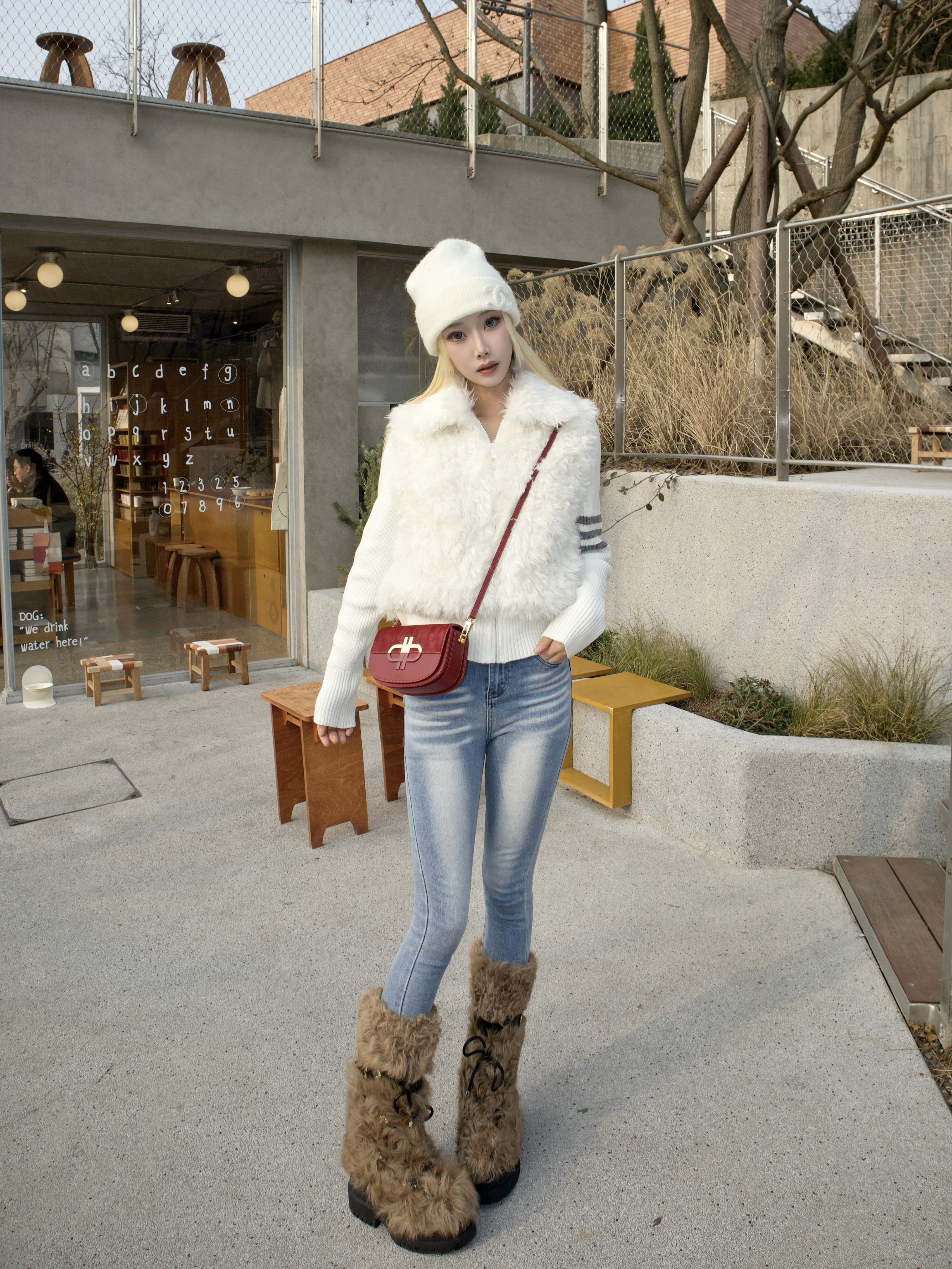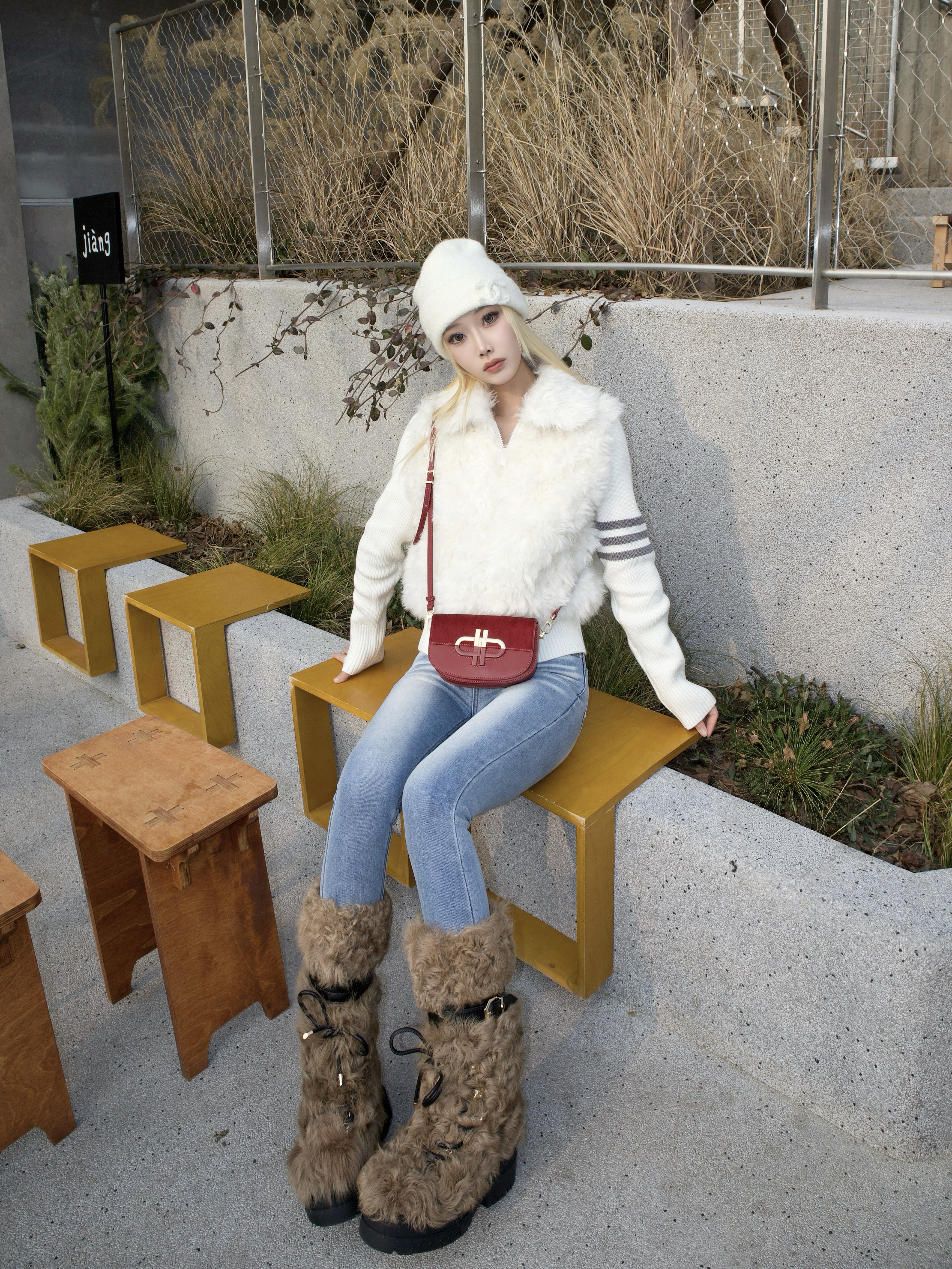 新年穿搭就要又暖又有氛围感! 这件米白羊羔毛马甲太实用了 设计挡风又利落拉链开合穿脱方便 🍬针织拼接软fufu的 单穿或内搭都好看~ 下装搭浅蓝修身牛仔裤 日常出门零思考✨ 白色针织帽一戴冬日氛围拉满 和这双棕色羊羔毛雪地靴锁死! 圆头设计可可爱爱粗跟悄悄增高 踩在雪地里像自带小火炉🔥 最绝的是这个红色马鞍包👜新年感直接点满! 牛皮质感高级 斜挎设计解放双手 一抹红色瞬间点亮全身 拜年装红包超...