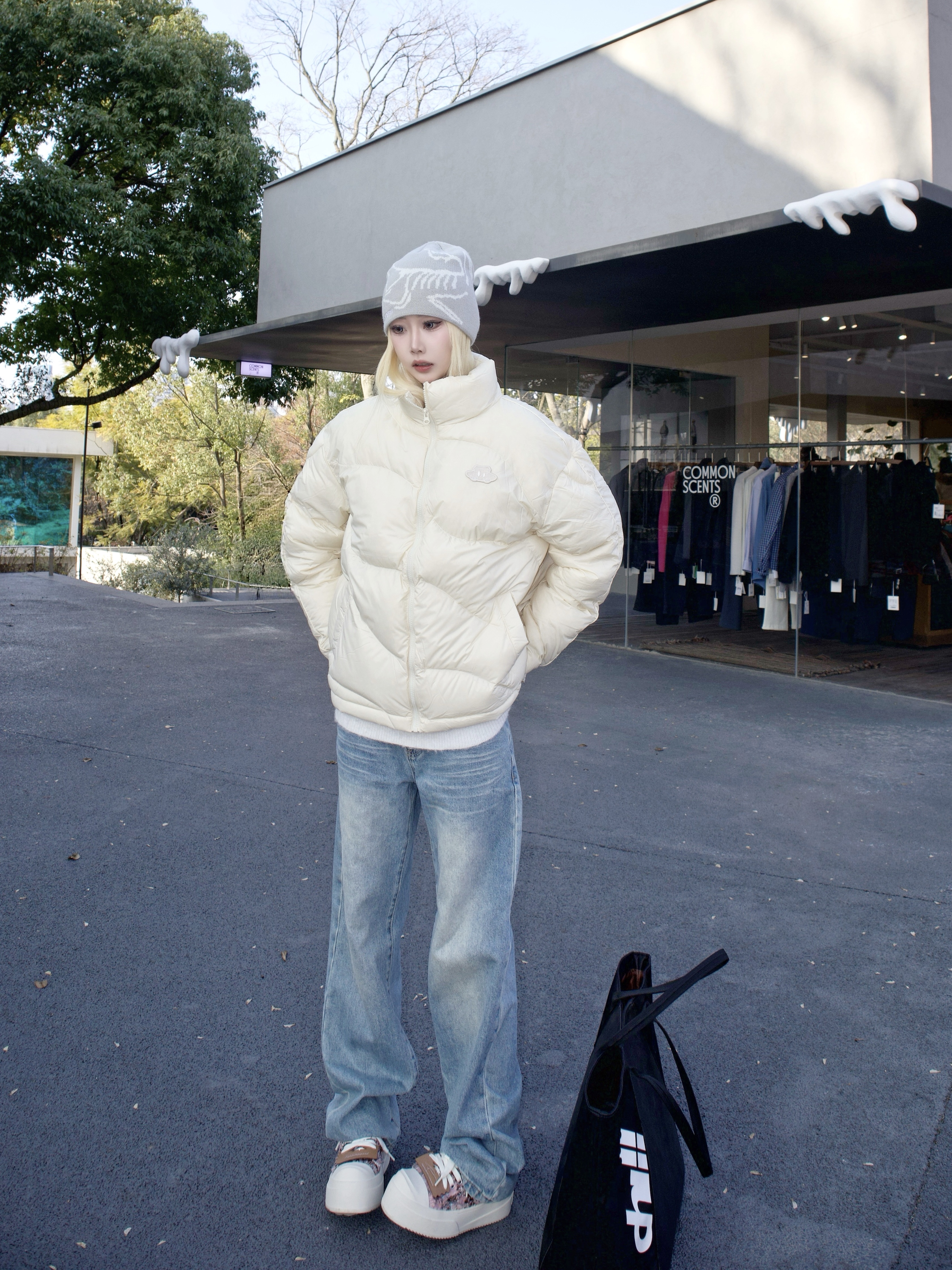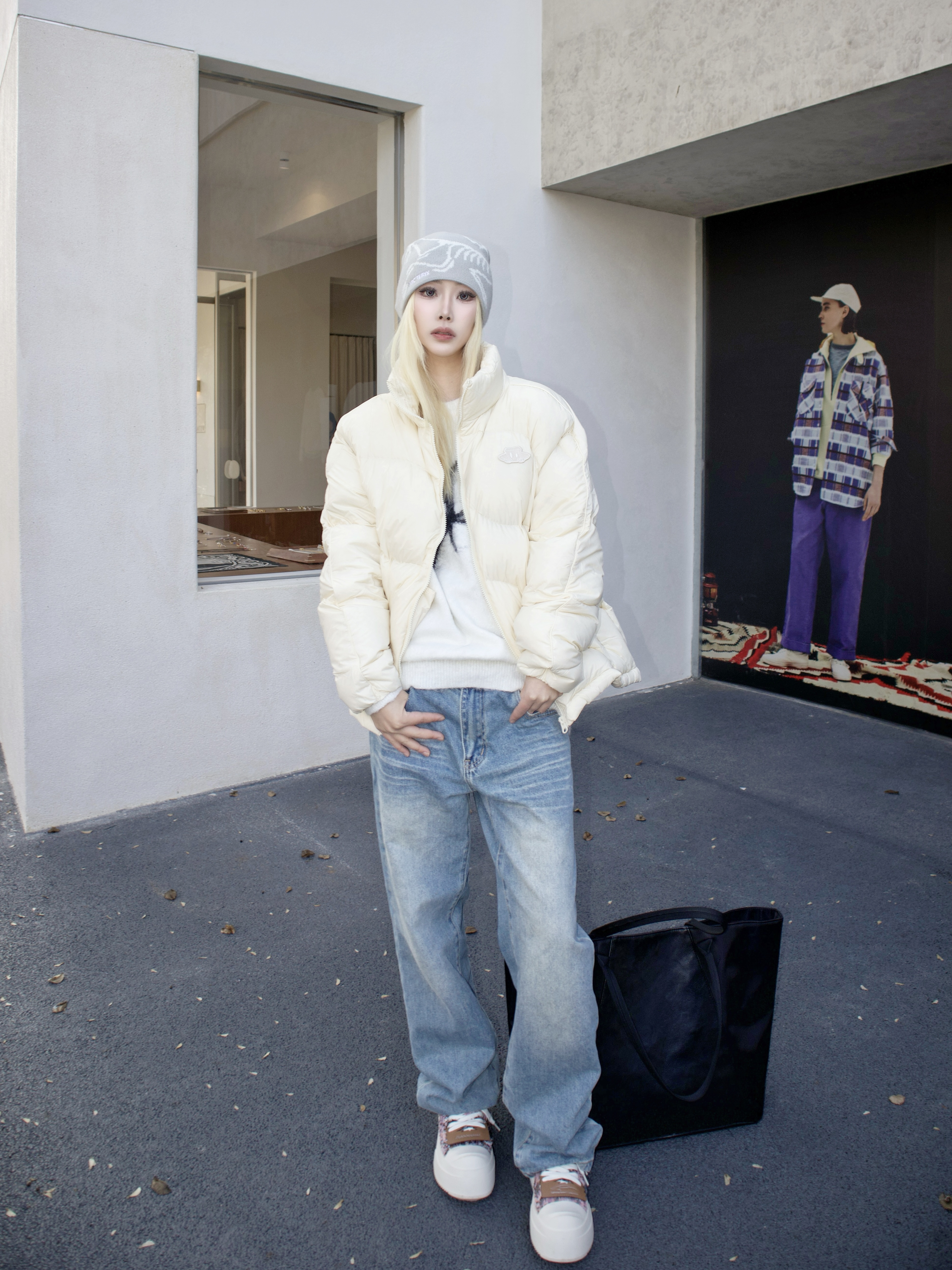 最近超爱这种温温柔柔的冬日穿搭! 🍮米黄云朵泡芙羽绒服软fufu的像甜品 立体绣标细节满分 90绒保暖不厚重 男女同款和对象当情侣装超甜~ 内搭白色针织毛衣不出错 软糯材质亲肤到不想脱 和米黄色配出暖暖的奶油感✨ 蓝色牛仔裤瞬间注入活力 日常出街零思考👖 粉色小香风板鞋 编织设计精致感拉满 厚底悄悄增高 粉色给整体加点甜度👟 灰针织帽➕黑托特包完美收尾 帽子保暖又增加层次 托特包容量大很实用...