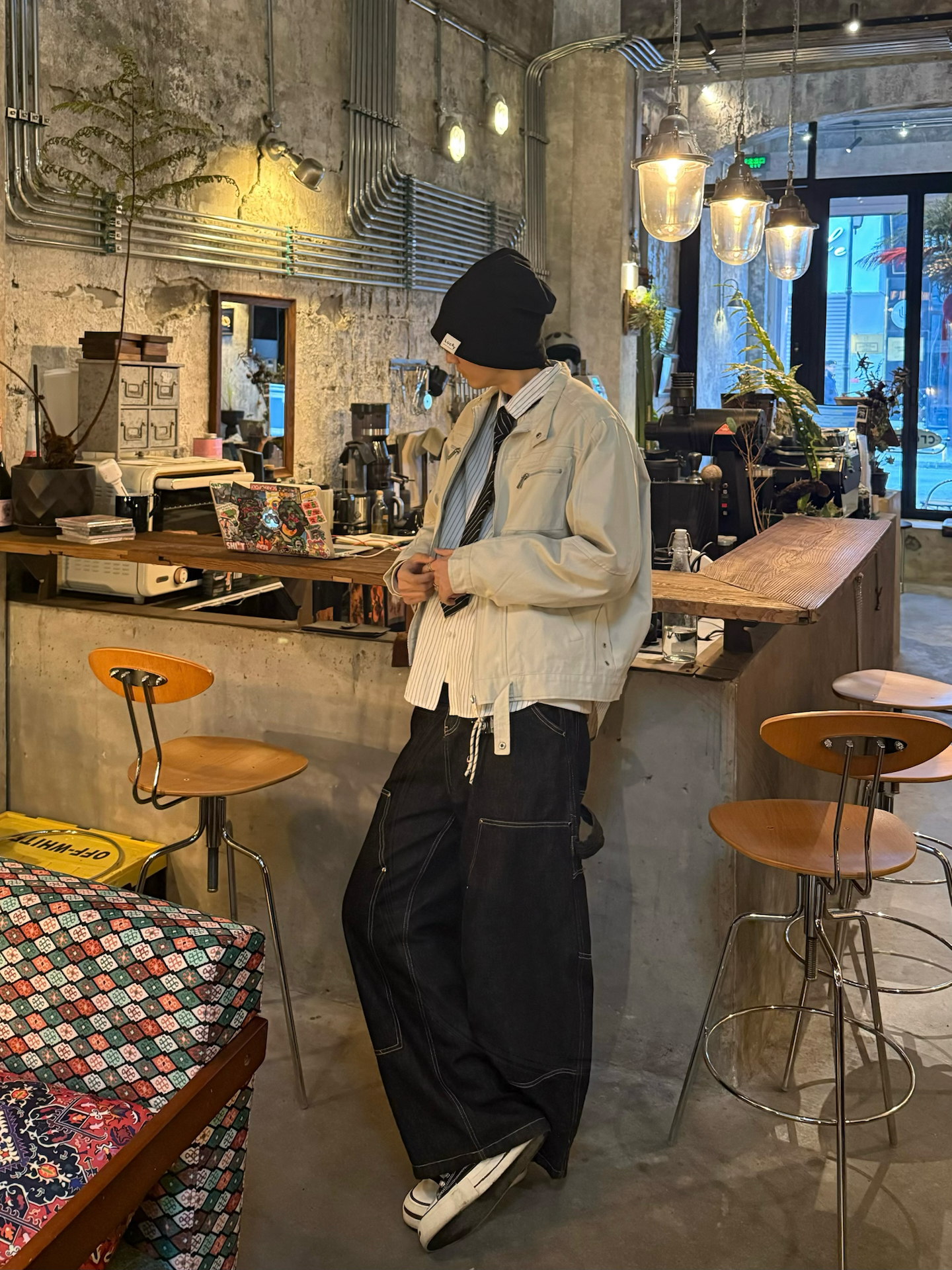 街头还是得有街头的调性✌🏻 今天穿了一身美式复古工装⬇️ 座山雕工装夹克搭配丹宁解构阔腿裤 松松垮垮 还带着点做旧质感✅ 搭配上高腰裤型 加上复古色调 你别说还有点Y2K复古那感觉🙋 鞋子搭了双Dunk 水墨配色挺有中国味 正好为冬天加点层次🆒 还是喜欢这种在街头的穿搭 随性又贴近生活 这种不张扬的穿搭 更符合生活的调调😌