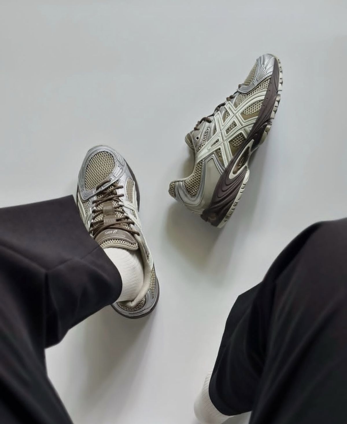 谁能拒绝一双自带复古滤镜的宝藏跑鞋? ASICS TR-Nexus 全新「Green Brown」配色,把大地色系的松弛感直接焊在鞋上。 网眼鞋面拼接做旧感的皮革框架,金属银细节点缀在鞋身线条里,复古又高级。 上脚就是慵懒随性的街头氛围感,搭配黑裤、白袜直接拿捏Cleanfit穿搭精髓。