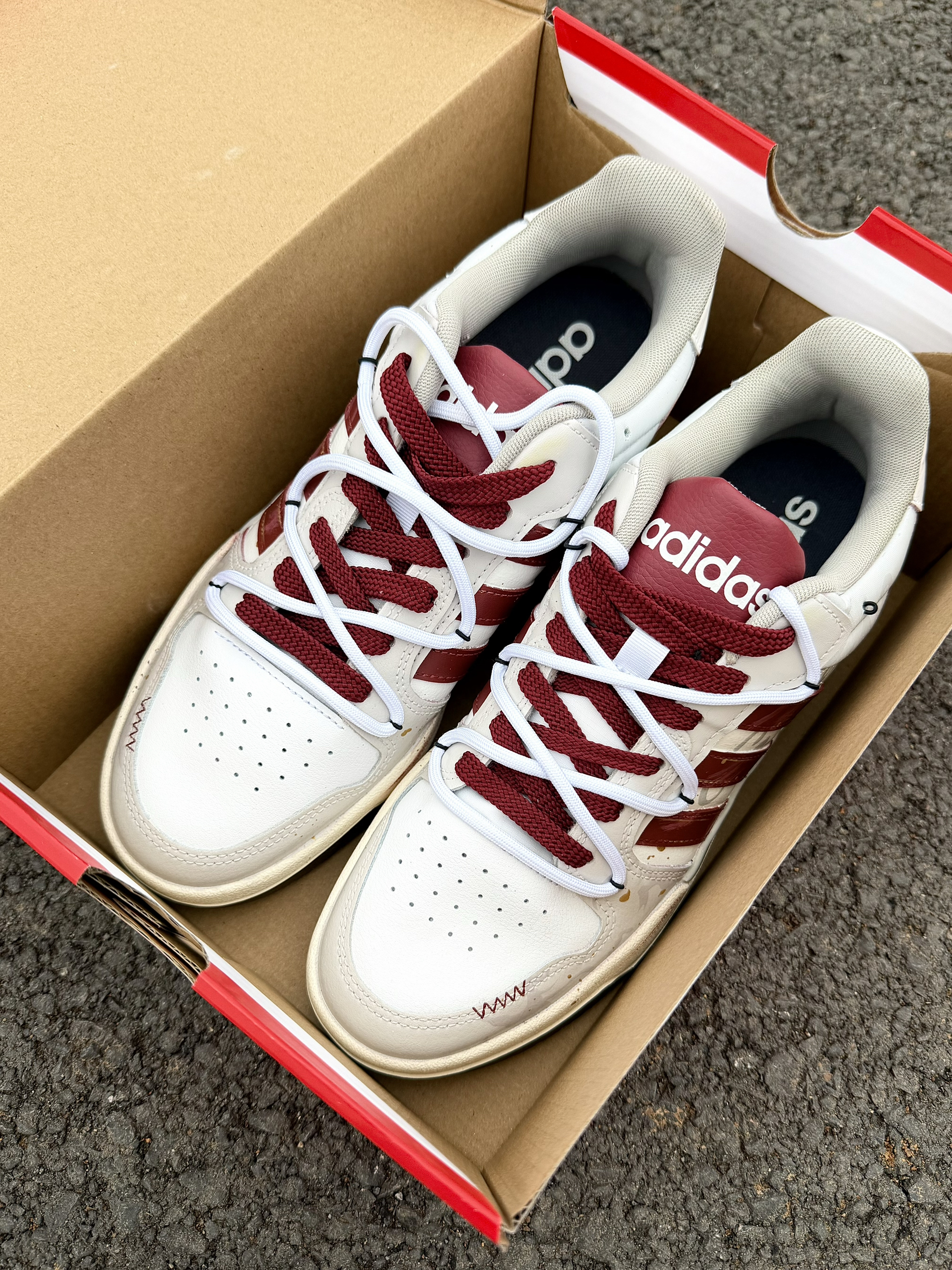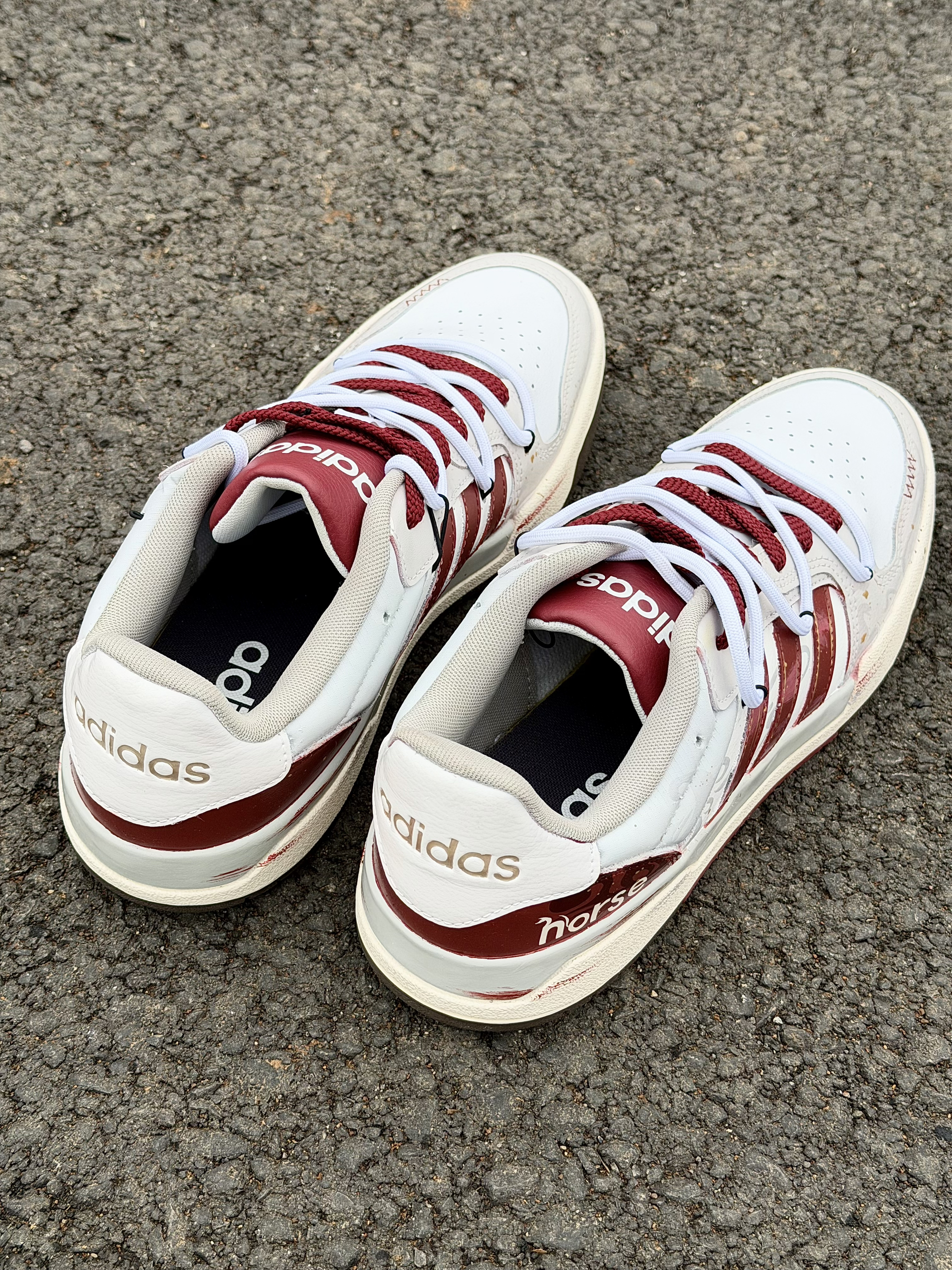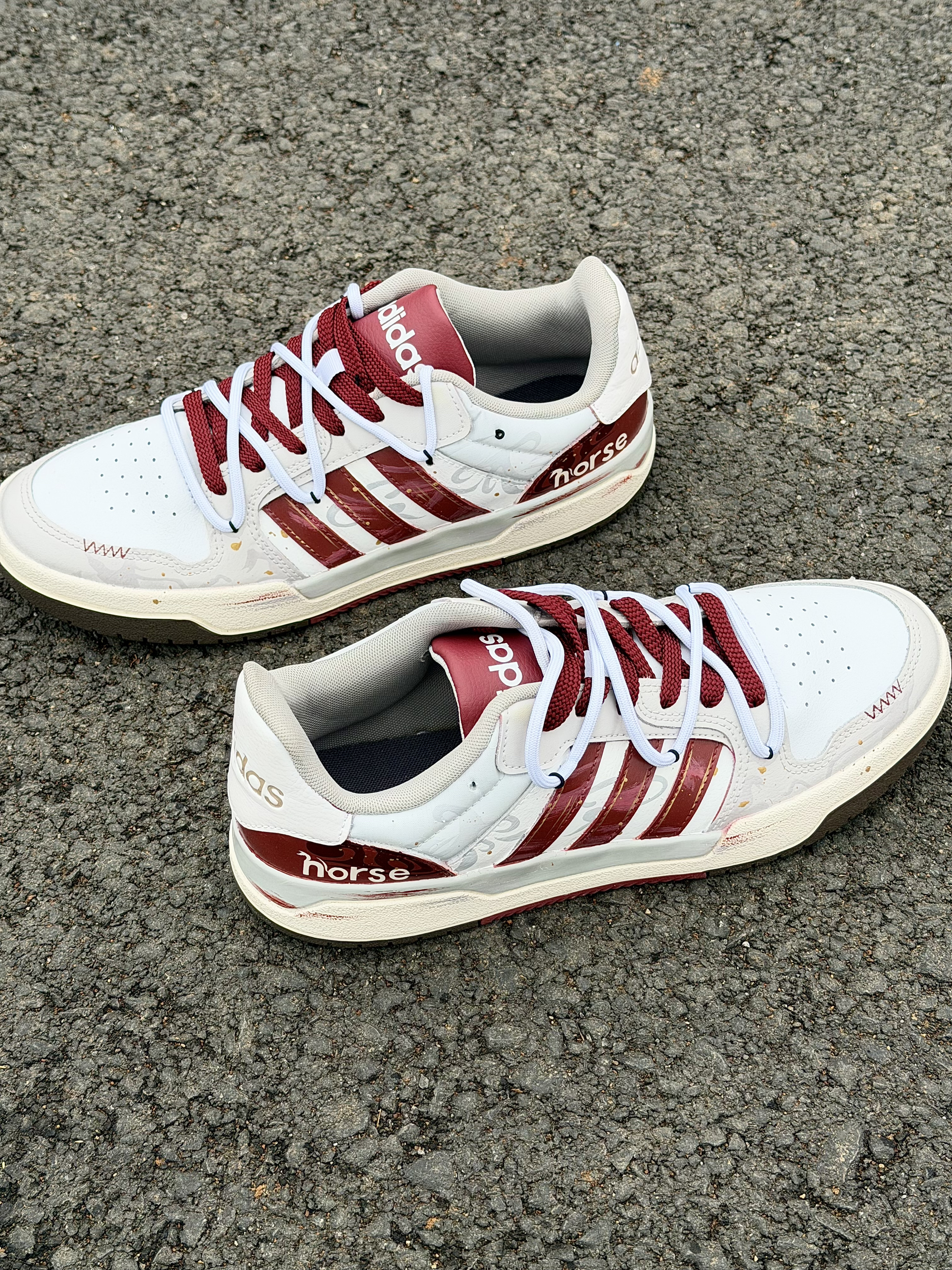 阿迪的介双马年限定👟尊嘟越看越有感觉哎~ 红白银配色百搭又高级 满满的氛围感❤️ 鞋侧加入了horse和马踏祥云涂鸦元素设计感 jue 了 还用了双鞋带层次感丰富我好喜欢😌 不管是过年穿还是日常搭配都不错很为穿搭加分 脚感也是不错的软软的舒服透气✌️ 过年走亲戚穿它,长辈都夸有文化气息~