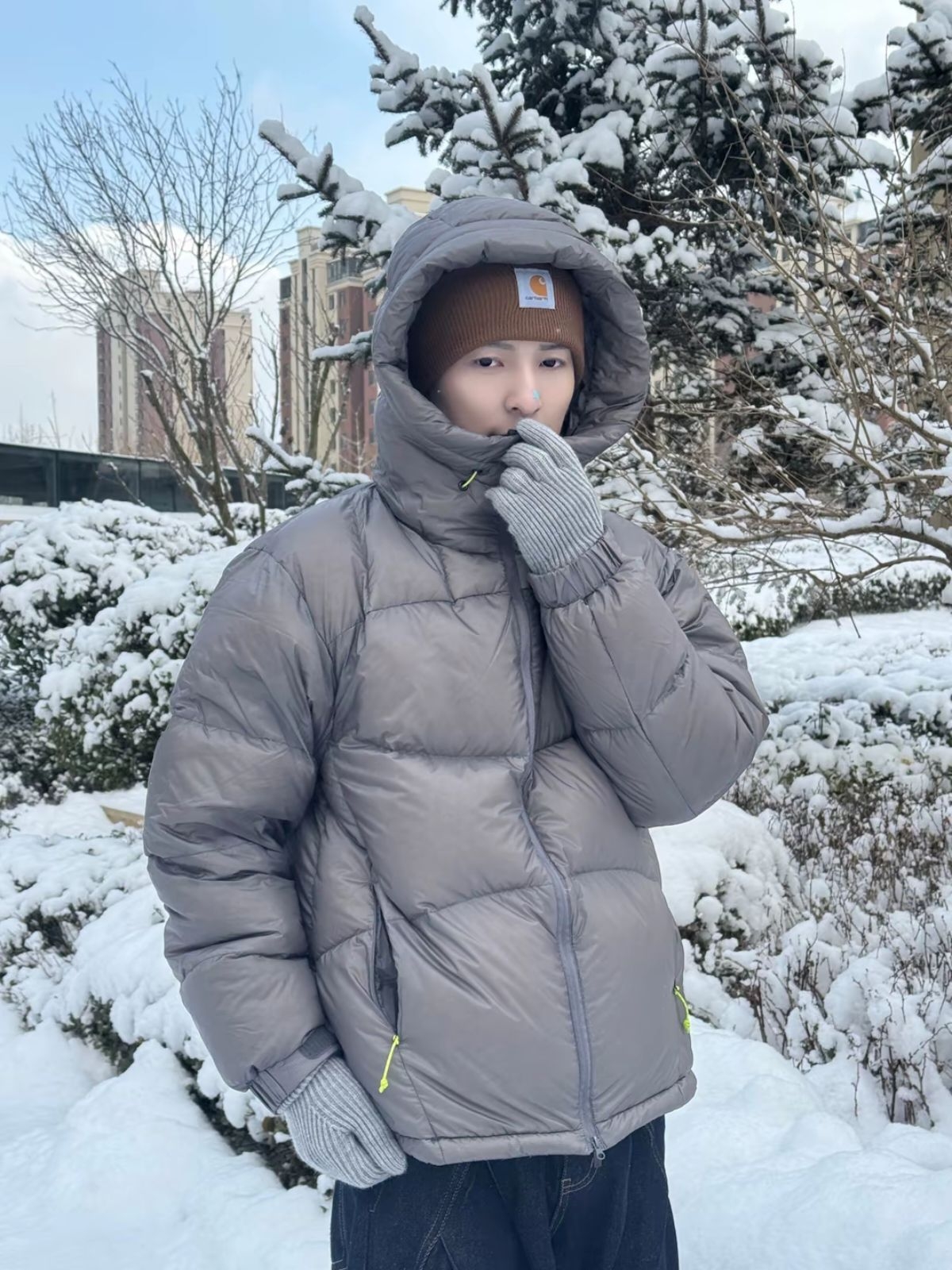 秋冬怕冷星人直接锁死!FPA这款连帽羽绒服也太顶了~800FP蓬+95白鸭绒填充,保暖力拉满,零下天气也能从头暖到脚!撞色口袋设计超吸睛,国潮氛围感直接拉满,灰色调高级又耐看,男女同款还能搭情侣装~连帽+拉链防风又利落,宽松版型不挑身材,内搭卫衣、毛衣都超合适,不管是户外通勤、校园穿搭,还是周末出游,都百搭不臃肿,国潮男孩女孩闭眼冲! 图源网络侵删