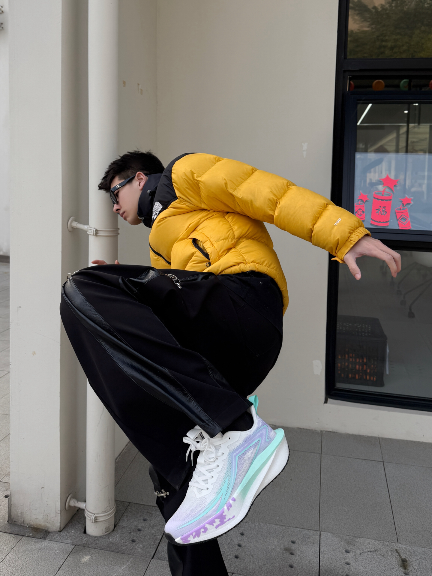 亮黄拼黑的面包羽绒自带户外硬核气场,蓬松廓形锁住暖意的同时,也拽住了街头的视觉张力;搭配机能风黑裤时,哑光皮质与金属扣细节为整体注入硬核气质,再踩上哆啦A梦紫绿渐变碳板跑鞋,全掌碳底与流动纹路和羽绒的活力调性完美呼应,让整套穿搭既有冬日抗寒实用性,又多了份竞速潮鞋的个性腔调。 黄黑与紫绿渐变的碰撞,轻松拿捏硬核又清新的街头氛围。 #doraemon哆啦a梦 #冬日城市漫步OOTD #美美开局...
