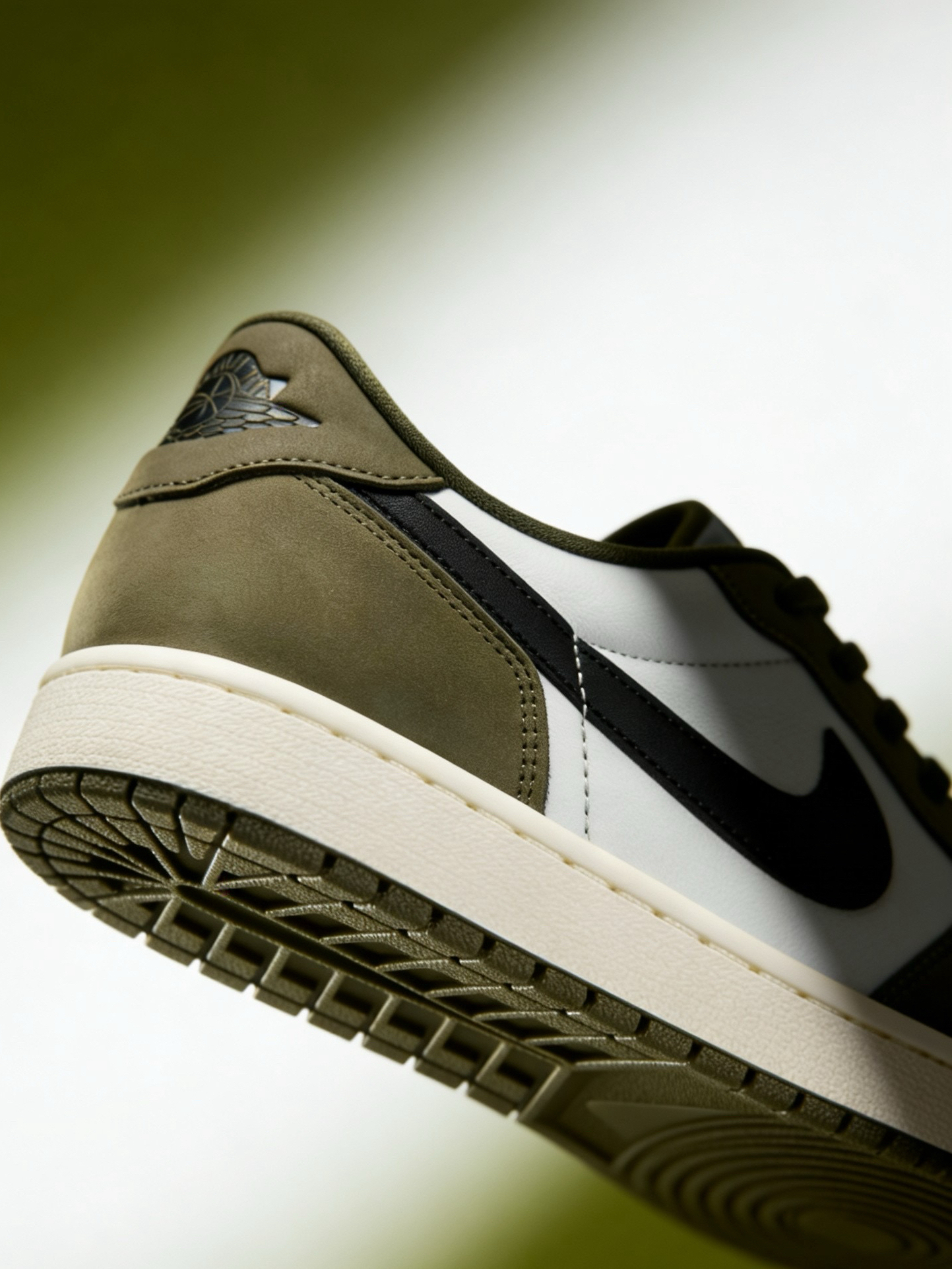 米白色鞋身+橄榄绿翻毛皮框架+黑色Swoosh,配色组合经典又耐看,自带复古质感,不会太跳脱,日常搭配不挑风格。非常适合日常出街、上学、通勤,搭牛仔裤、工装裤、休闲裤都很和谐,是一双“闭眼穿不出错”的百搭款。 橄榄绿自带复古滤镜,既能走美式复古风,也能搭日系休闲感,甚至配短裤都能营造松弛感。