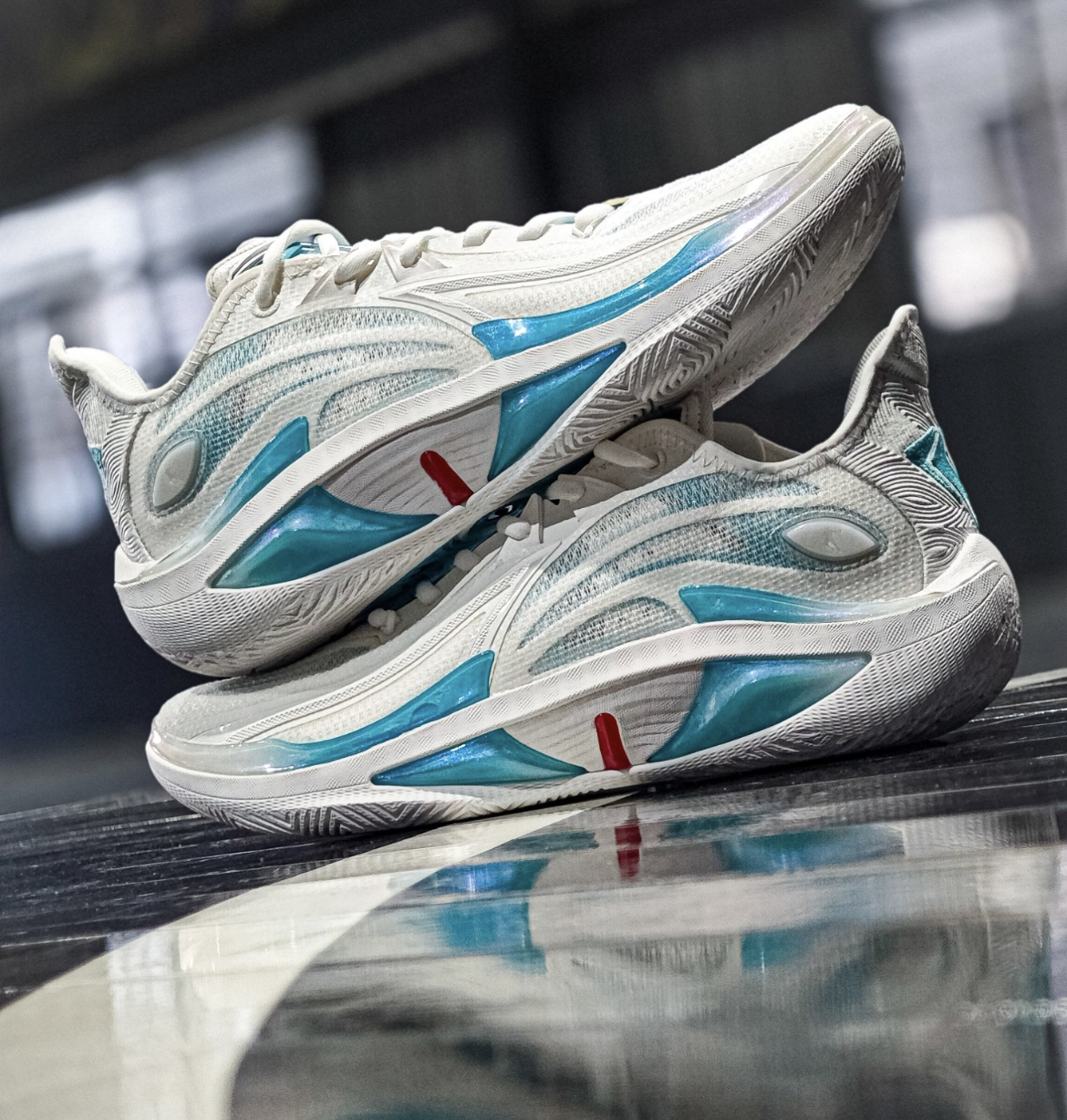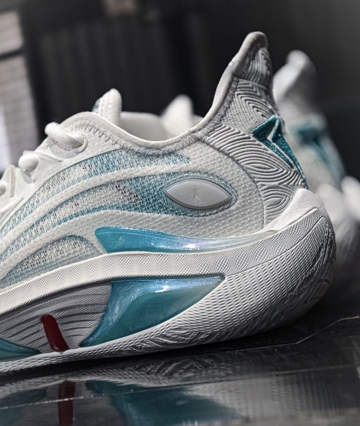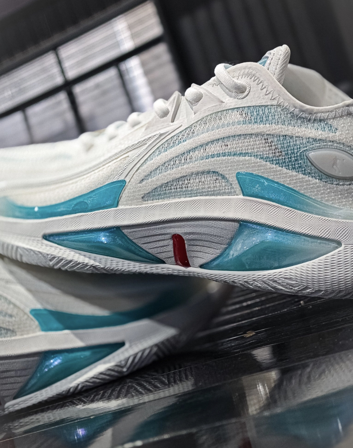 你还真的别说哈,当你看到这双鞋子鞋底的时候难免会想起欧文哈这个是来自乔丹 的毒牙4.0天使配色也同样是咱们的杨策杨师傅的同款,那么整双鞋子,我觉得它不止颜值外观好看,而且全掌的巭Light科技也给到了非常优异的实战表现当你在突破的时候真的是挺扎实的一个反馈尤其是鞋身侧面这个tpu的一个加固,我觉得给到横向支撑的一个效果是非常棒的,可以大胆的去做动作,也可以在球场上尽情的展现