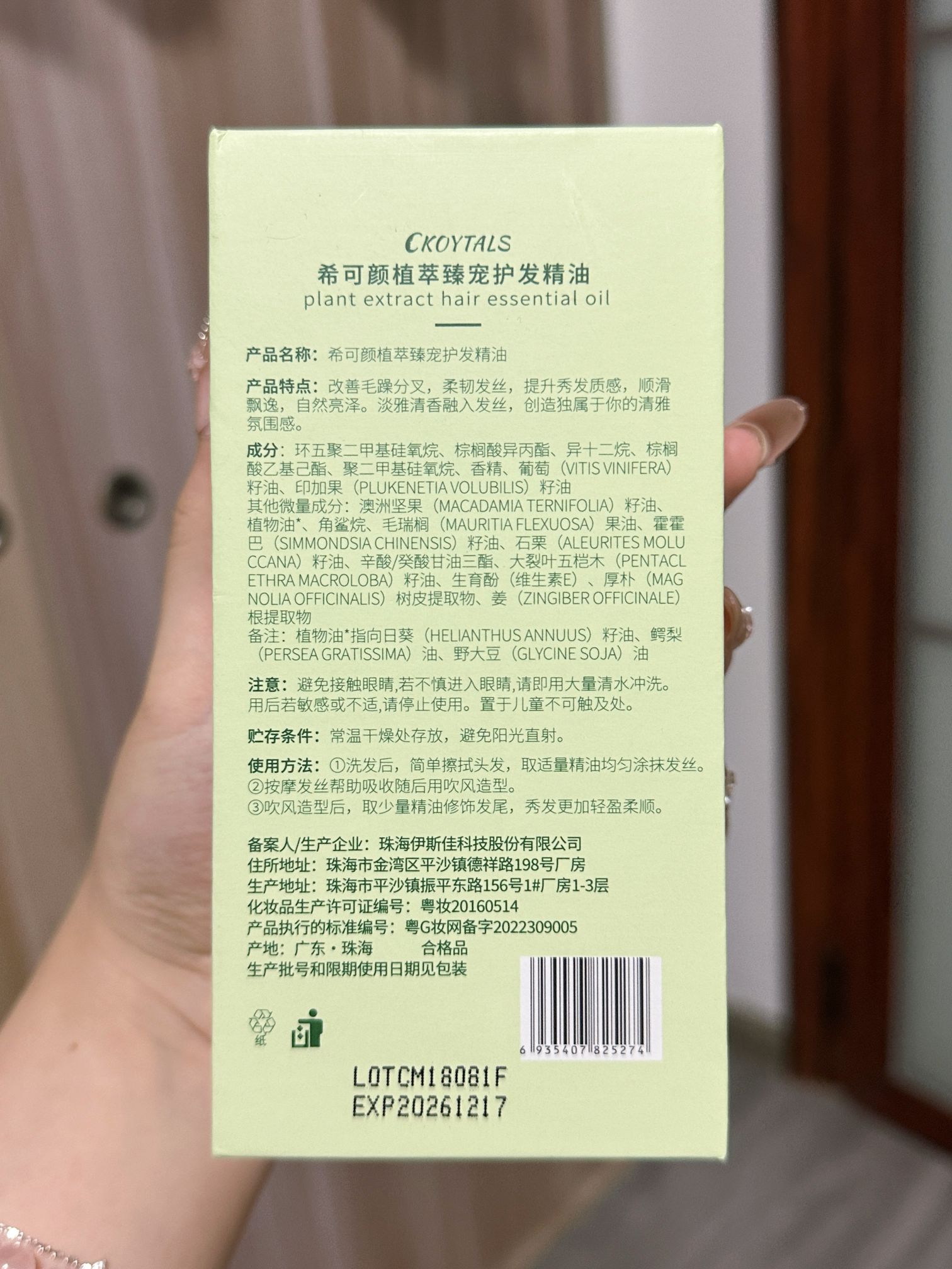 又是被柑橘香香晕的一天 跟着好闺蜜买到了巨好闻的护发精油,没有之一!! 用完梳头发居然不卡梳子了,发尾摸起来软软的,静电也少了超多;坚持用了小半个月,之前分叉的地方都变服帖了,现在头发看着特别有光泽,就算扎高马尾,发尾也不会毛毛躁躁的~ 挤的时候是泵头设计,一次两泵刚好,质地是那种很清透的流动感,不像以前用的精油黏糊糊的,涂在发尾轻轻揉两下就吸收了,手上一点残留都没有,还带着淡淡的柑橘香,...
