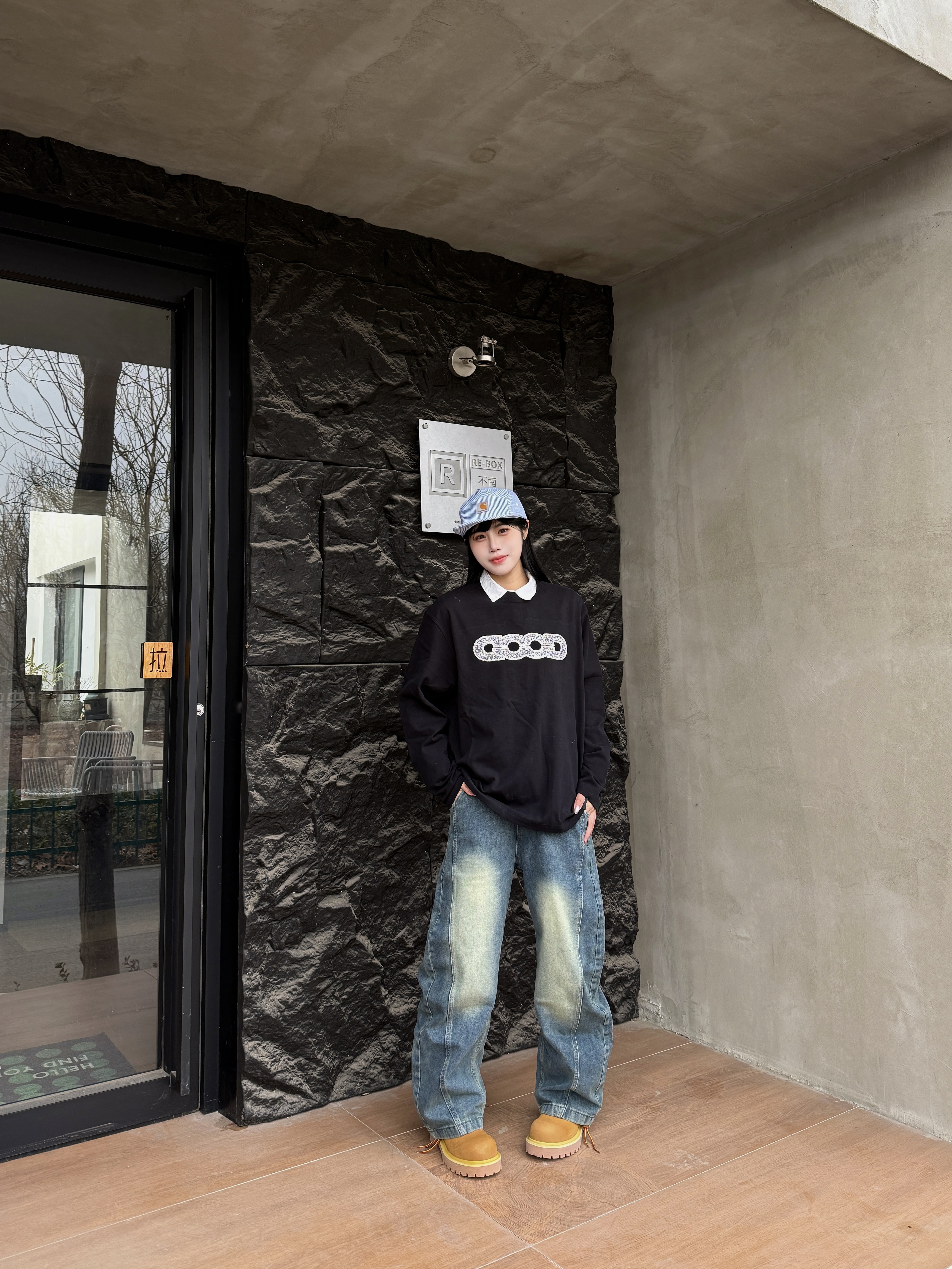 今天穿的GOODBRAND 胸前logo亮片设计好吸睛 背面大图案也是贴的钻超级帅 而且它的面料也是柔柔软软的很舒服 搭配一条牛仔裤轻松摆脱路人感 最后搭配一个帽子增加一下氛围感