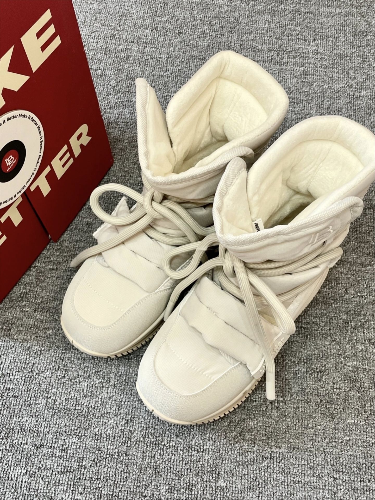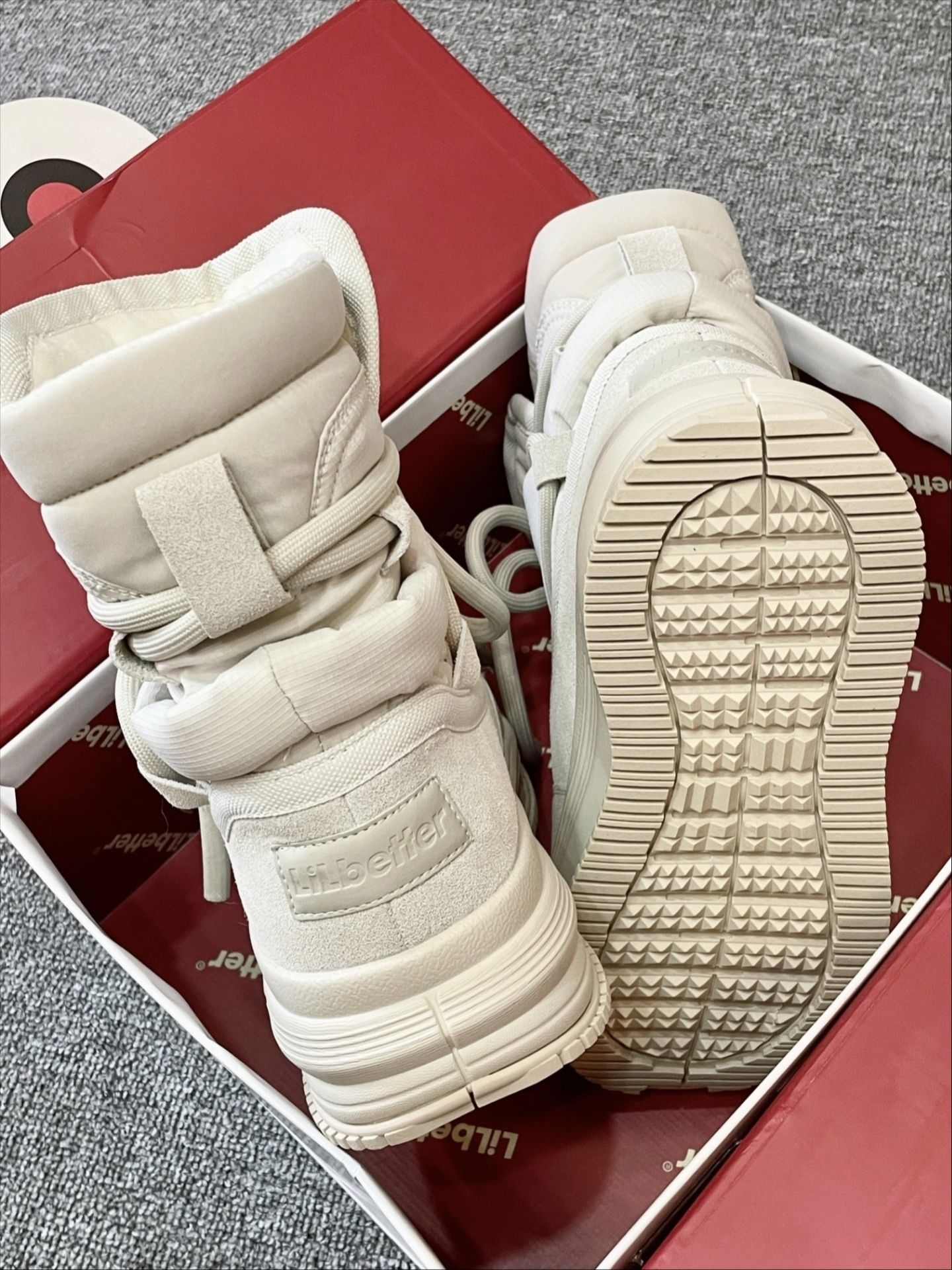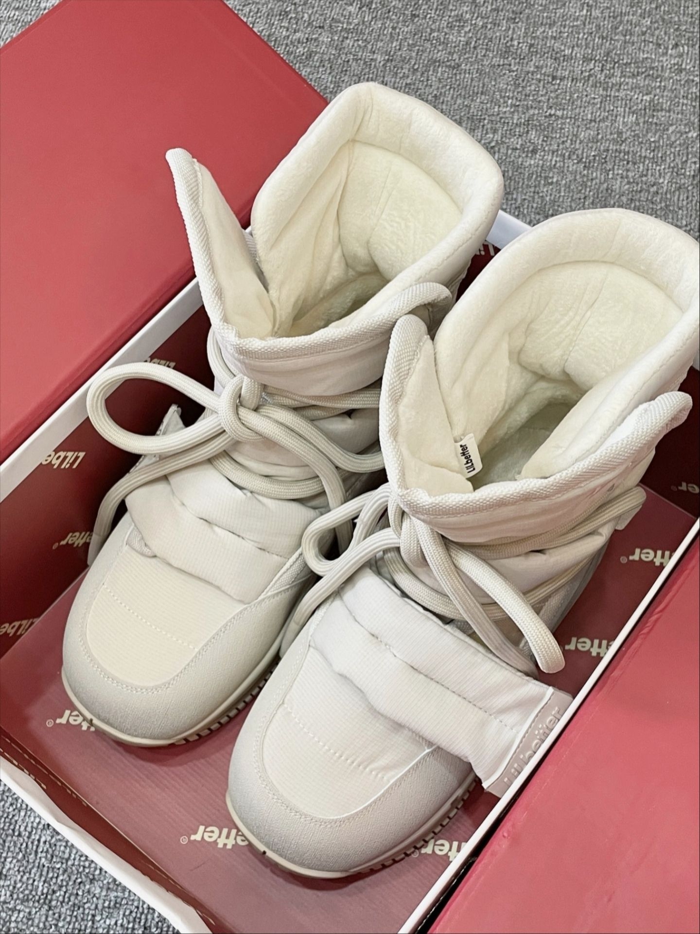 软糯的米白色像裹了一层甜奶油,视觉上就干干净净,特别提气。 鞋身采用扎实的防风面料,把冷空气牢牢挡在外面,内里茸茸的,包裹双脚像是被温暖云朵轻轻抱住。 厚底设计对小个子太友好了,瞬间拔高身形,却一点不显笨重,走起路来异常轻快。 鞋底纹理深刻,防滑性能优秀,在雨雪湿滑的路面上也能走得稳稳当当。 无论是配浅色牛仔裤还是毛绒半裙,都能搭出软萌又时髦的冬日氛围感。