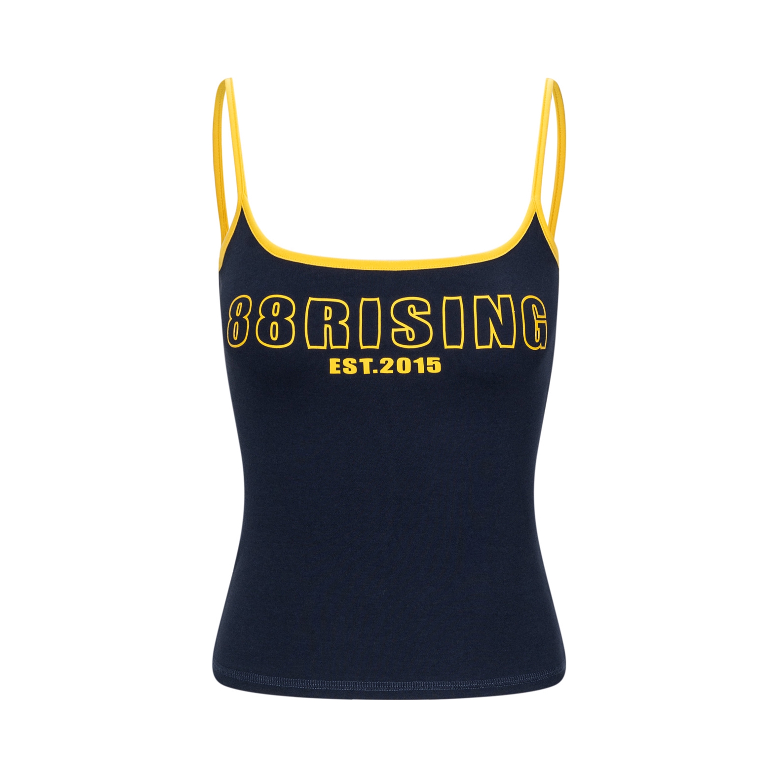 挖到宝了!藏青撞黄边美式吊带,复古字母印花自带氛围感,随便搭条牛仔裤就很出片,辣妹冲就对了!