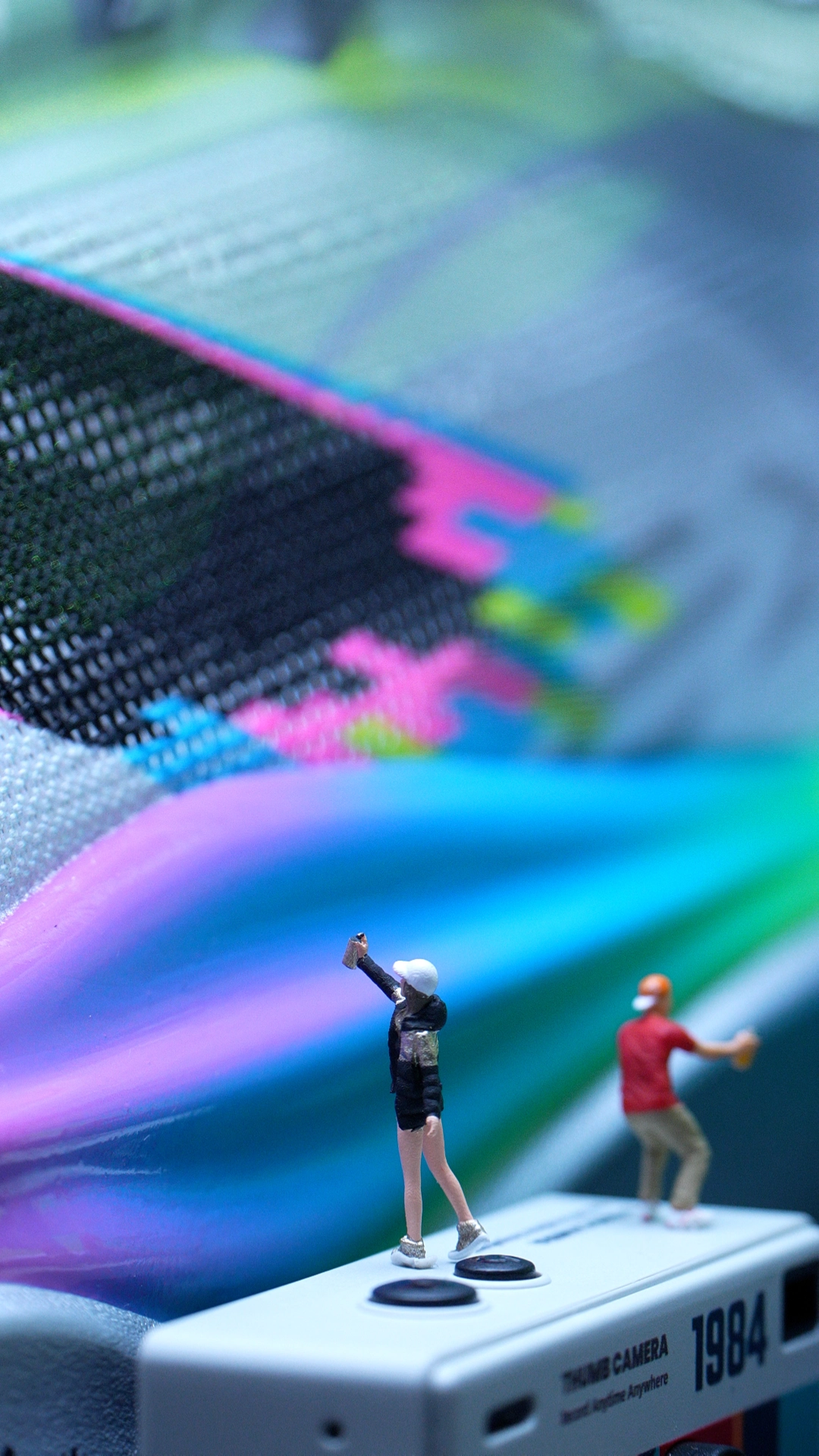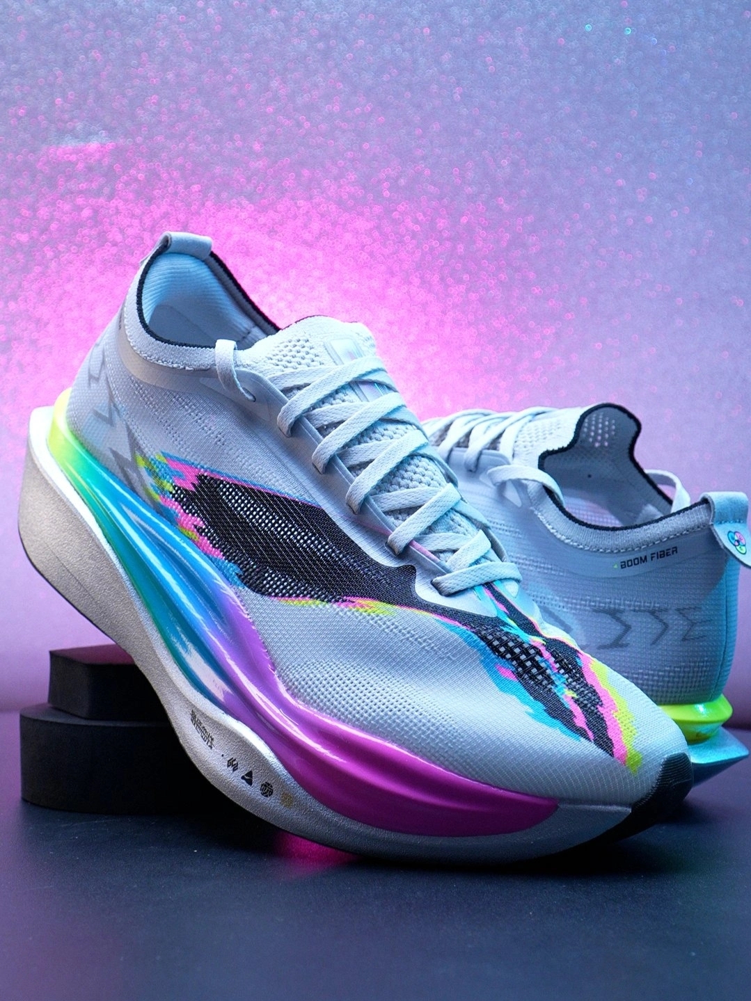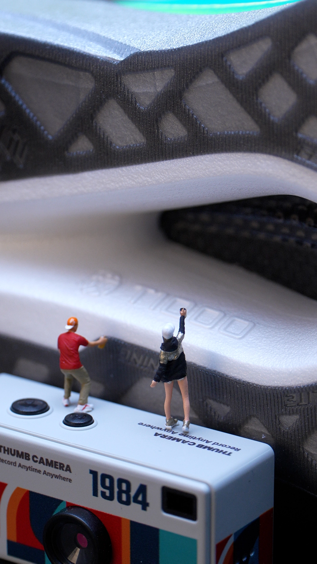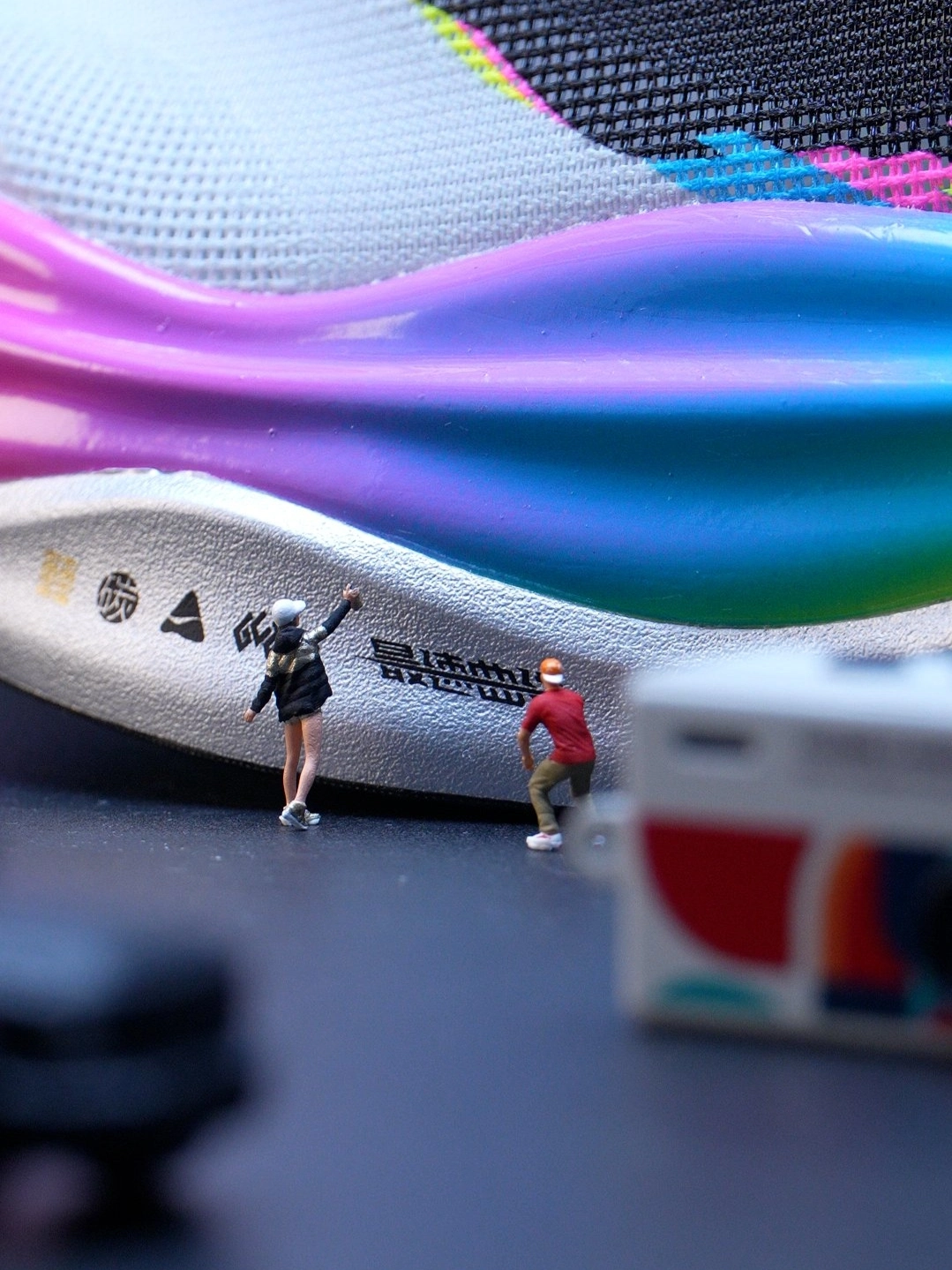 #新年新跑鞋 当飞电6ELITE的中底流淌起镭射霓虹的流光,它就不再只是脚下的竞速装备——而是一座微缩赛博都市的露天赛道。 鞋面未来感肌理上,涂鸦色块像被飓风卷过的街头喷绘,黑底撞着电光粉与霓虹蓝,在赛博滤镜里晕成城市的霓虹天际线。微缩人偶踩在“1984”复古相机模型上,镜头对准鞋身的涂鸦墙按下快门,把像素感的色彩定格成赛博都市的街头海报。 这双鞋天生就是一块等待喷绘的画布:赛博朋克的霓虹底色之...