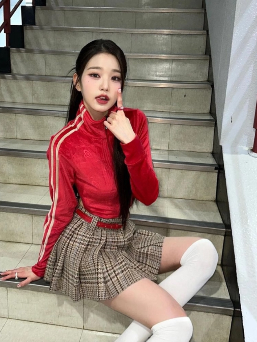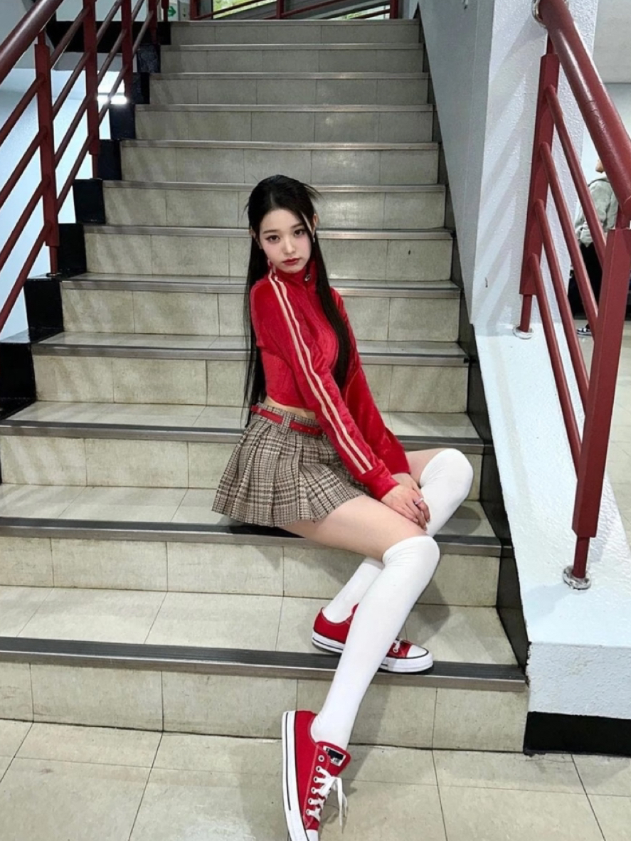 张元英脚上这双红色匡威,真的把经典款的魅力发挥到了极致!Chuck Taylor All Star作为匡威的经典系列,红白配色本身就自带青春活力,被她搭配红丝绒上衣和格纹裙后,瞬间打破了帆布鞋的休闲感,和造型里的红色元素精准呼应,成为整体搭配的点睛之笔。白丝长筒袜与红白匡威的组合,更是把她的腿部线条衬得愈发纤细修长,让原本简约的帆布鞋,在贵气甜妹的风格里也能完美融合。这双红色匡威在她脚下,既保留了...