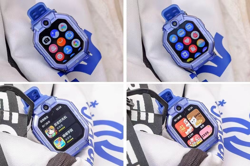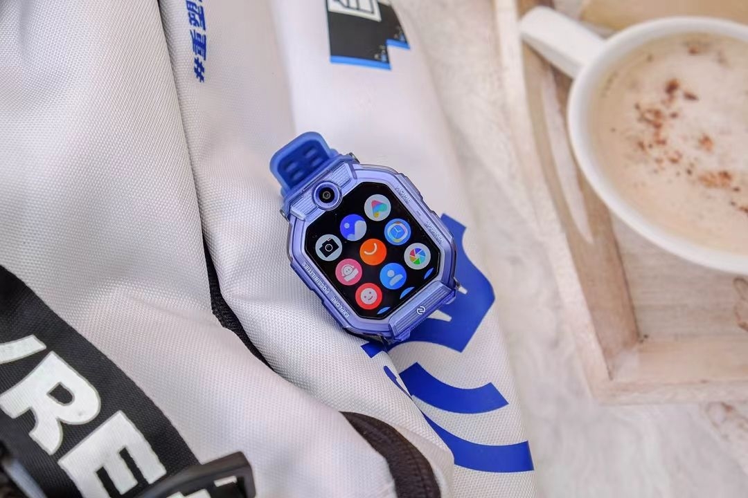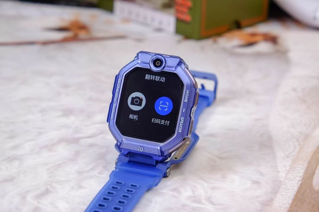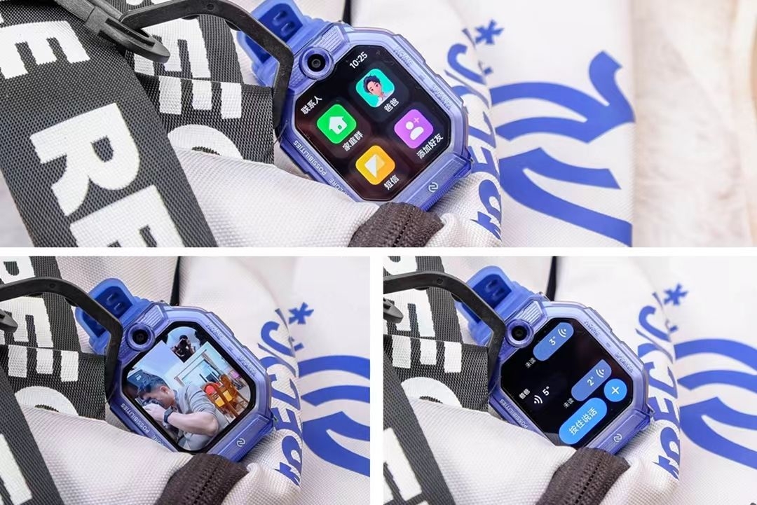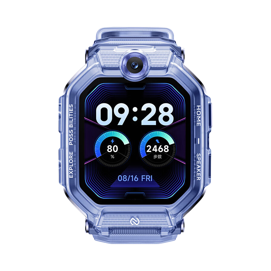 我选的「星河蓝」颜值太高了!科技感线条+清爽配色,儿子戴上就不肯摘。表带是亲肤硅胶,他说“像没戴一样”。重点是——它竟然能翻转立起来! 视频通话时孩子不用扭手腕,随手一转就对准脸,自带前后双摄,画质超清晰✨