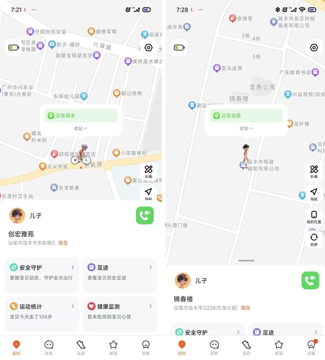 这才是核心大招!官方说的“5星13模定位”我一开始没概念,用上才惊呆:定位准到能显示孩子是在“走路”“骑车”还是“坐车”🚴♂️ !连在商场里都能精确到楼层,历史轨迹回放超流畅。我再也没打过“夺命连环call”,因为打开App一目了然👀