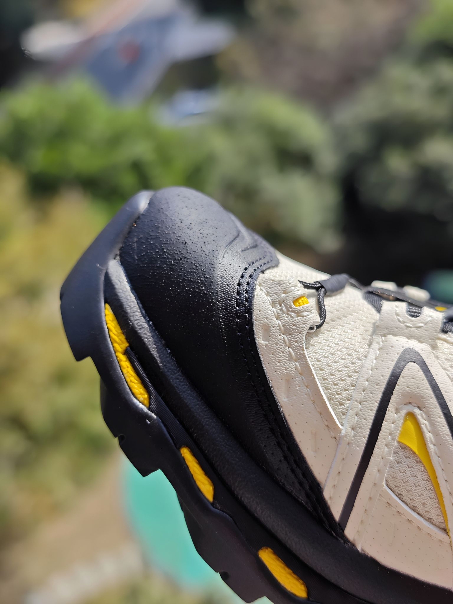 👀运气很好,原价买到一双小蜜蜂🐝 不知道谁取得小蜜蜂🐝的昵称,看着确实挺贴切的 我留意到鞋身上有GTX字样,翻了翻科普,GTX防水是指采用GORE-TEX(戈尔特斯)薄膜技术实现的防水功能,之前买的一双Nike的也带有GTX,也是防水的,这鞋让我学到了一个通用的知识点,可以 上脚试了下,偏硬一些,不是很透气,秋冬天穿比较保暖的
